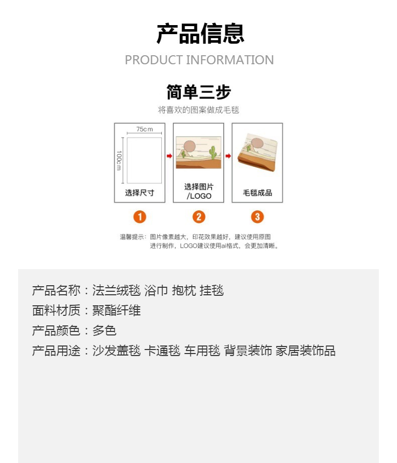 工艺:产品使用的是单面数码印花及热转印工艺,使用的都是3000*3000分辨率的高清图,产品印刷清晰,色牢度高,反面是白色原底。