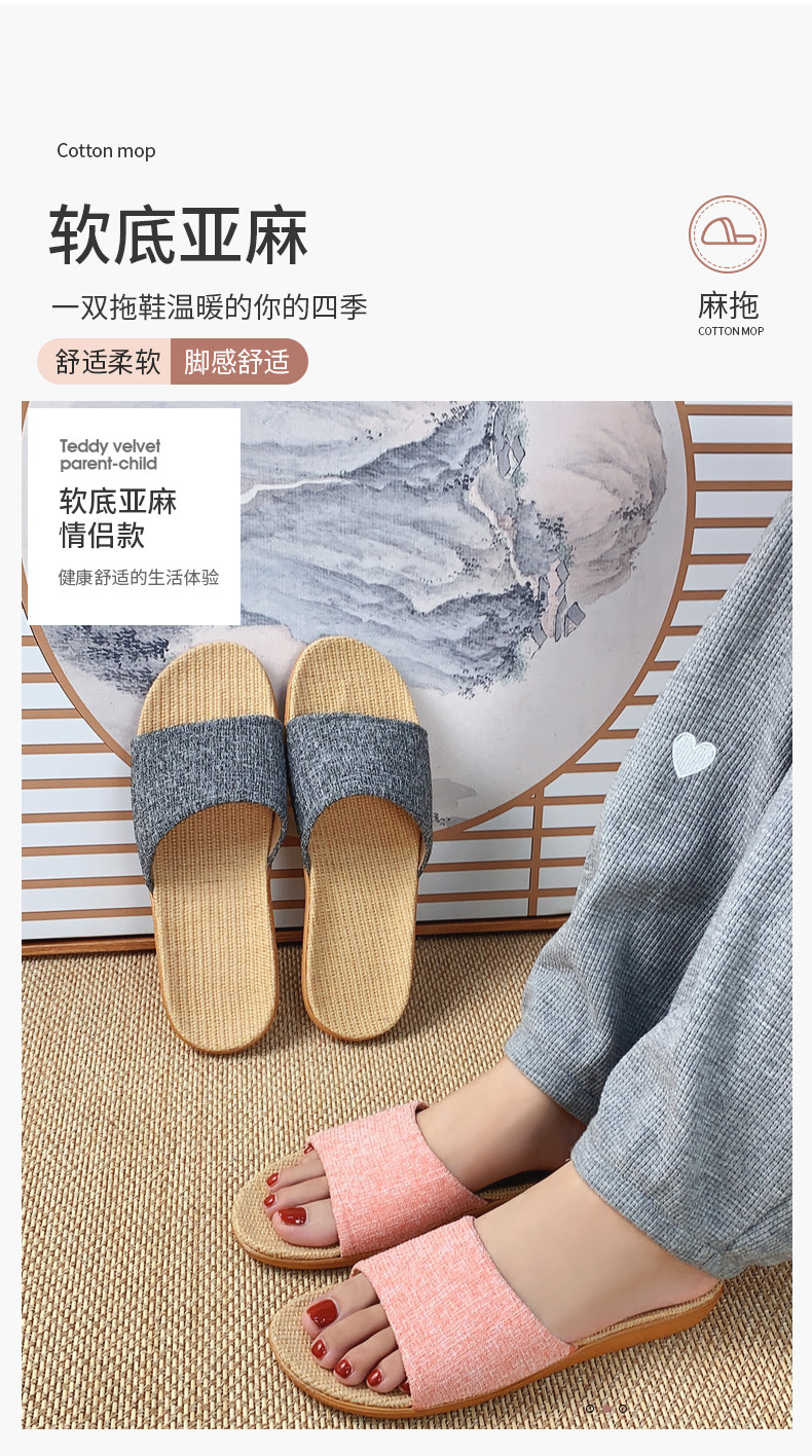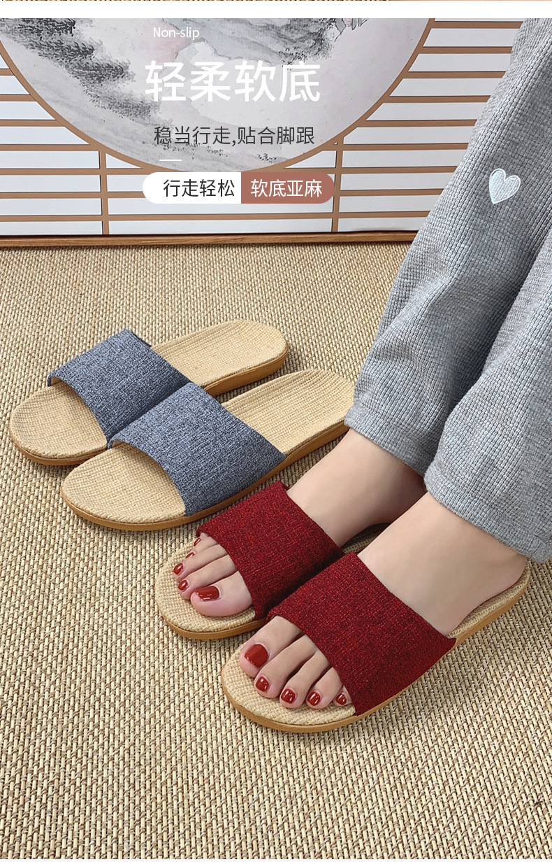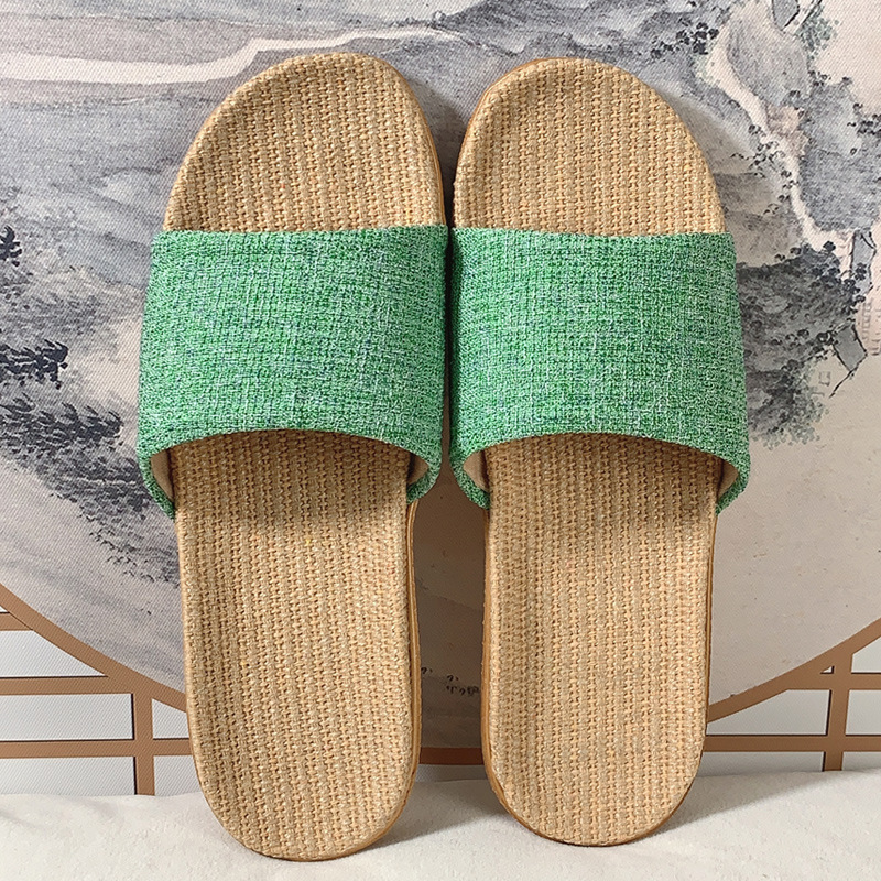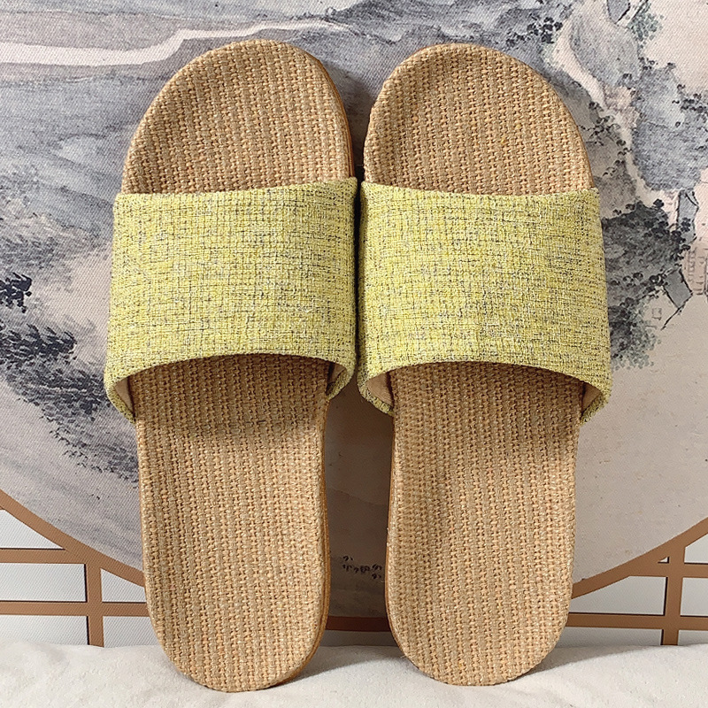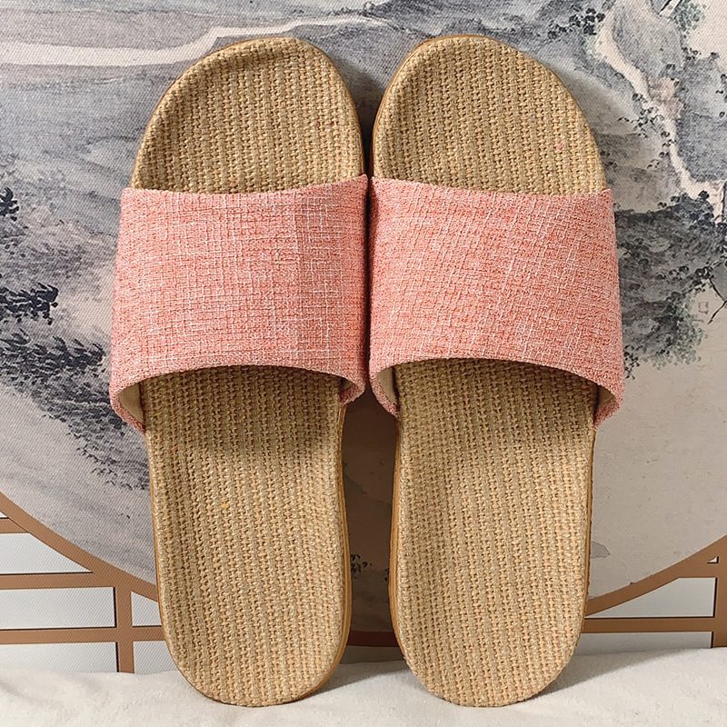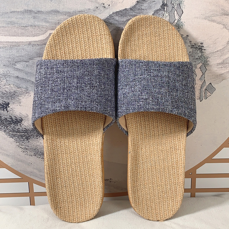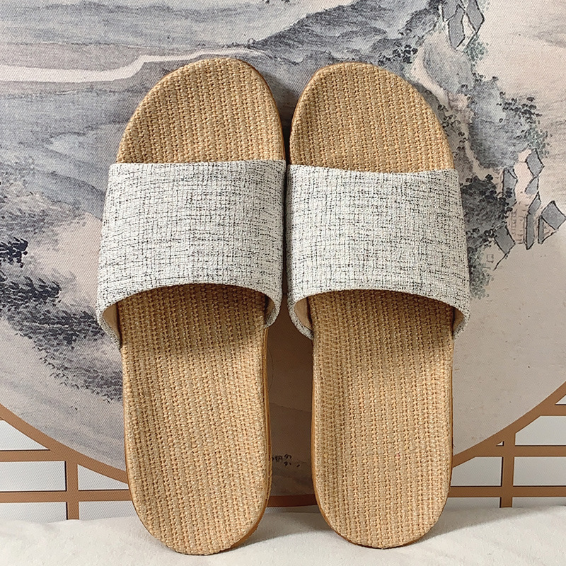 패브릭 새로운 사계절 리넨 슬리퍼 여성용 여름 홈 커플의 실내 소프트 하단 미끄럼 방지 탈취제 샌들