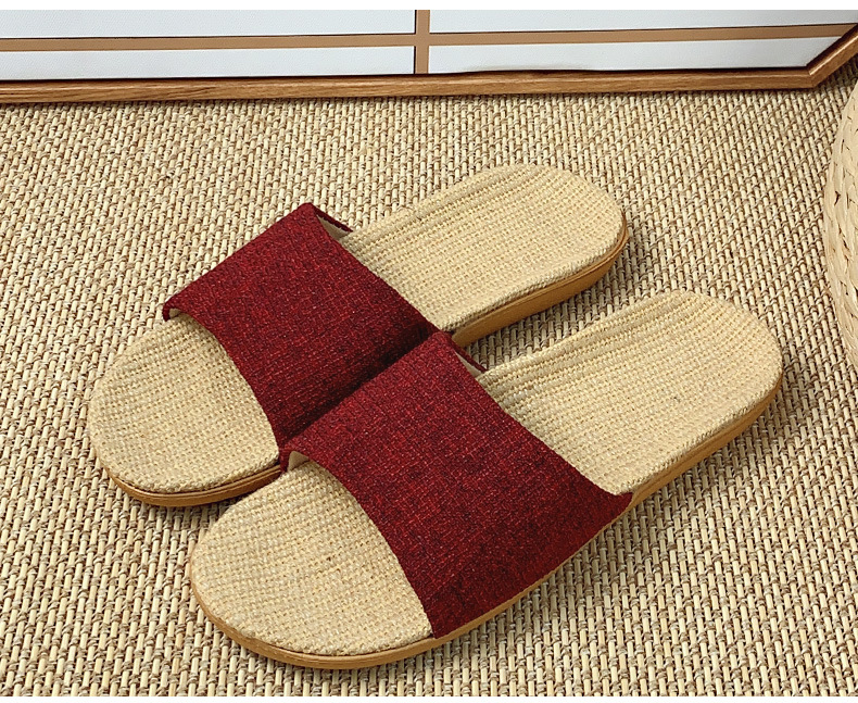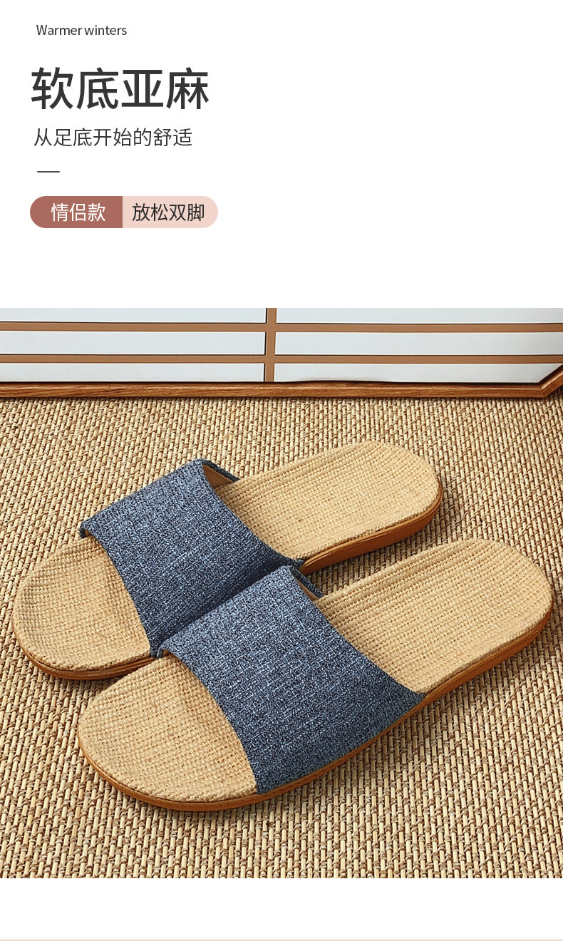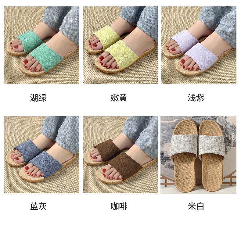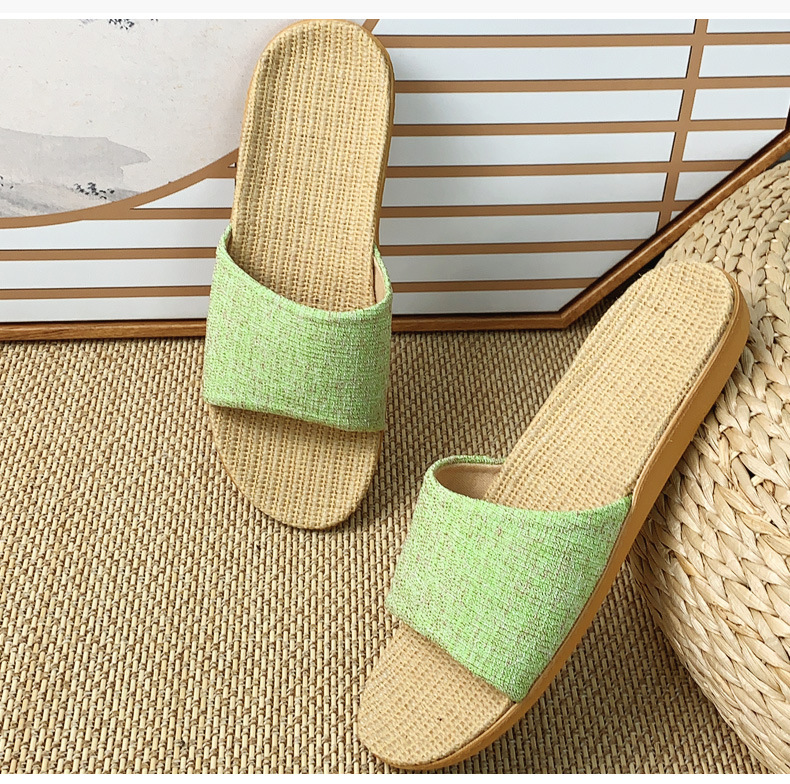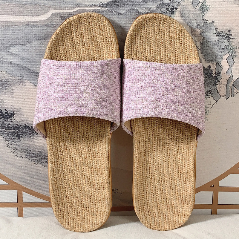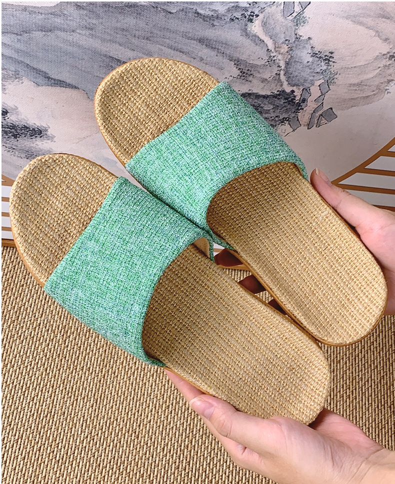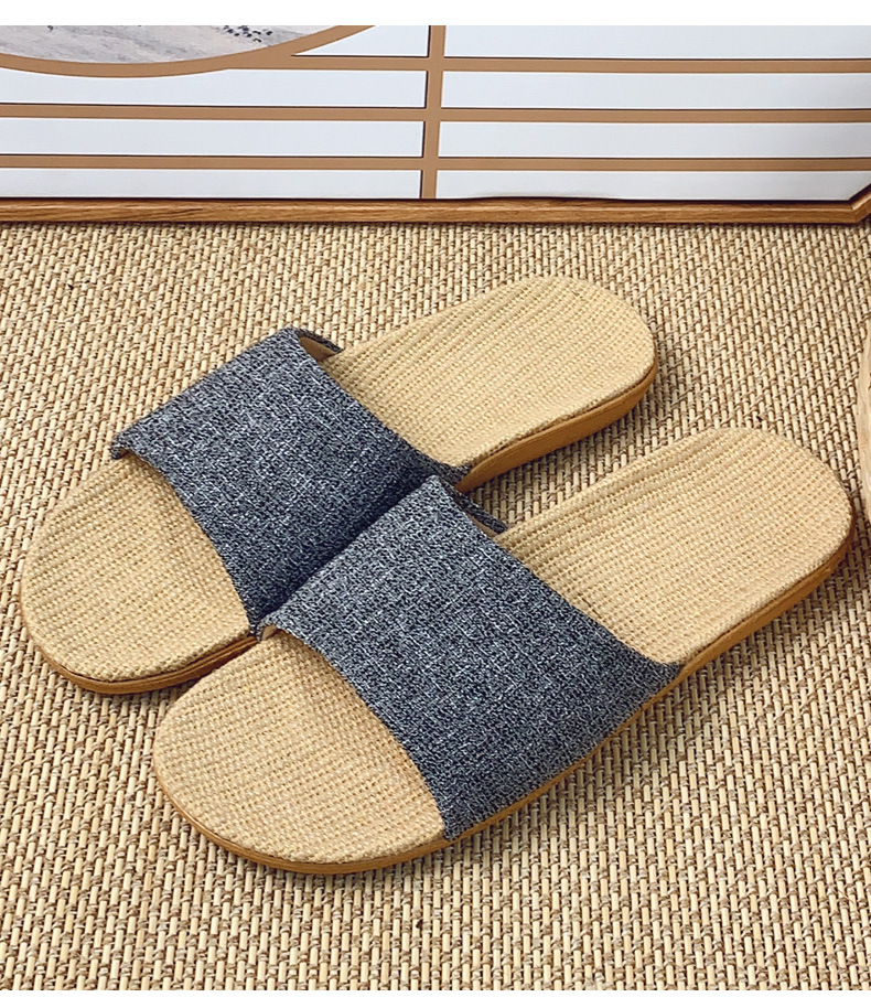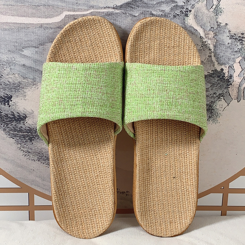 패브릭 새로운 사계절 리넨 슬리퍼 여성용 여름 홈 커플의 실내 소프트 하단 미끄럼 방지 탈취제 샌들