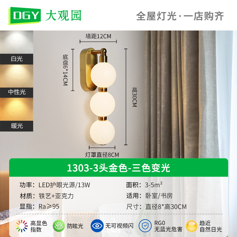 다관위안 침대등 벽등 모던 심플 크리에이티브 북유럽풍 라이트 럭셔리 크림 스타일 마스터 침실 거실 벽등 389L
