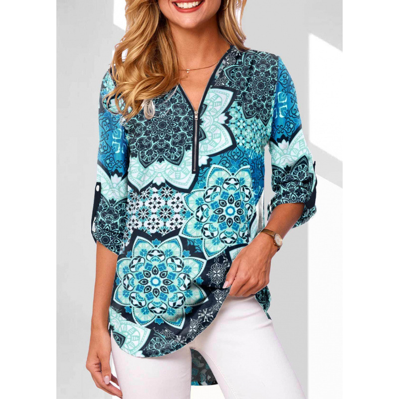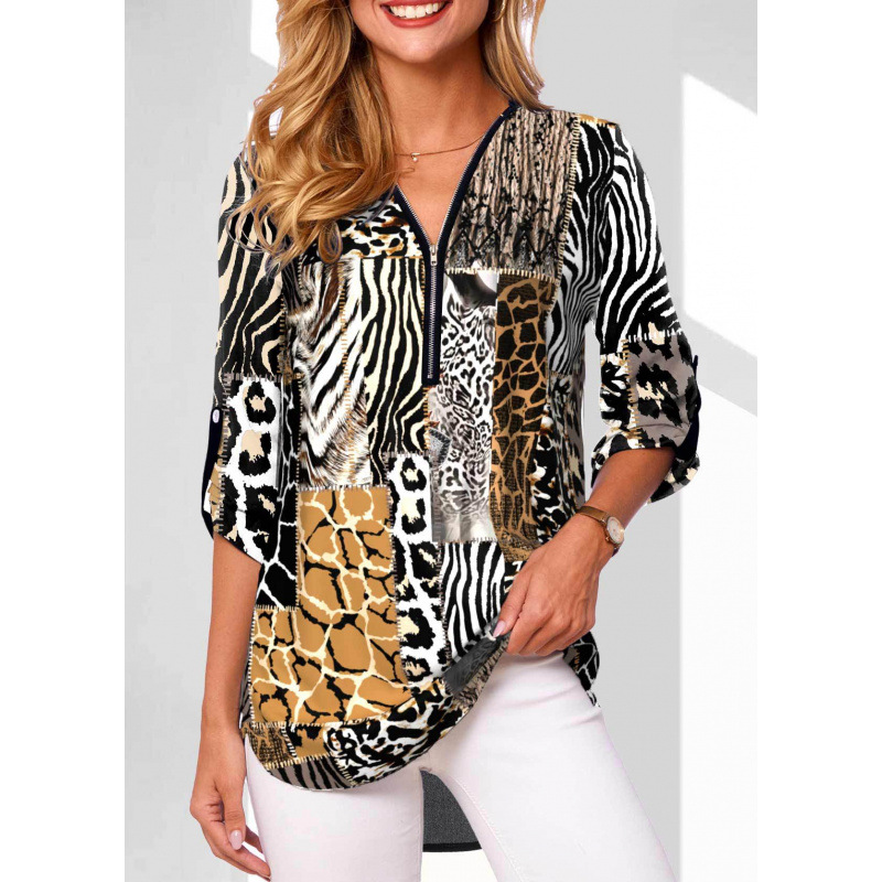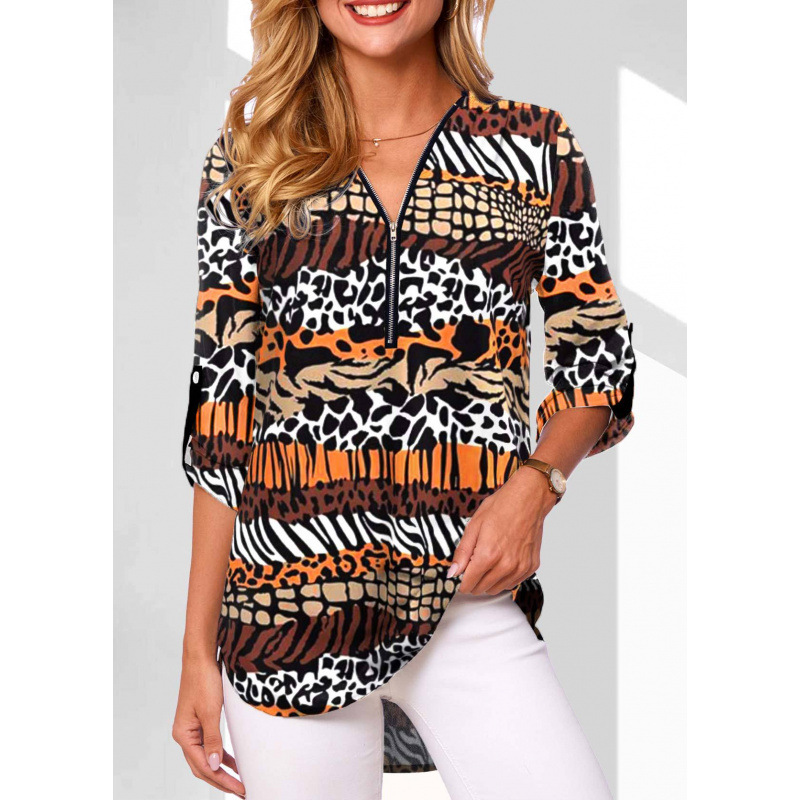 Ebay AliExpress 유럽과 미국의 폭발 V 넥 지퍼 플러스 사이즈 여성용 긴 소매 소매 느슨한 셔츠
