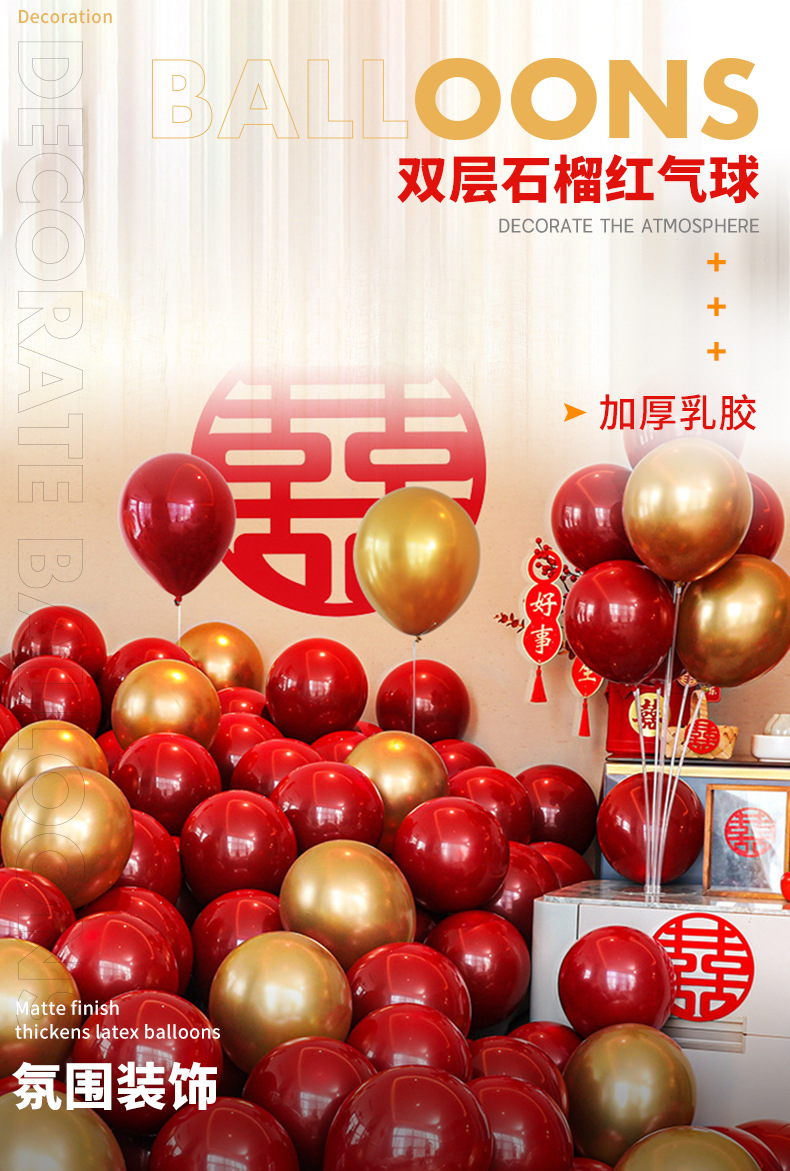 도매 두꺼운 라운드 라텍스 풍선 더블 석류 레드 풍선 그물 레드 웨딩 룸 창조적 인 레이아웃 빨간 풍선스토어 가기