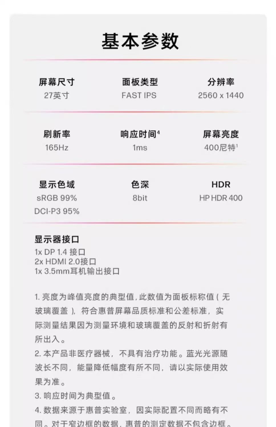 그림자 마법사 OMEN 27q 전기 경쟁 2K 디스플레이 165Hz 하이 브러시 27 "컴퓨터 화면