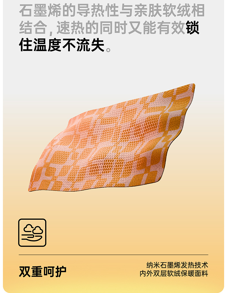 产品面料:丽丝绒+绒布+石墨烯;供电器:PC+ABS(VO)