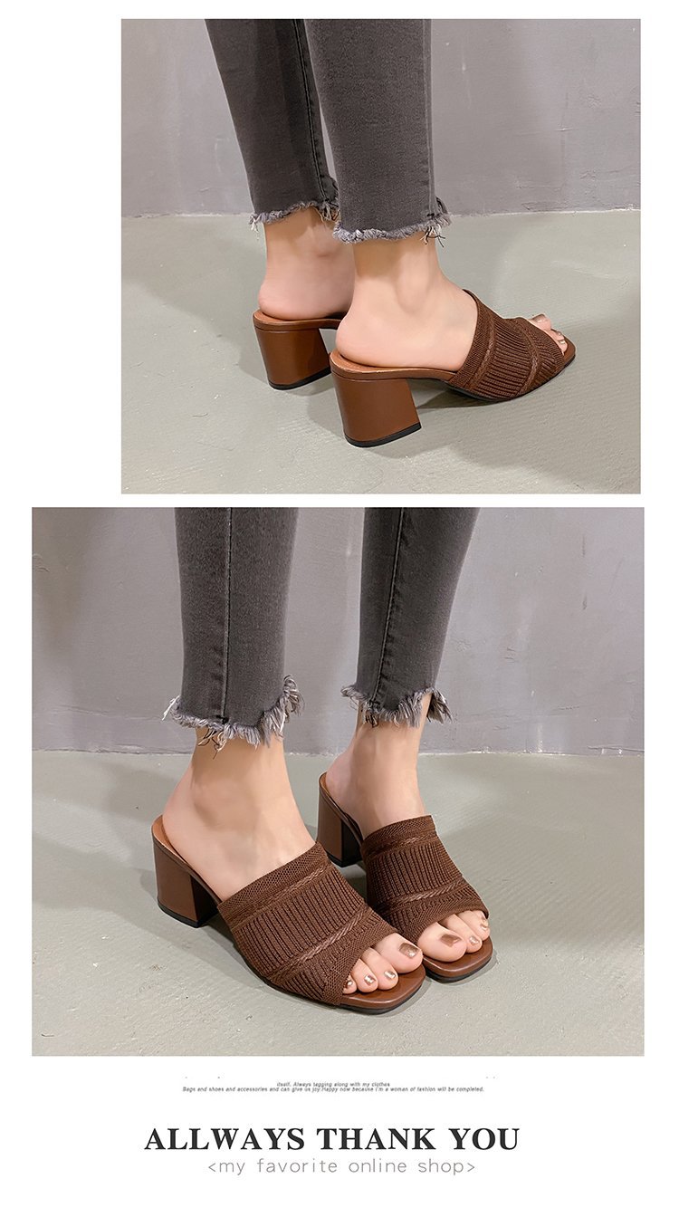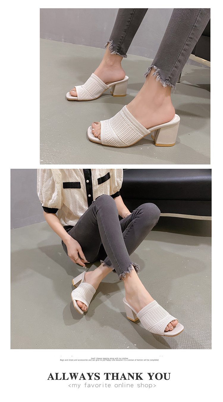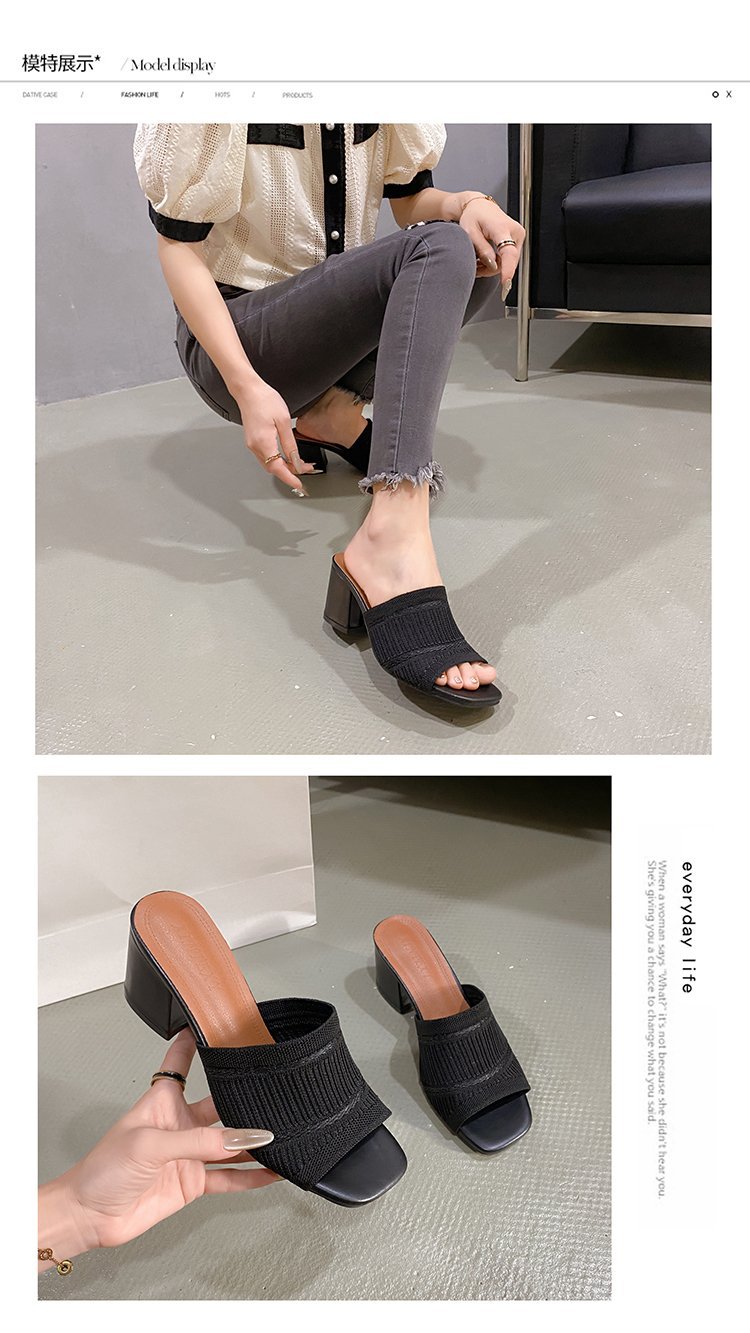 슬리퍼 여성 의류 2025 봄과 여름 새로운 패션 우아한 청키 힐 하이힐 샌들 요정 한 단어 트롤 레드 샌들스토어 가기