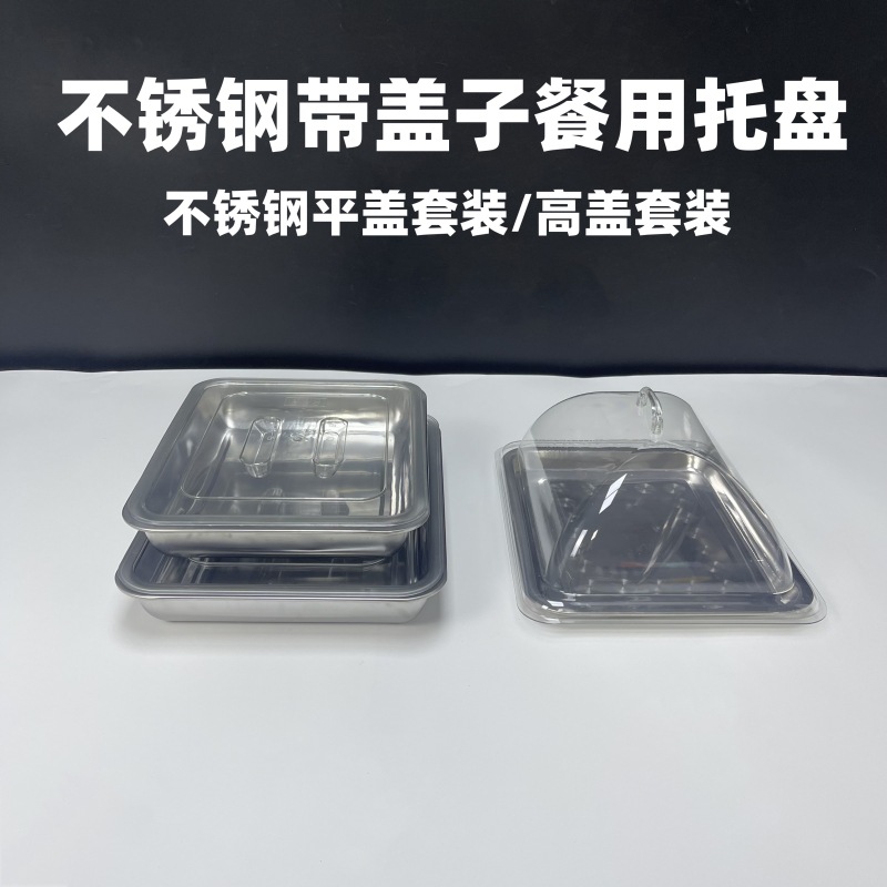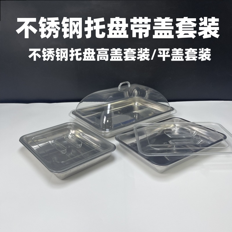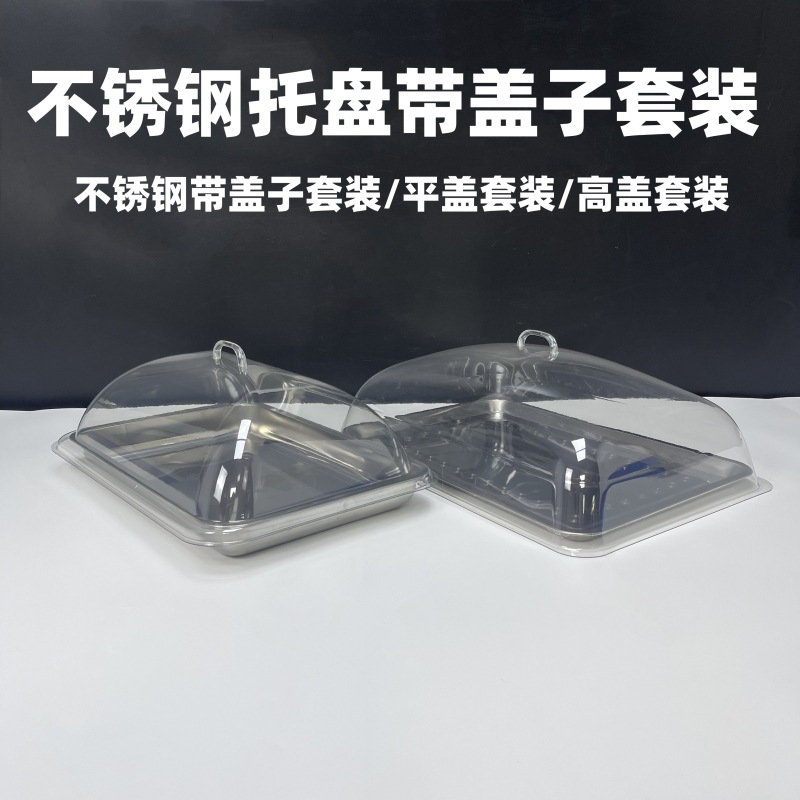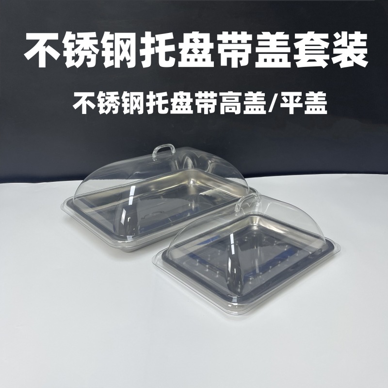 S 직사각형 스톨 플레이트 뚜껑이 달린 스테인레스 스틸 디스플레이 플레이트 요리 요리 식품 절인 맛 절인 고기 트레이스토어 가기