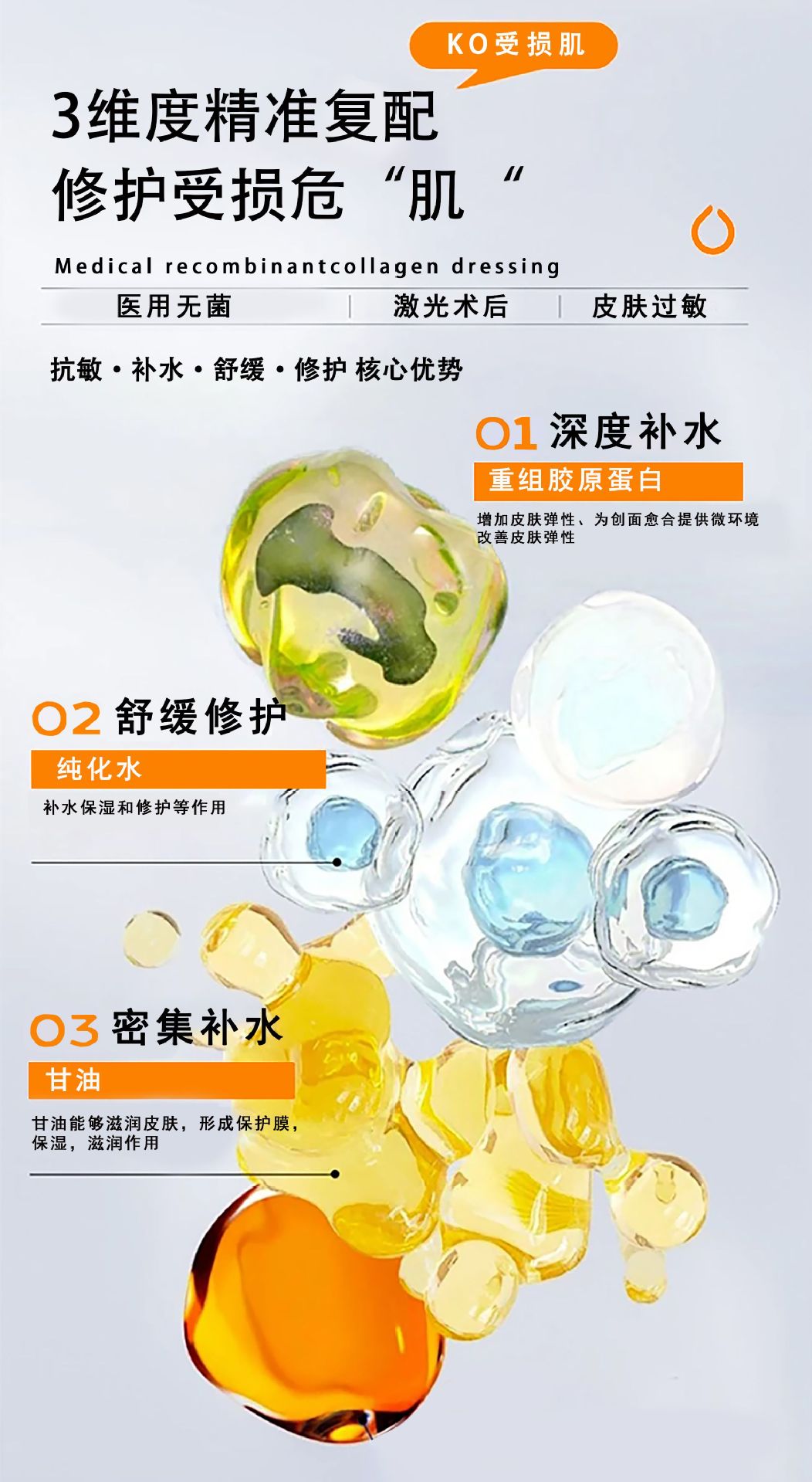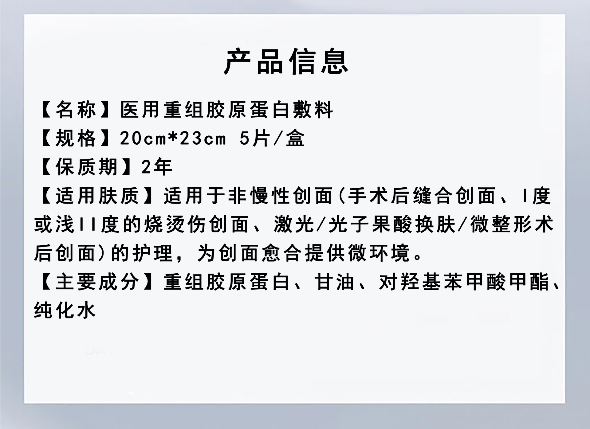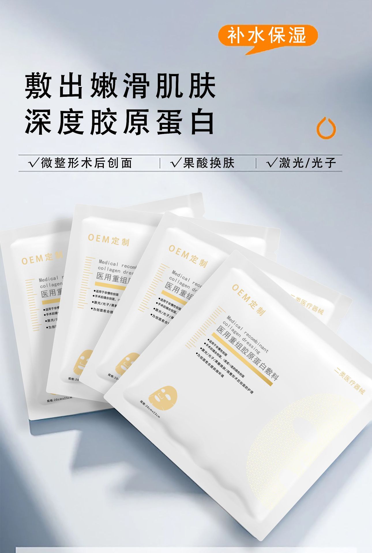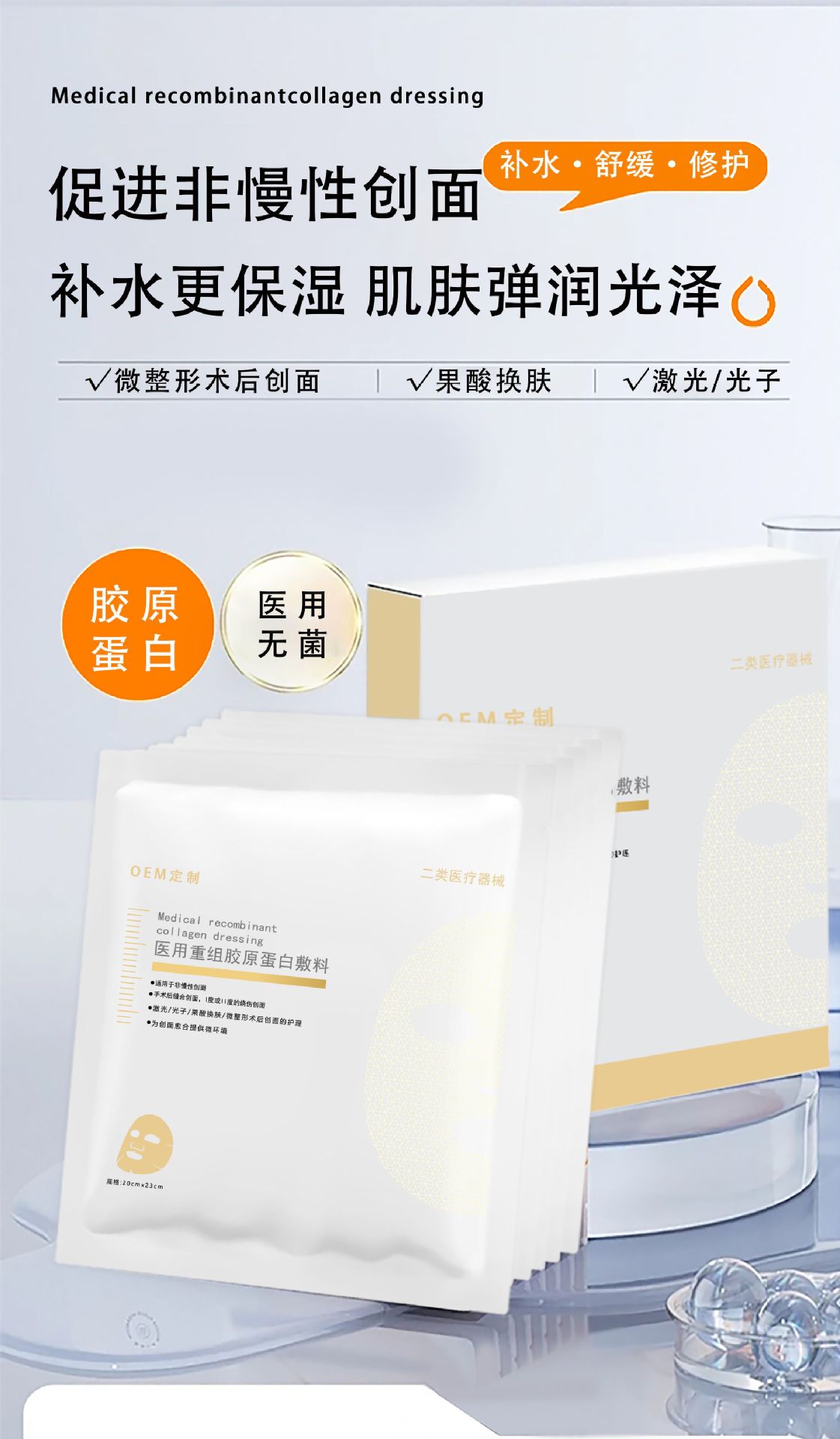 공장 직매 의료용 재조합 콜라겐 드레싱 마스크, 2급 의료 기기 번호, 의료용 수술 후 회복 냉찜질 패치