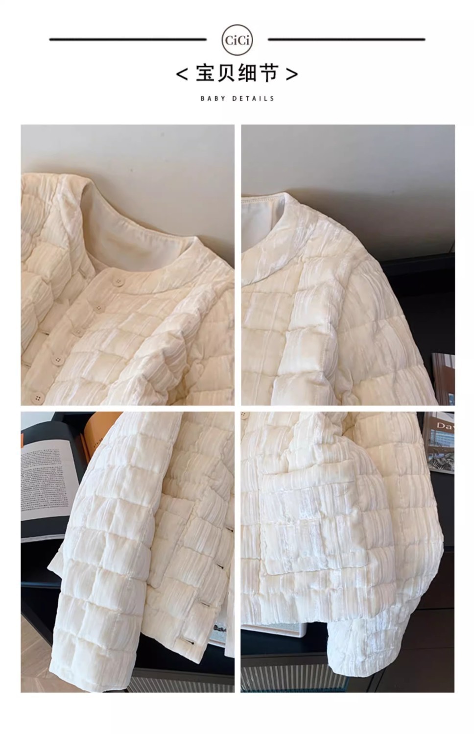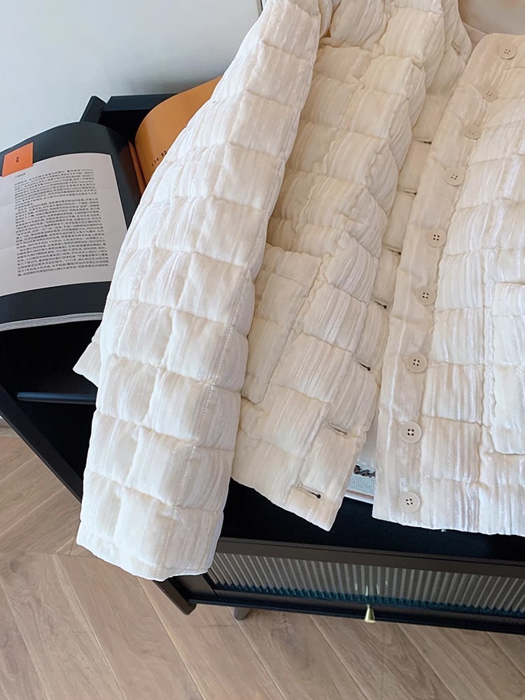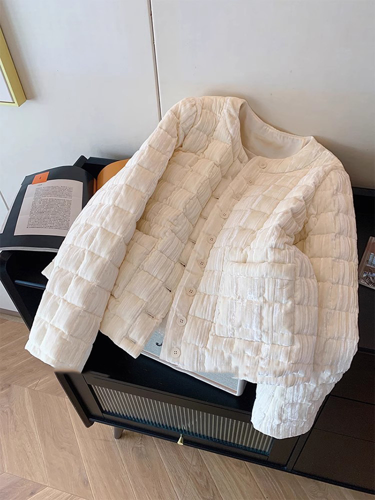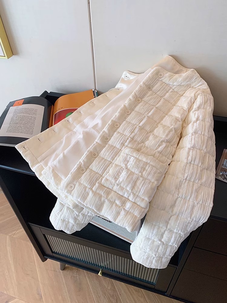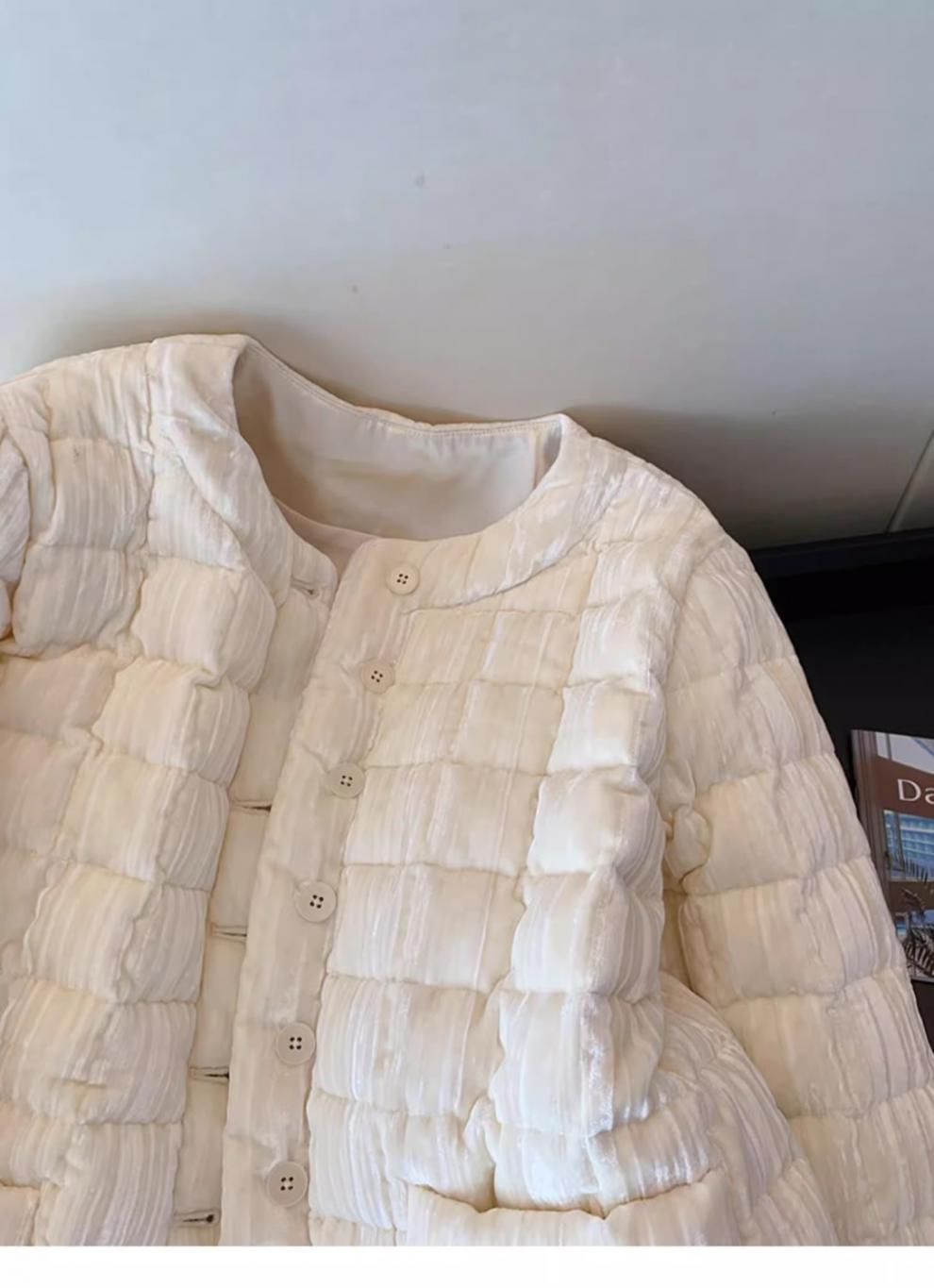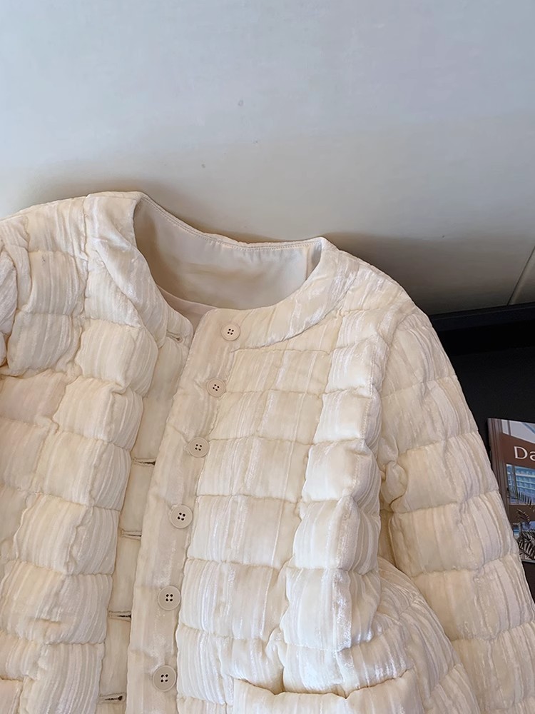 고급 벨벳 싱글 브레스트 크루 넥 코튼 패딩 코트 여성용 겨울 2024 따뜻한 쇼트 코트를 입고 새로운 유행 우아한 아우터