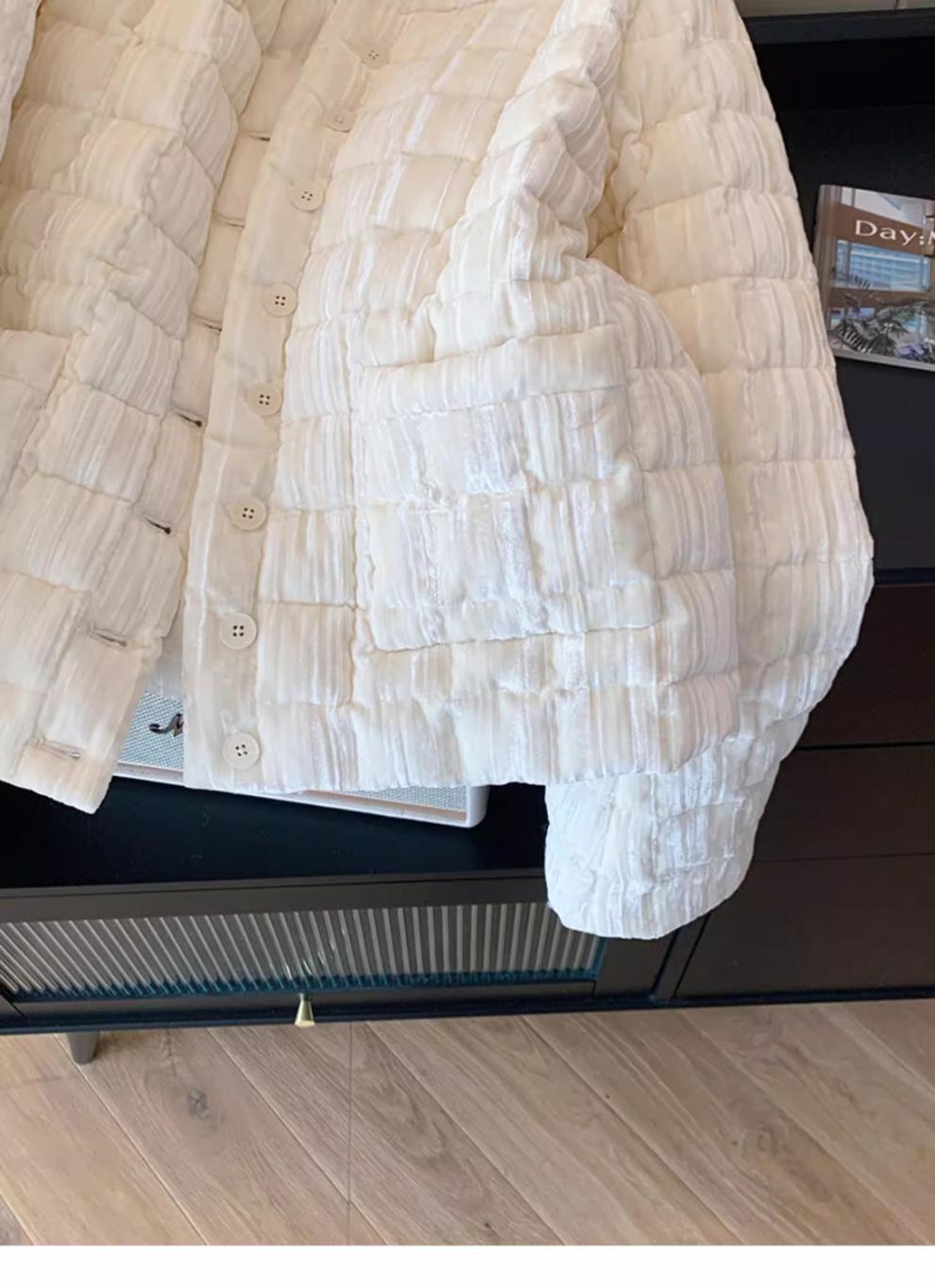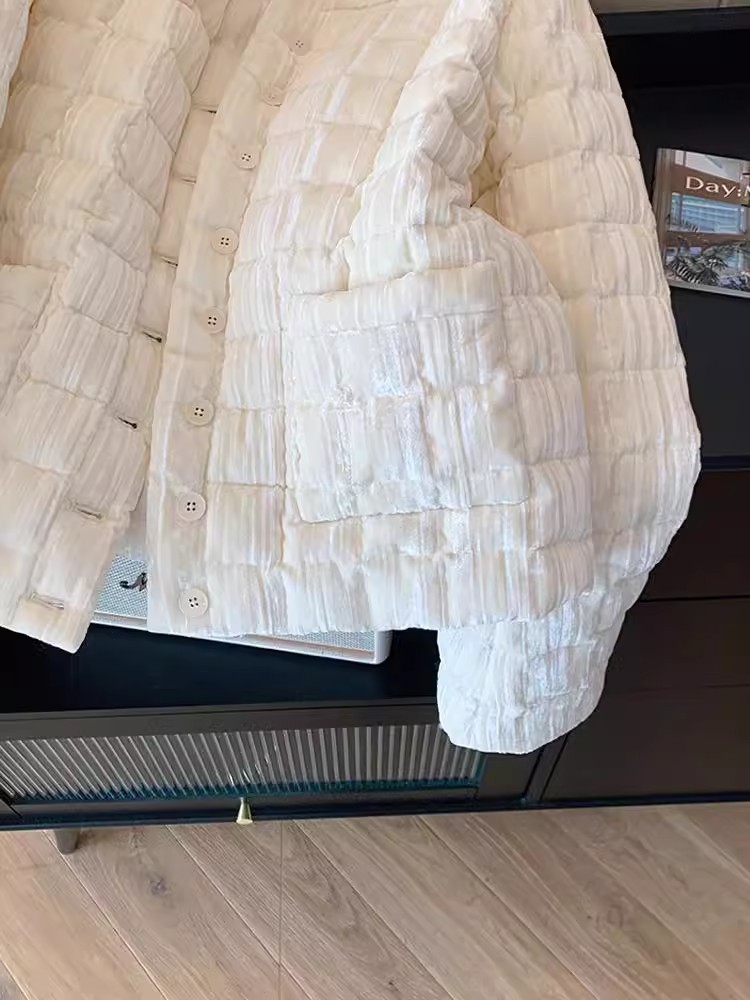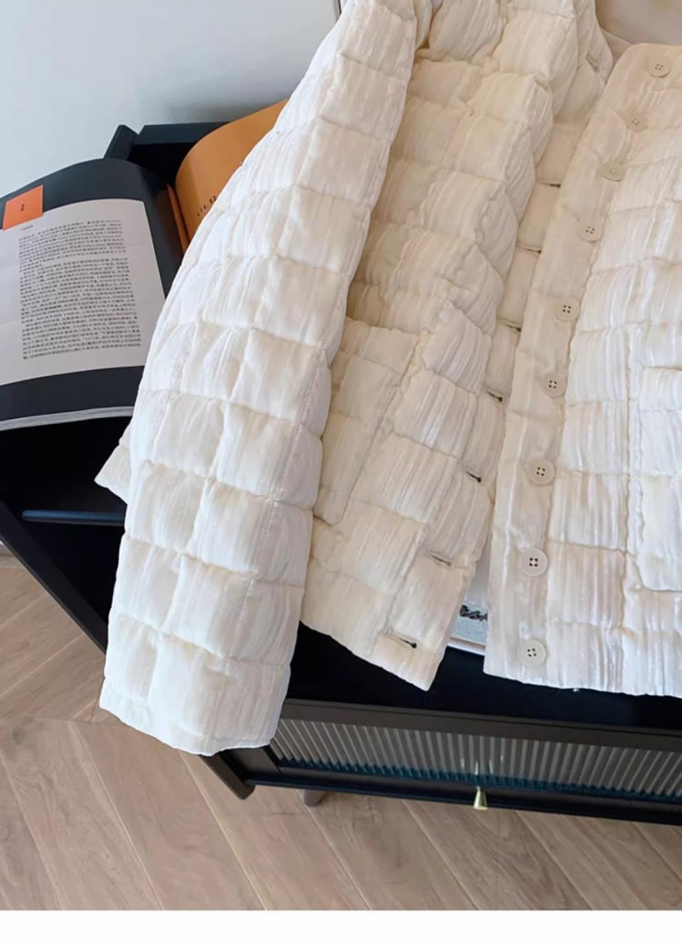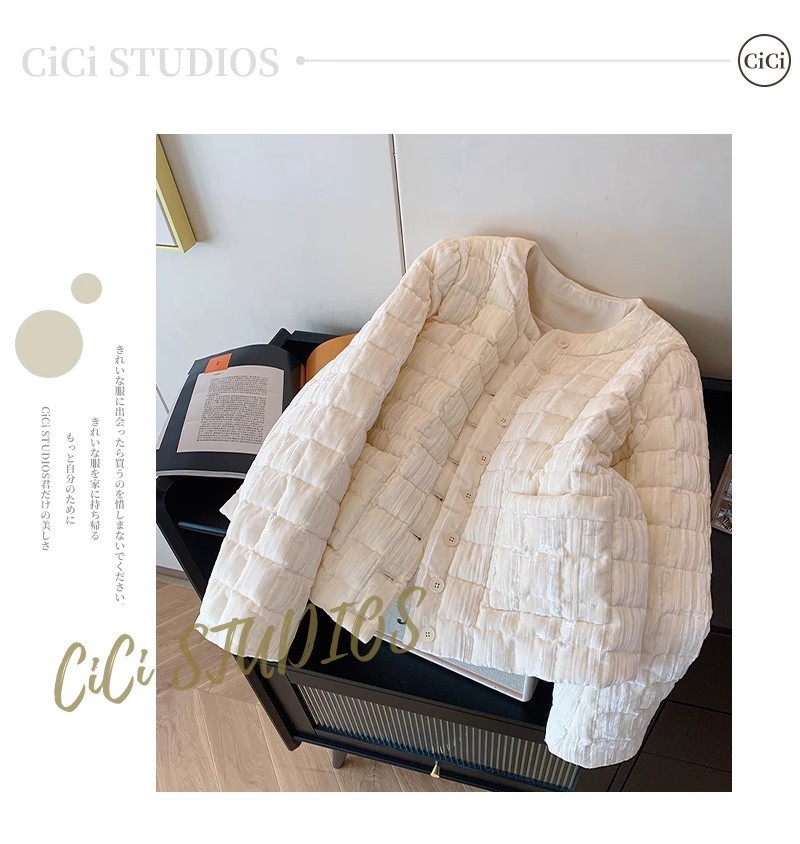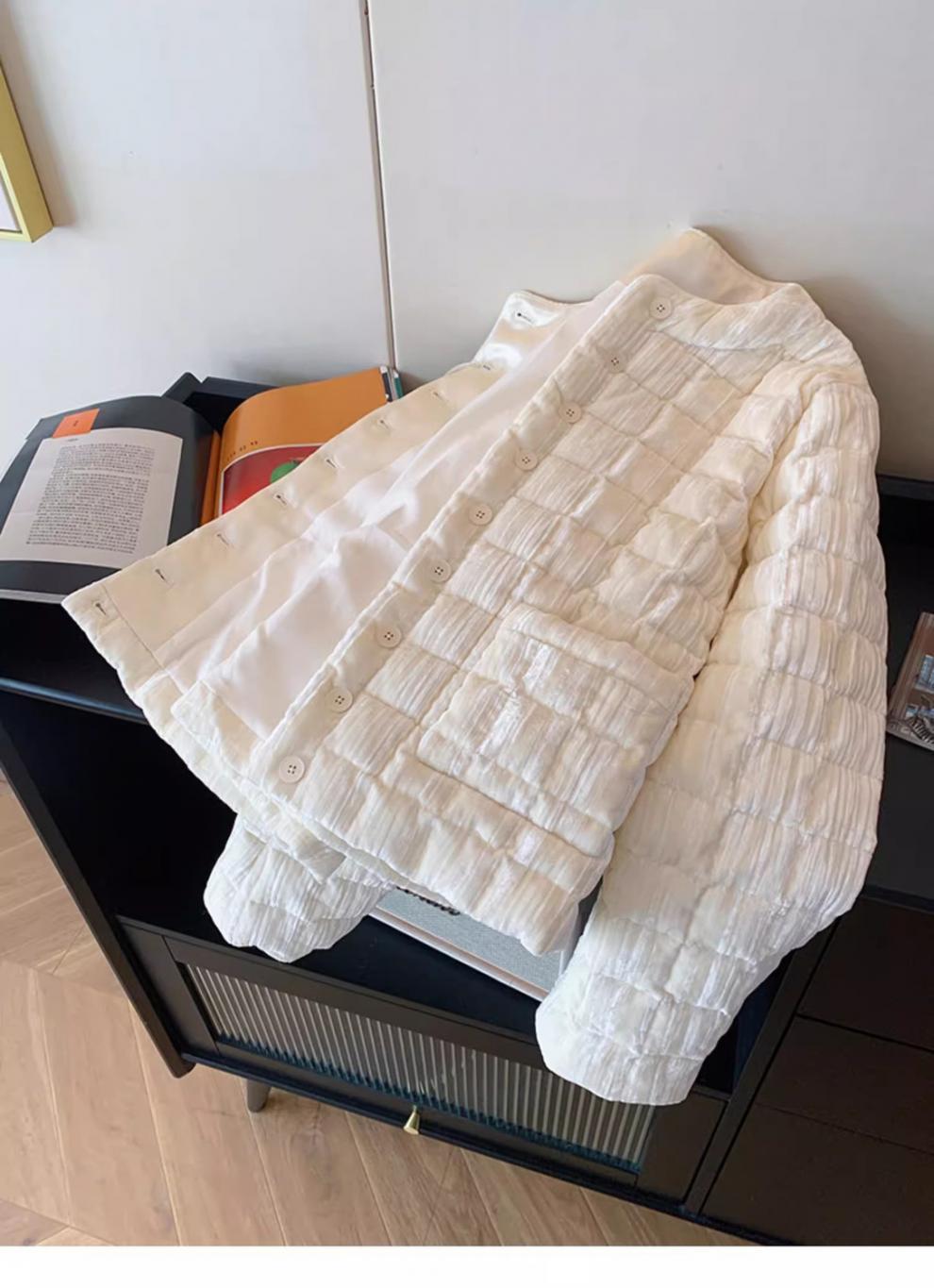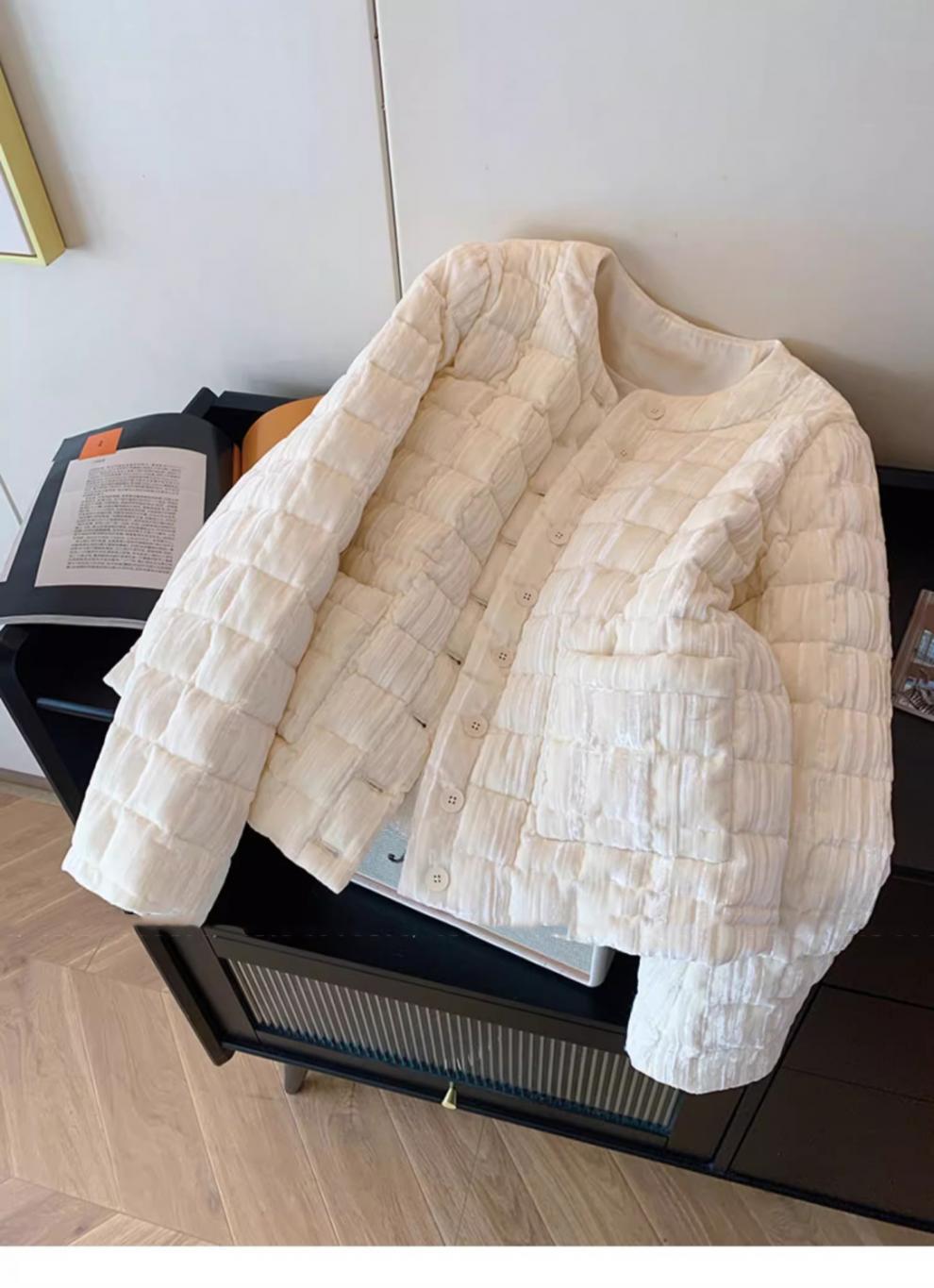 고급 벨벳 싱글 브레스트 크루 넥 코튼 패딩 코트 여성용 겨울 2024 따뜻한 쇼트 코트를 입고 새로운 유행 우아한 아우터
