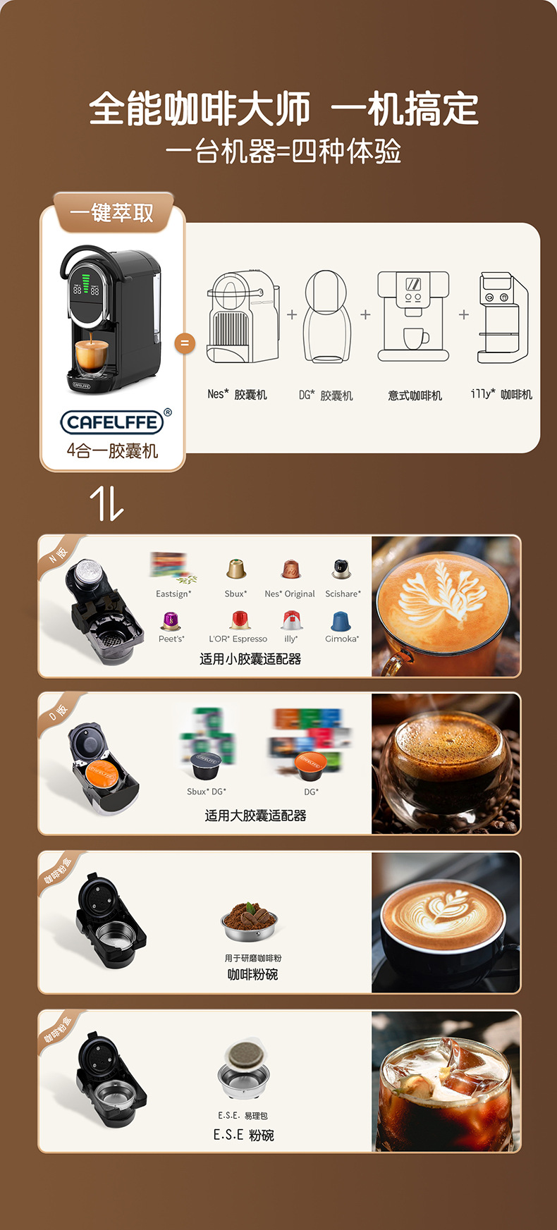 CAFELFFE 캡슐 커피 기계 자동 작은 가정용 휴대용 사무실 에스프레소 분말 올인원 기계스토어 가기