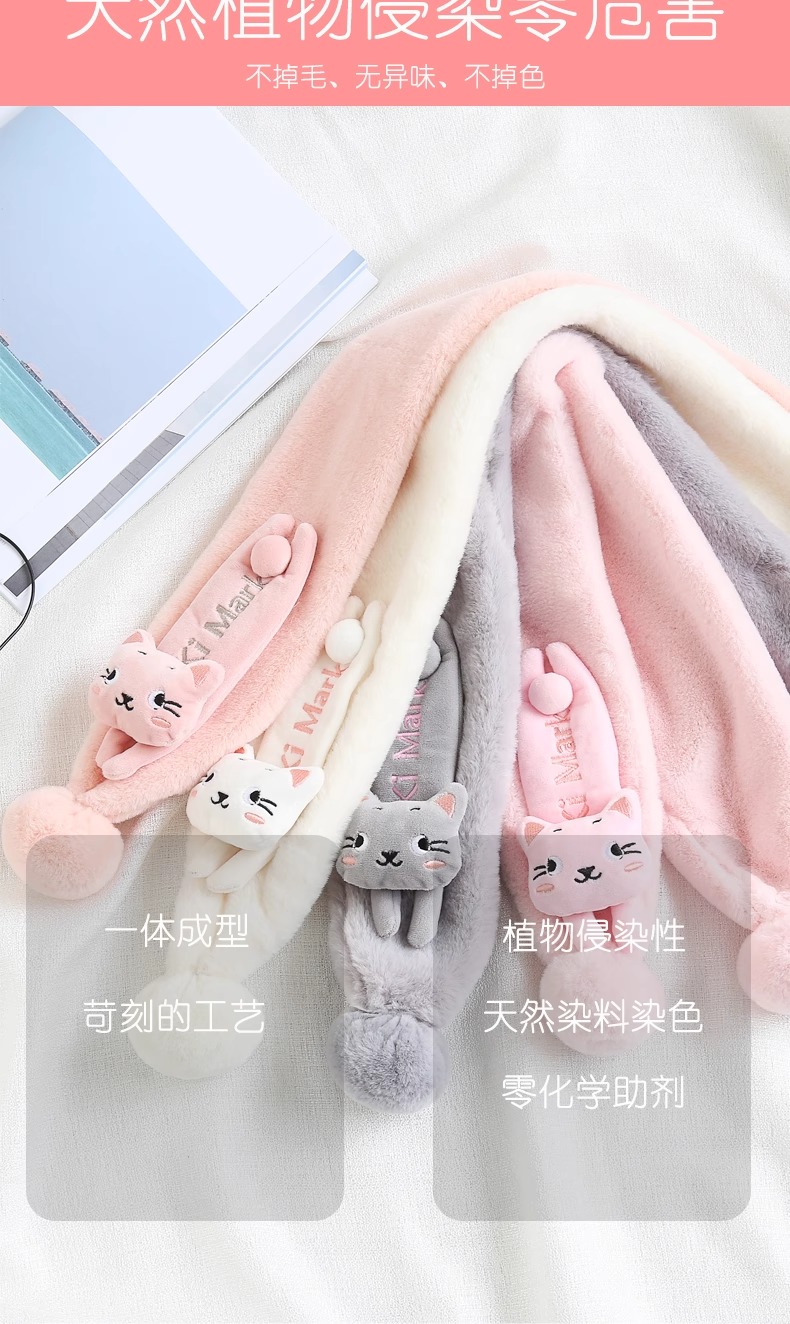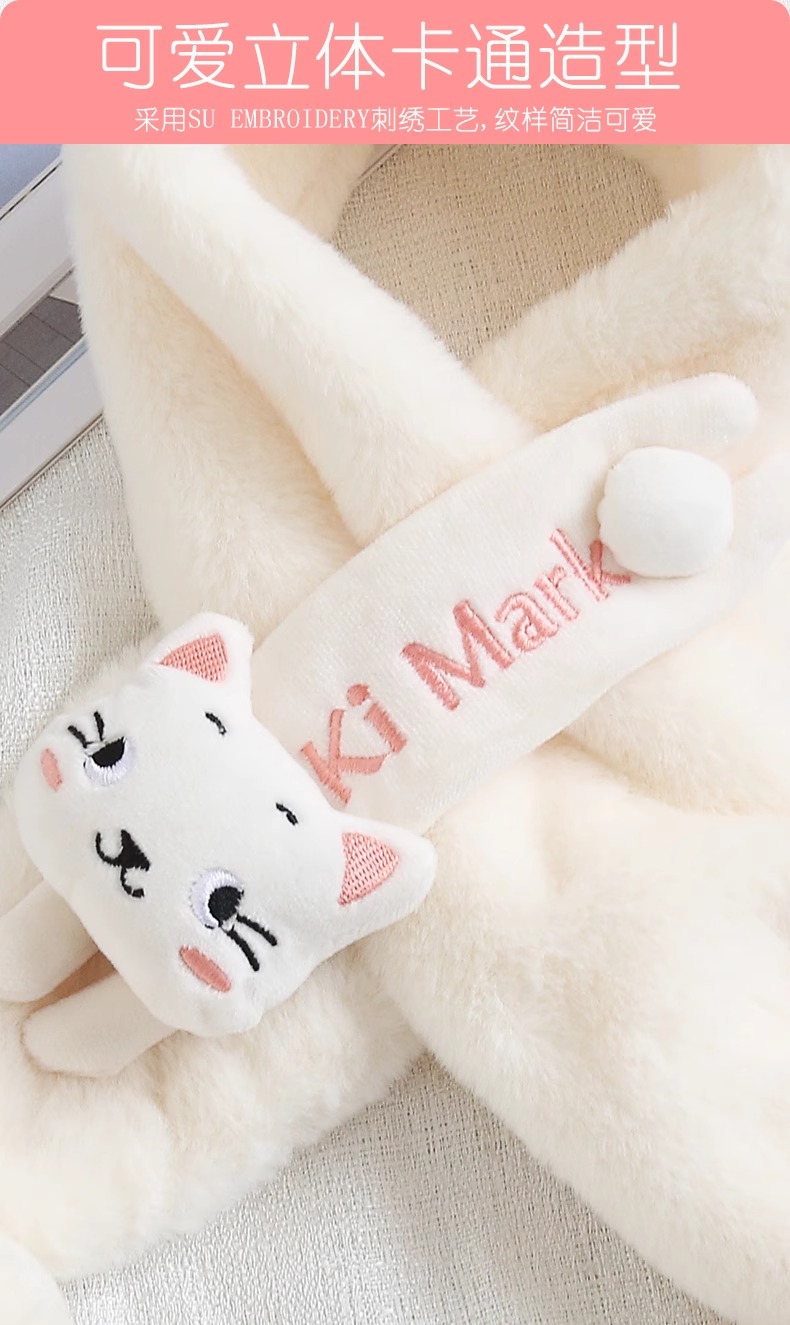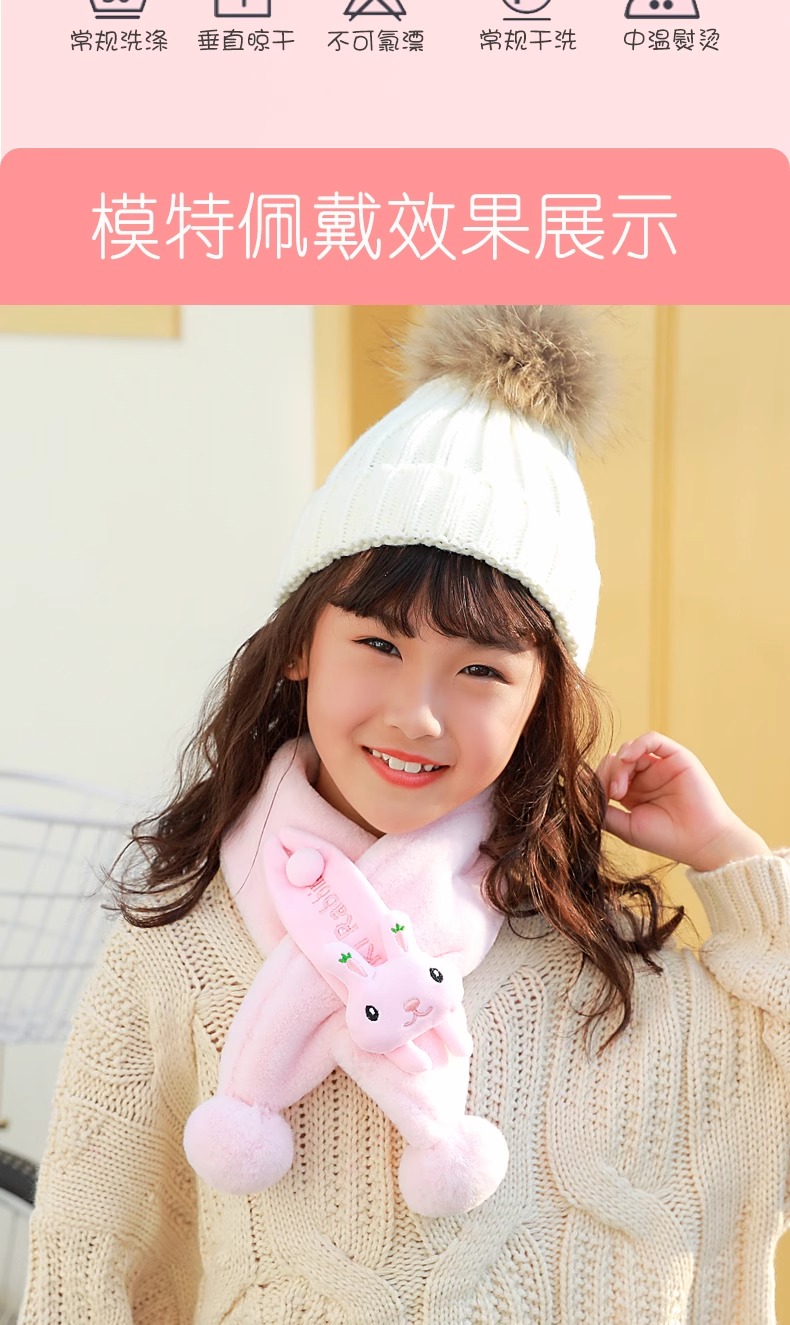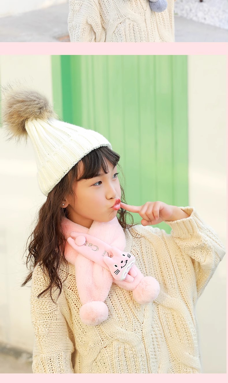 기모 두꺼운 크로스 스카프 한국 만화 어린이 스카프 겨울 따뜻한 아기 봉제 토끼 모피 스카프