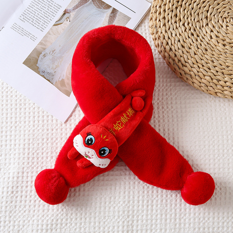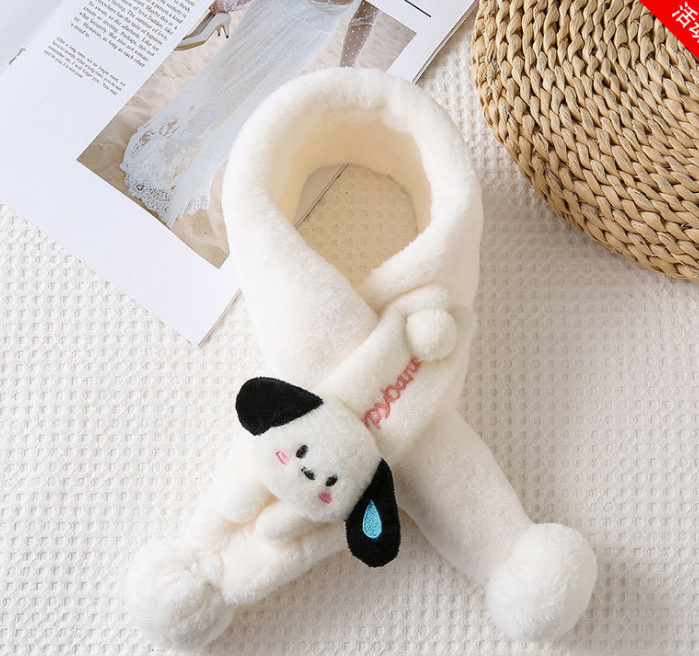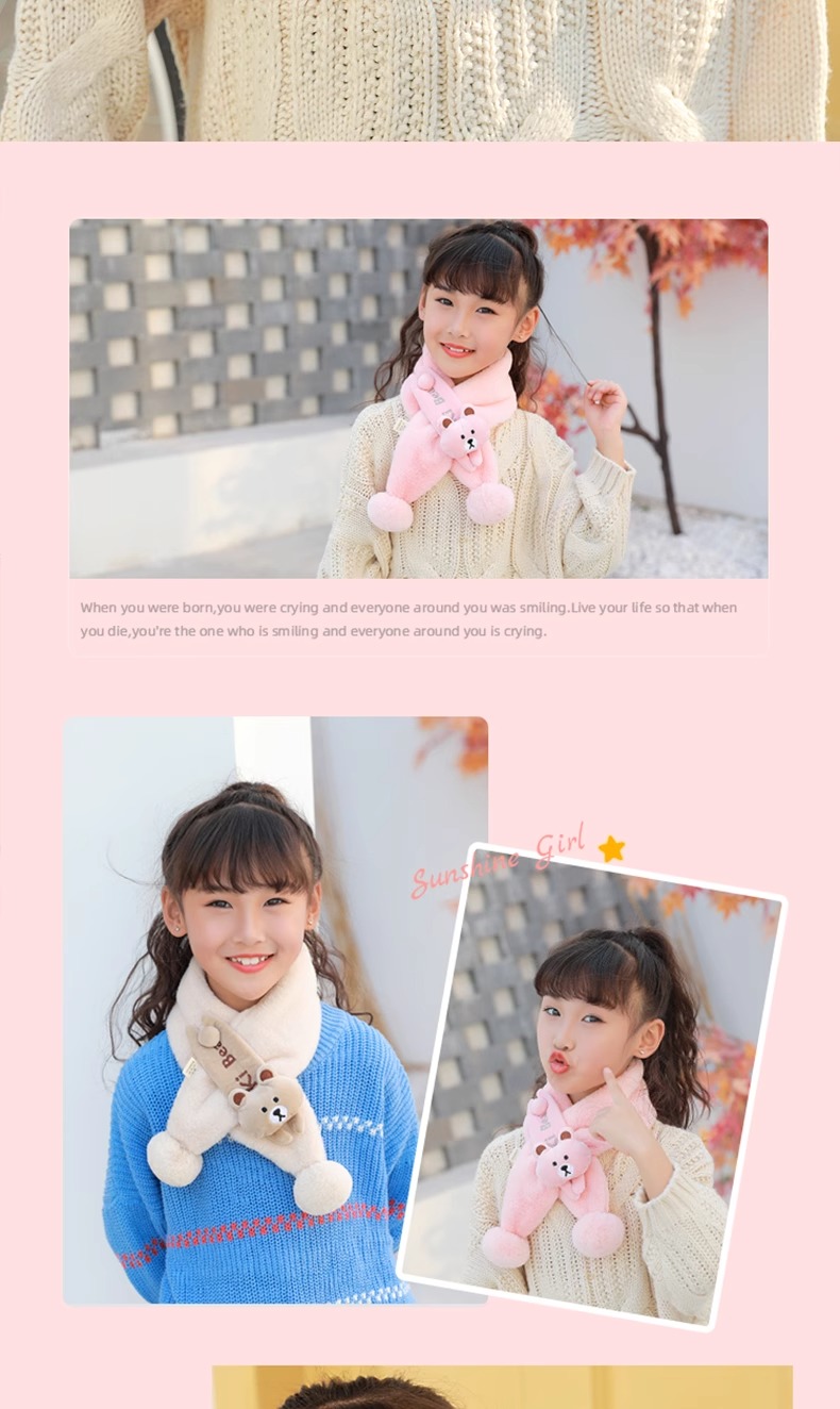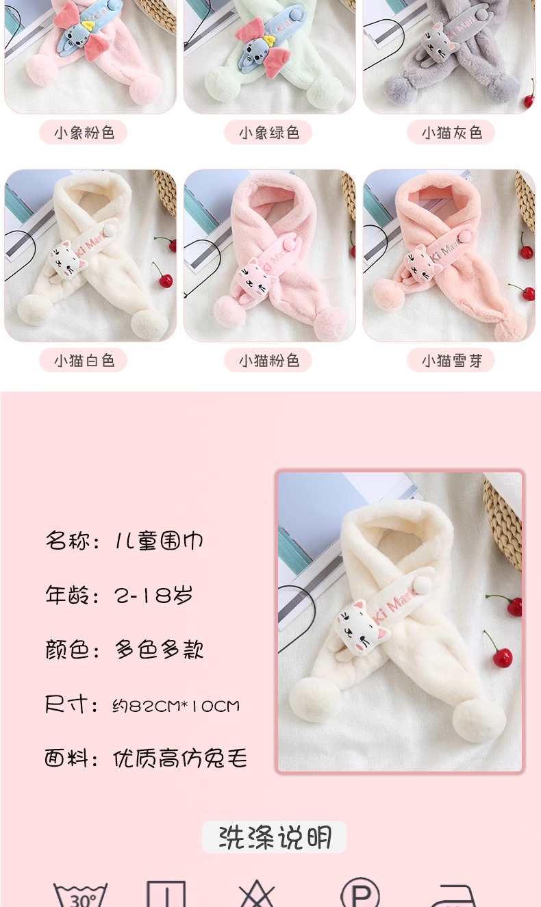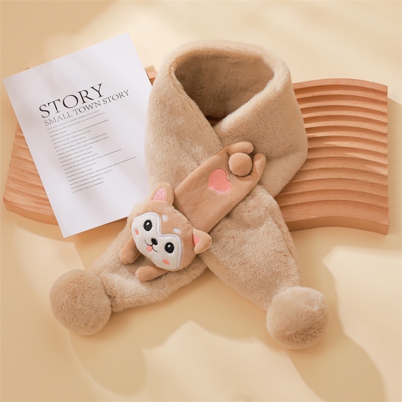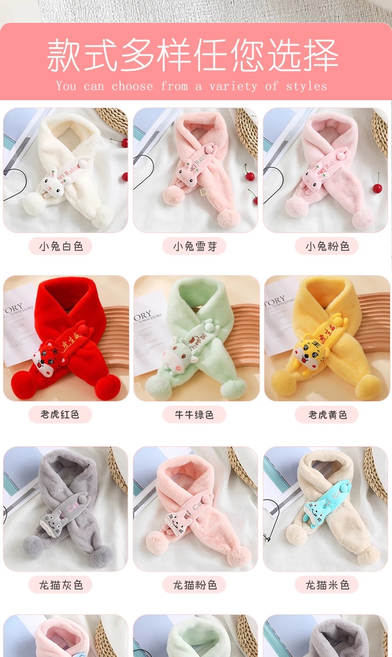 기모 두꺼운 크로스 스카프 한국 만화 어린이 스카프 겨울 따뜻한 아기 봉제 토끼 모피 스카프