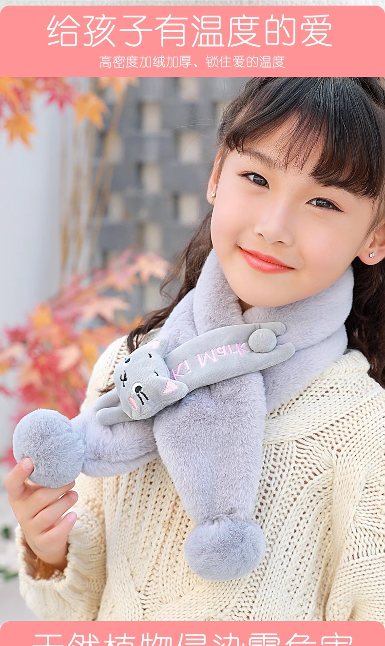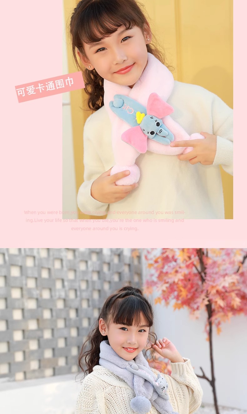 기모 두꺼운 크로스 스카프 한국 만화 어린이 스카프 겨울 따뜻한 아기 봉제 토끼 모피 스카프스토어 가기