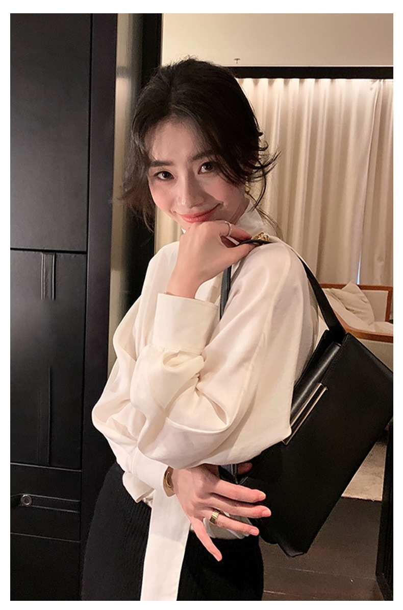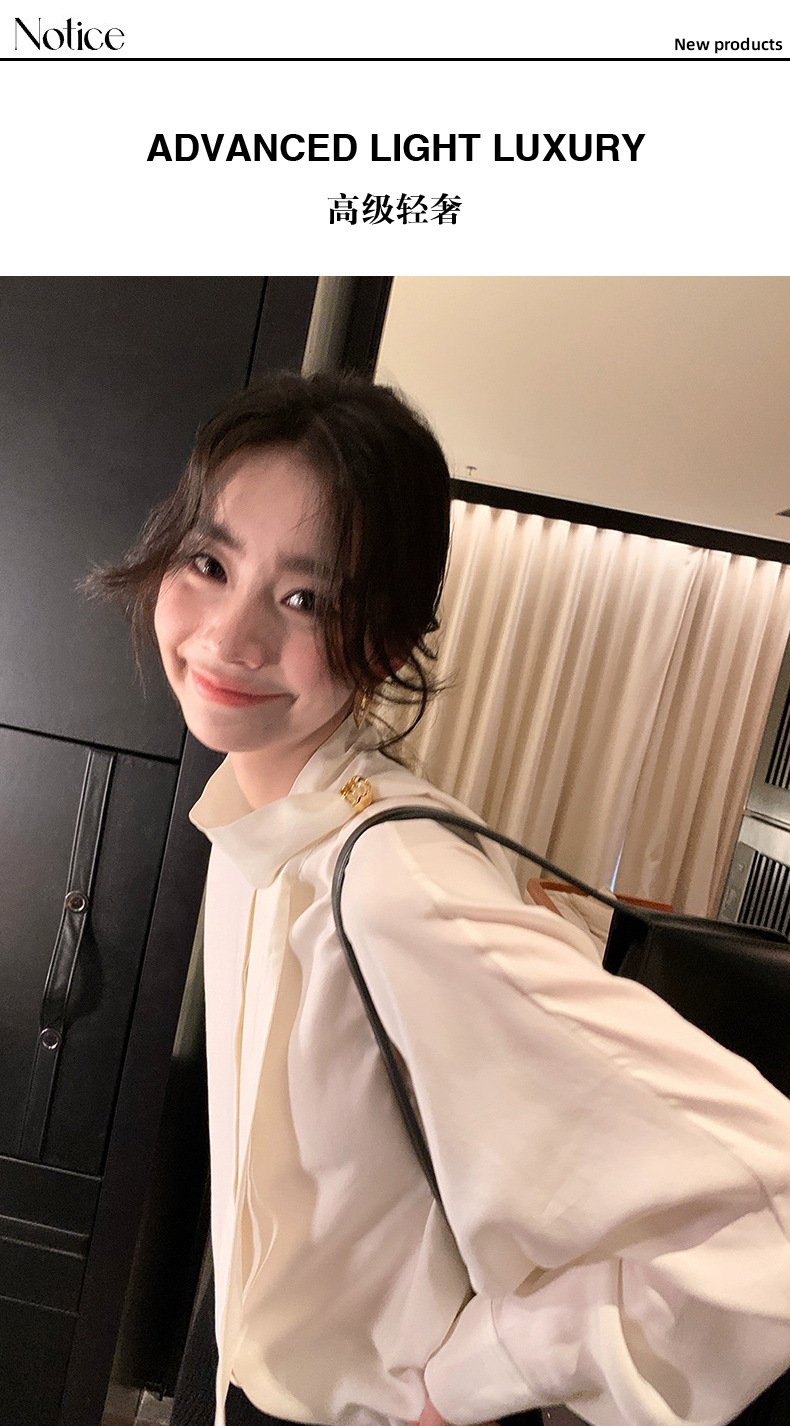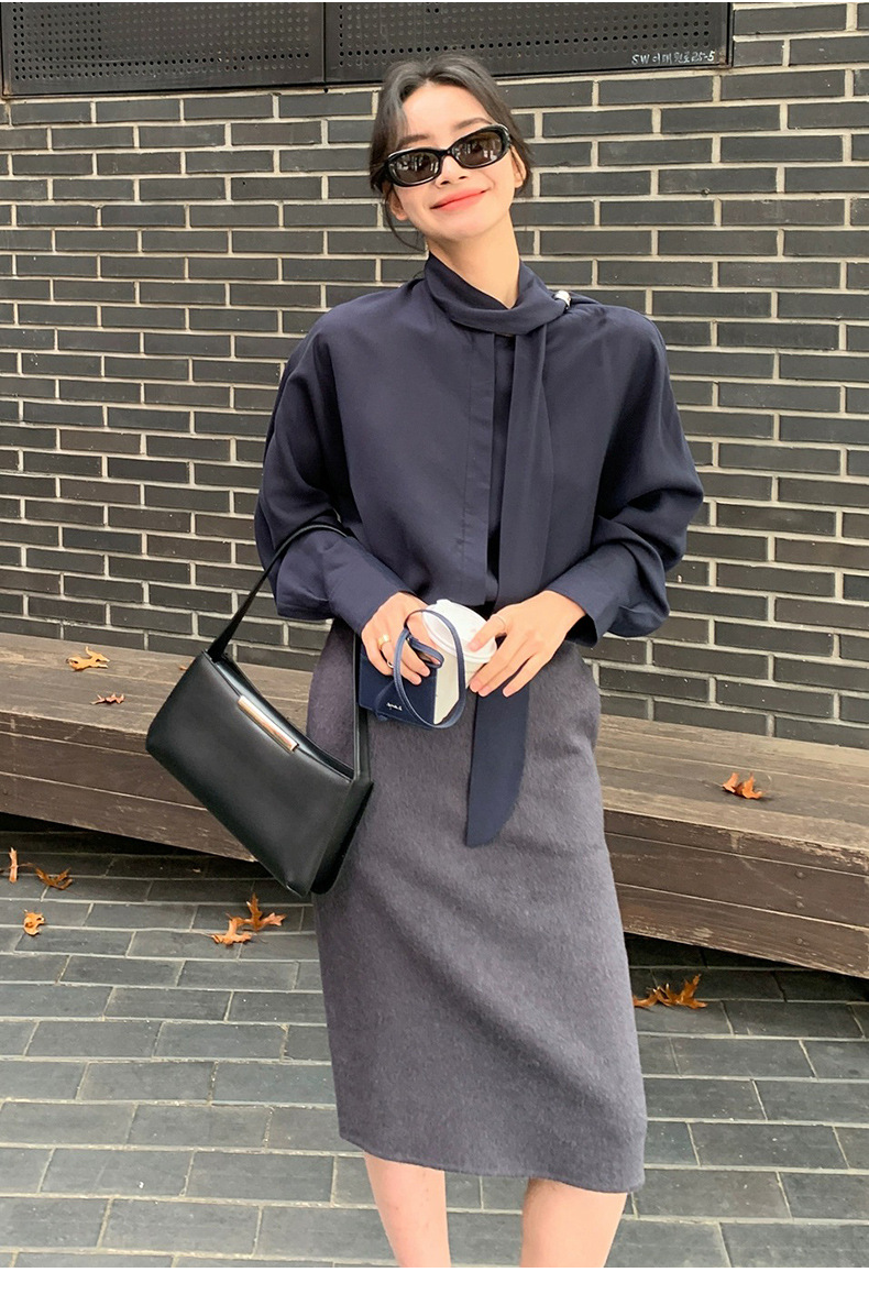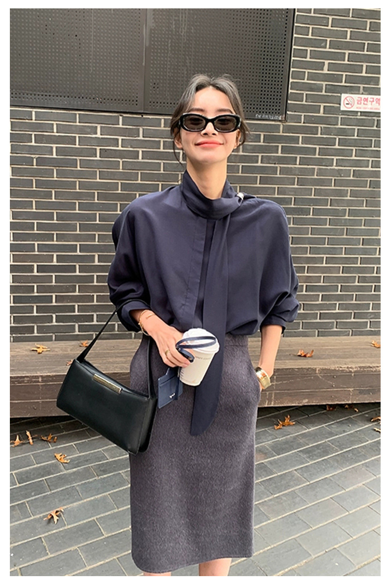 디자인 스카프 칼라 긴팔 솔리드 컬러 셔츠 여성 이른 봄 새로운 스타일 2025 고급 기질 통근 울 탑스토어 가기