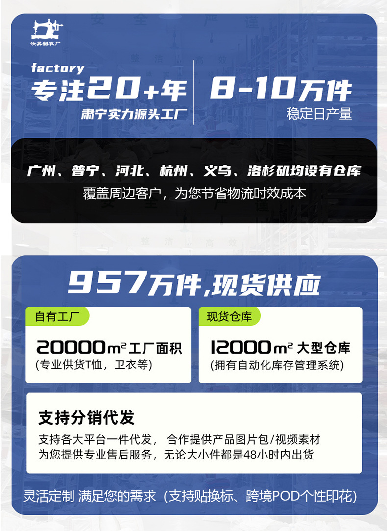 河北20多年工厂,1.2万平米,日产量10万件,全国8大仓库老板拿出4000000件,冲量促销,质量升级更放心,让新买家了解汝昇服饰品质,抢完为止!!