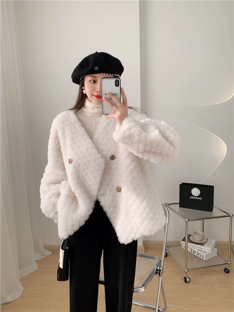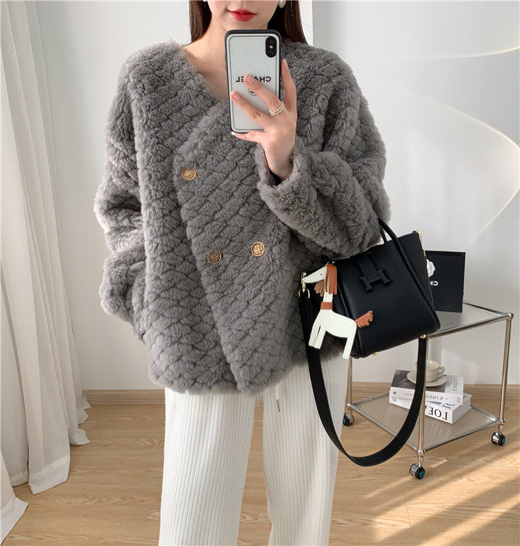 2024 겨울 새 모피 양 입자 코트 양고기 양모 캐주얼 젊은 원피스 모피 코트 코트스토어 가기
