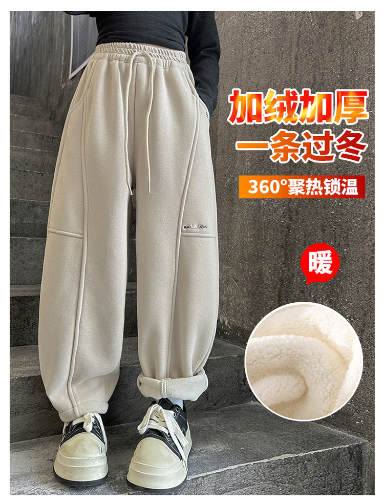 여자 두꺼운 알파카 스웨트 팬츠 2024 겨울 새 어린이 패셔너블 캐주얼 스포츠 팬츠 기모 올 매치 마체테 바지스토어 가기