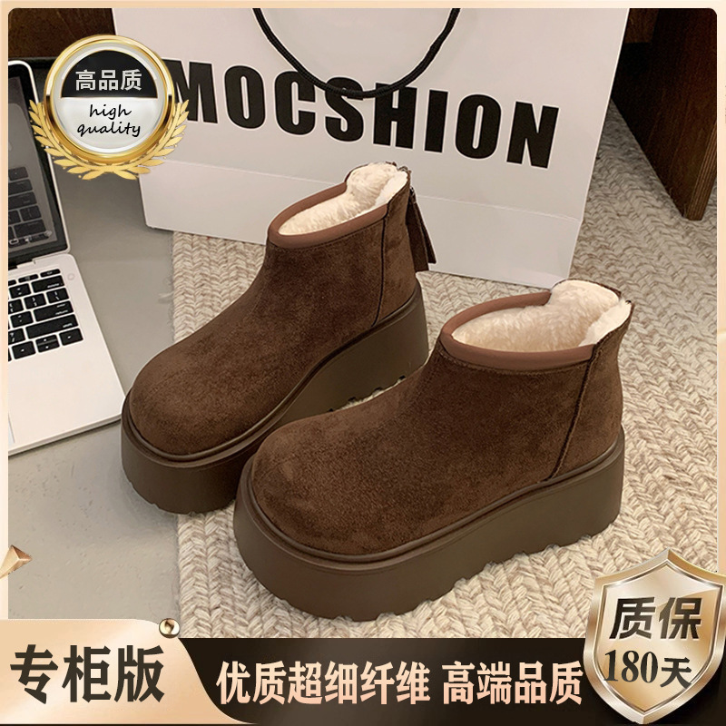 두꺼운 밑창 스노우 부츠 여성 기모 Birkenstocks 쇼트 부츠 2024 새 겨울 두꺼운 따뜻한 동북 신발스토어 가기