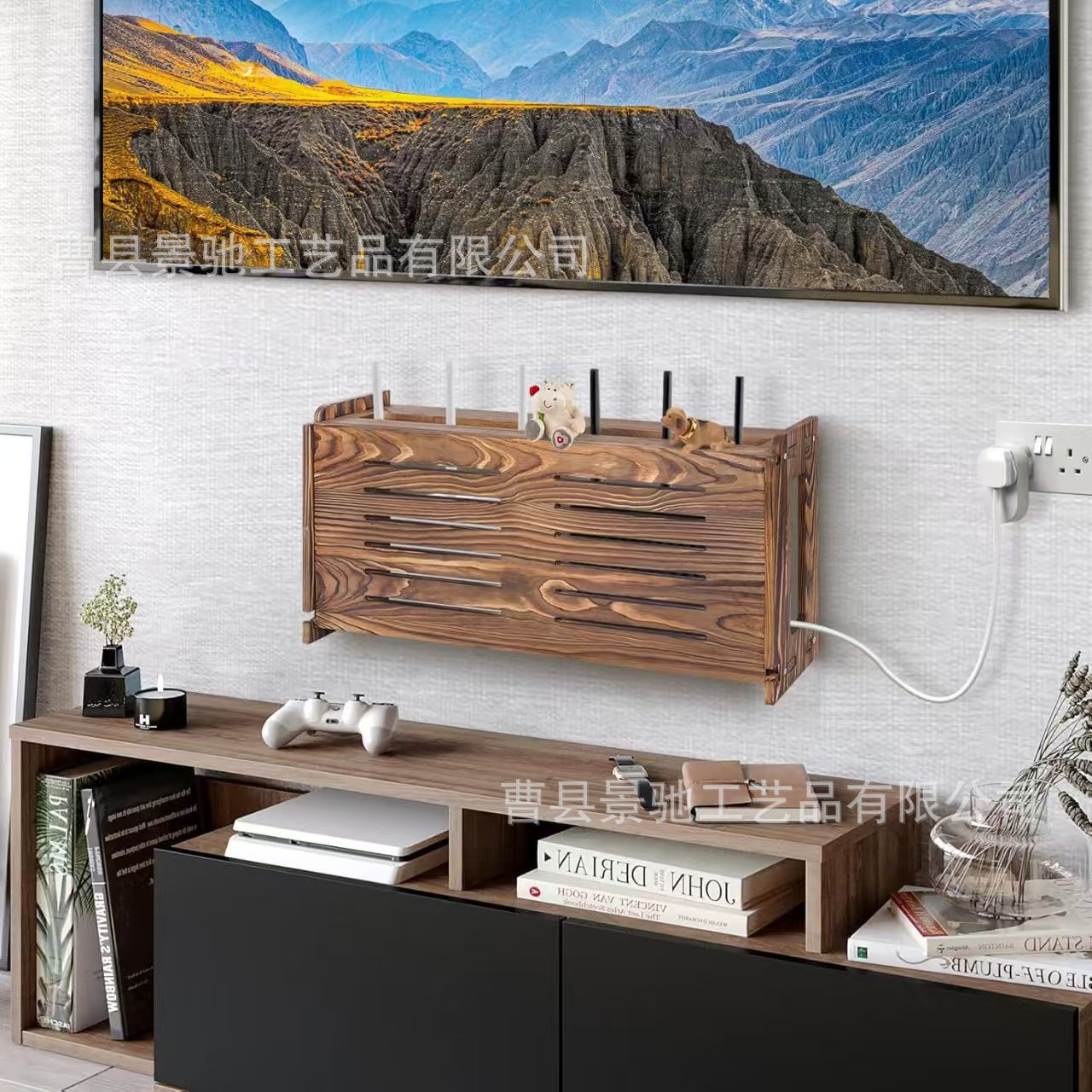 국경 간 나무 무선 라우터 저장 랙 TV 캐비닛 전원 보드 케이블은 숨겨진 상자 홈 저장 상자를 구성합니다.