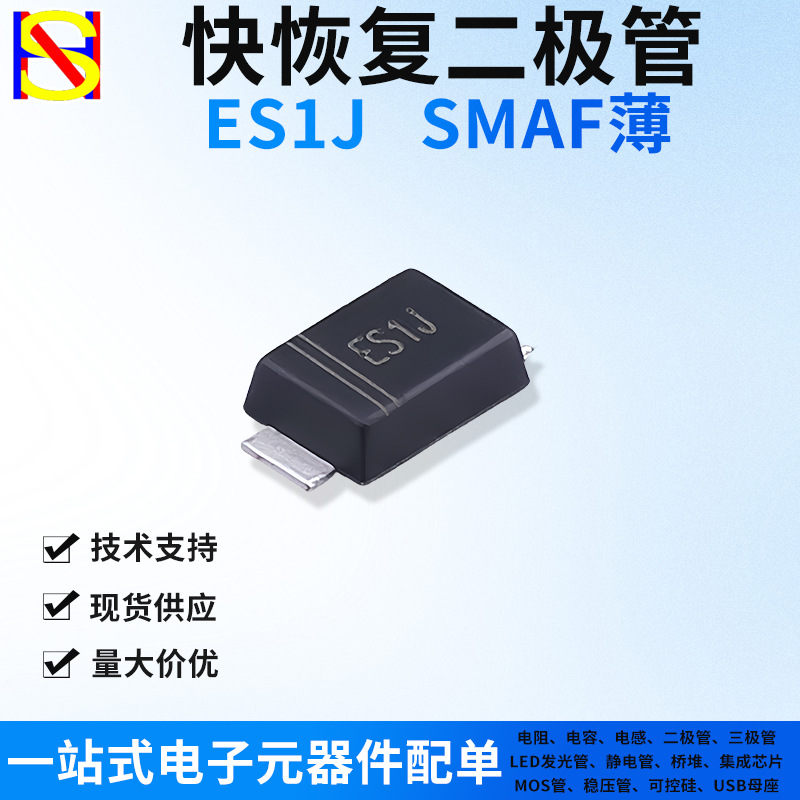ES1JF 빠른 복구 다이오드 SMAF 패키지 패치 고효율 크리스탈 마이크로 600V/1A