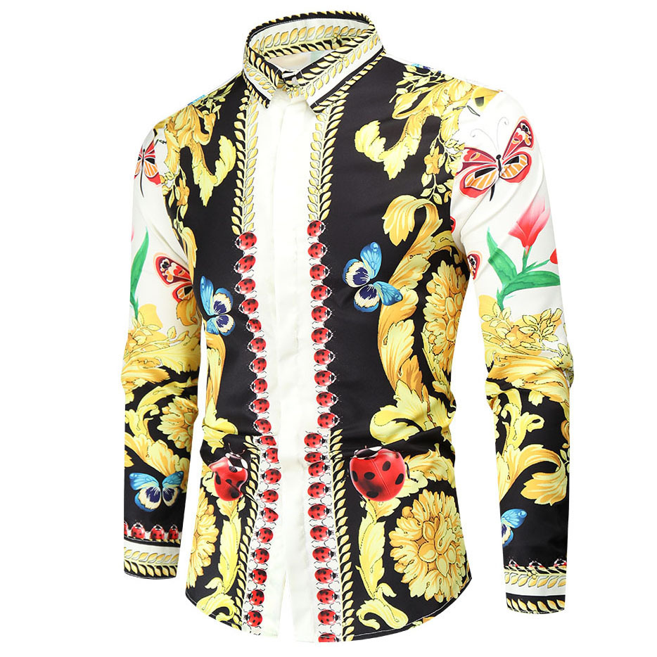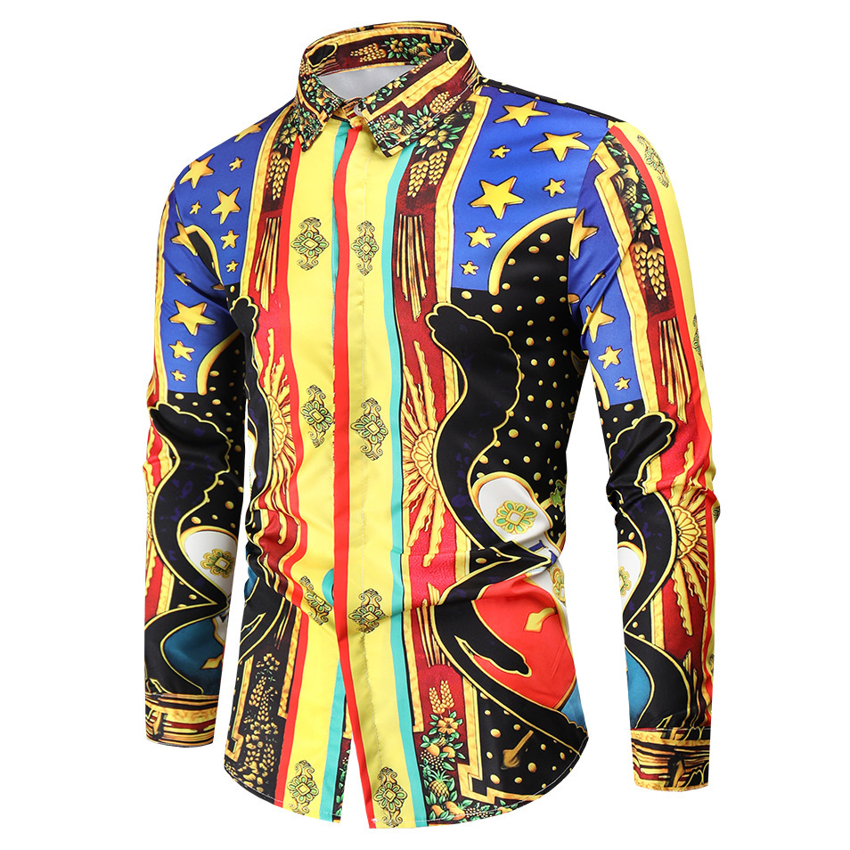 국경을 넘는 새로운 봄과 가을 패션 트렌드 3D 디지털 인쇄 셔츠 하이 퀄리티 캐주얼 긴 소매 남성복