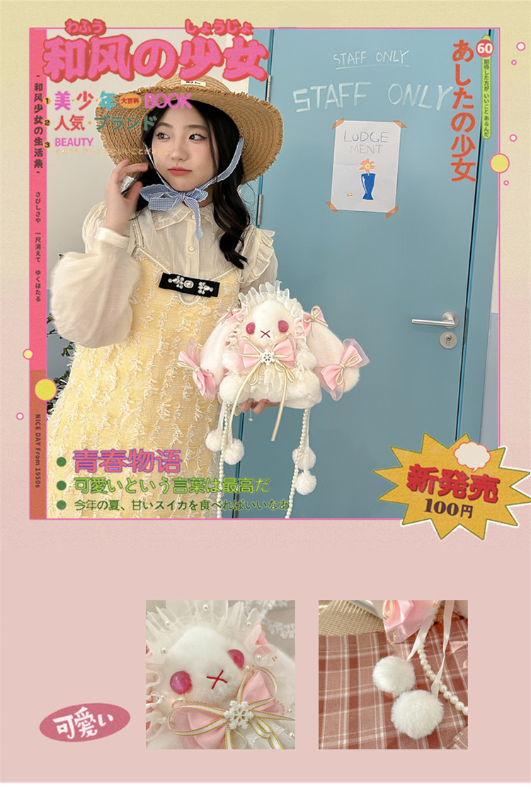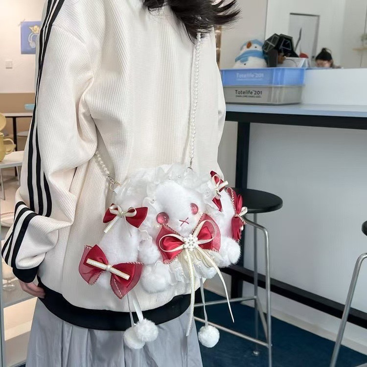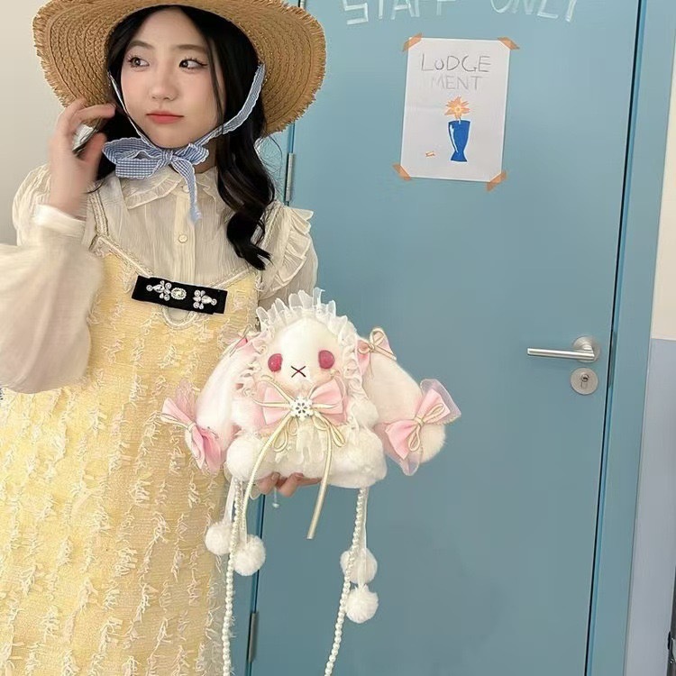 일본 로리타 토끼 가방 JK 소녀 부드러운 소녀 수제 인형 봉제 가방 달콤한 학생 어깨 크로스 바디 백
