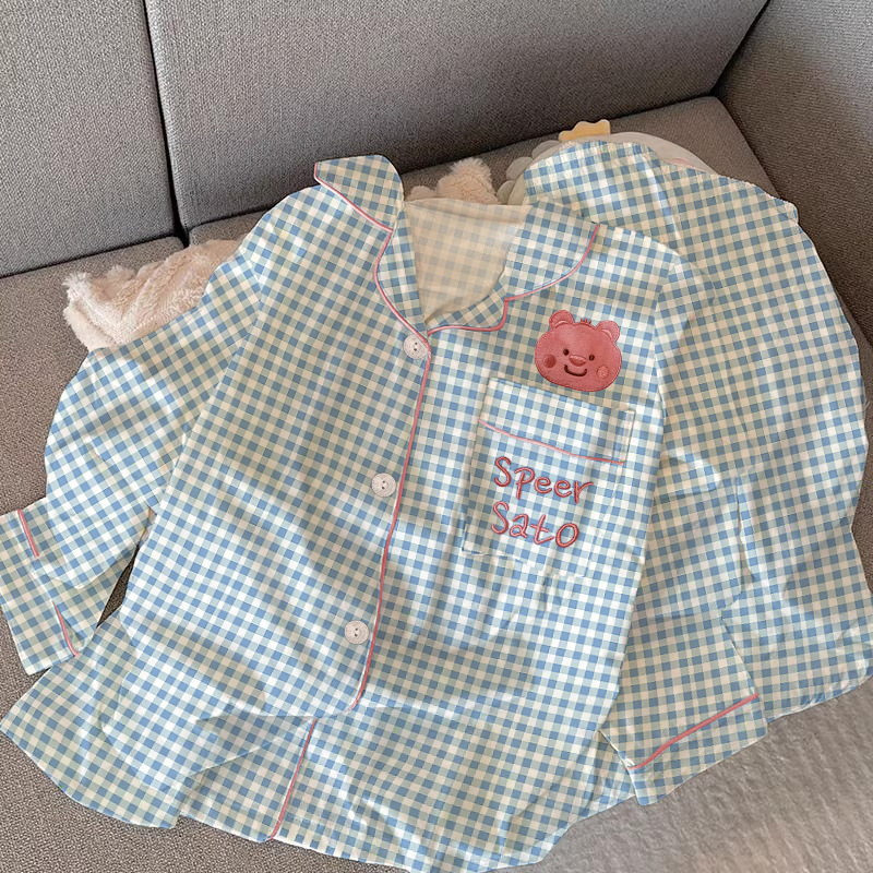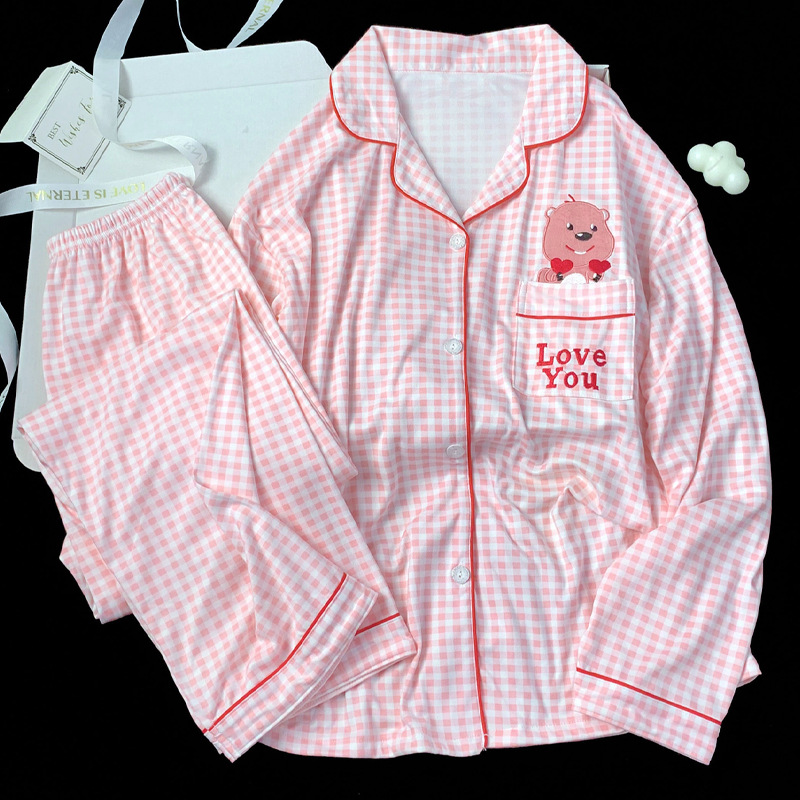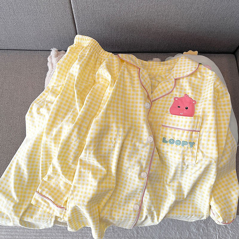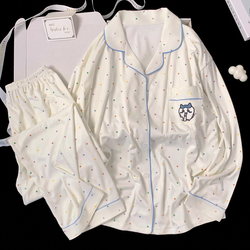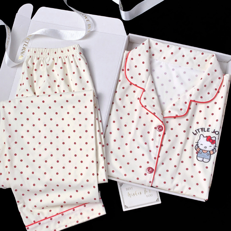 2024 새로운 봄과 가을 긴 소매 파자마 여성 카디건 세트 캐주얼 인터넷 축하 만화 Kt 고양이 달콤한 스타일 홈 옷