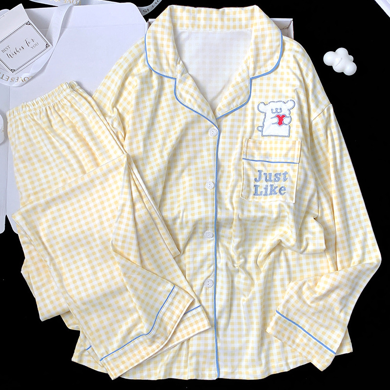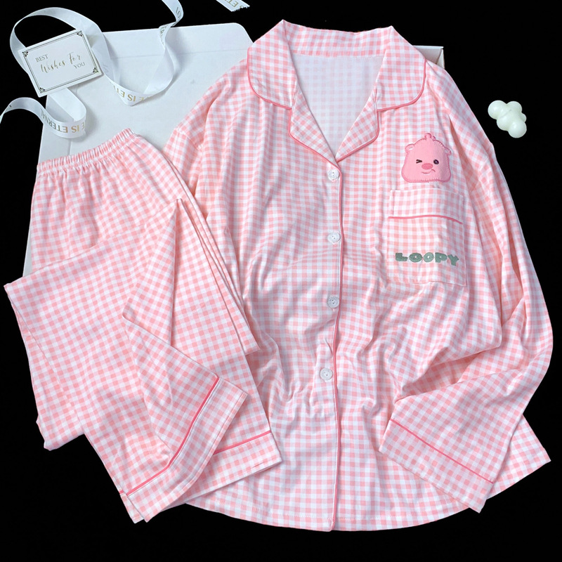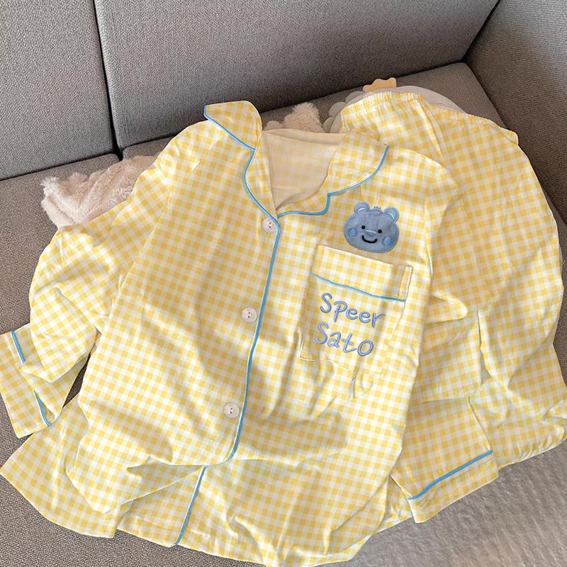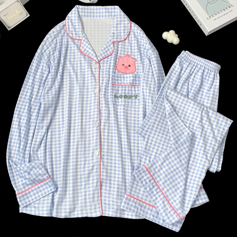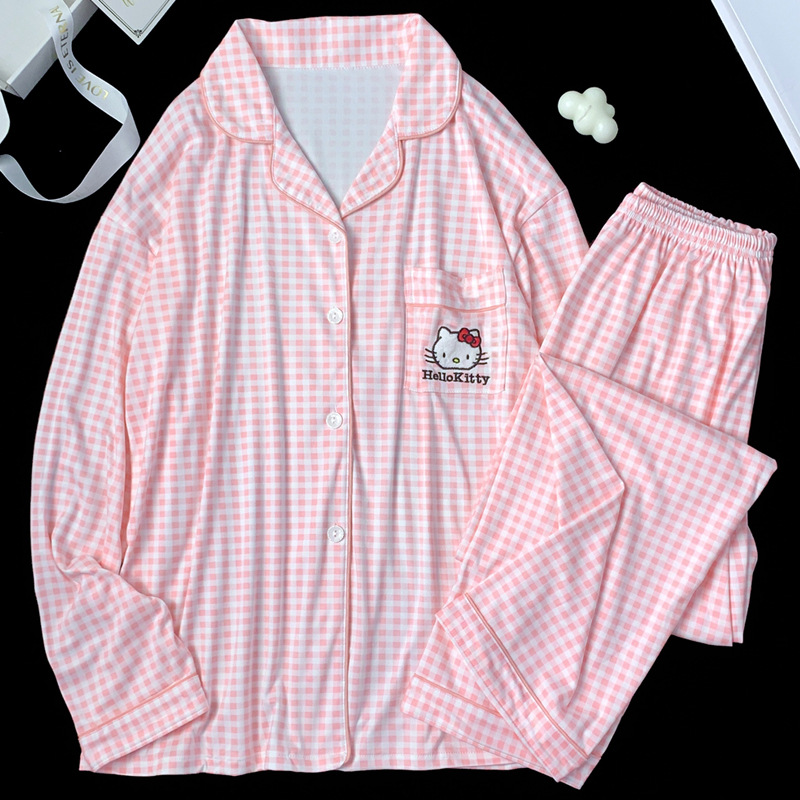 2024 새로운 봄과 가을 긴 소매 파자마 여성 카디건 세트 캐주얼 인터넷 축하 만화 Kt 고양이 달콤한 스타일 홈 옷스토어 가기