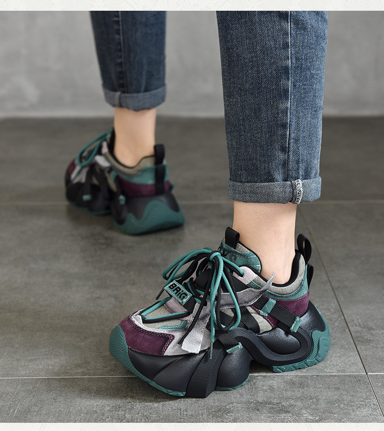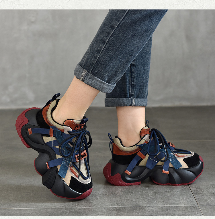 가을 2024 새로운 두꺼운 난간 토르 신발 여성 캐주얼 올 매치 레이스 업 로우 탑 신발 디자인 센스 스포츠 여성 신발