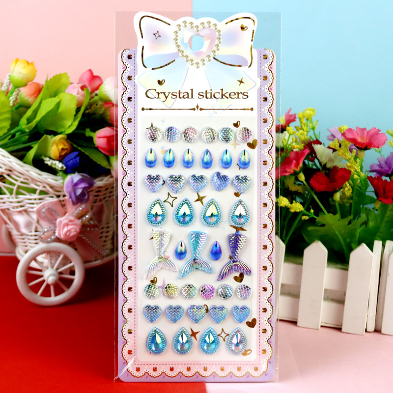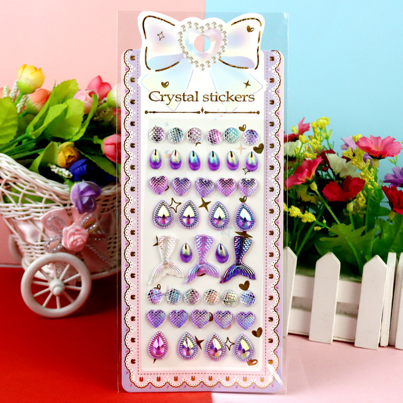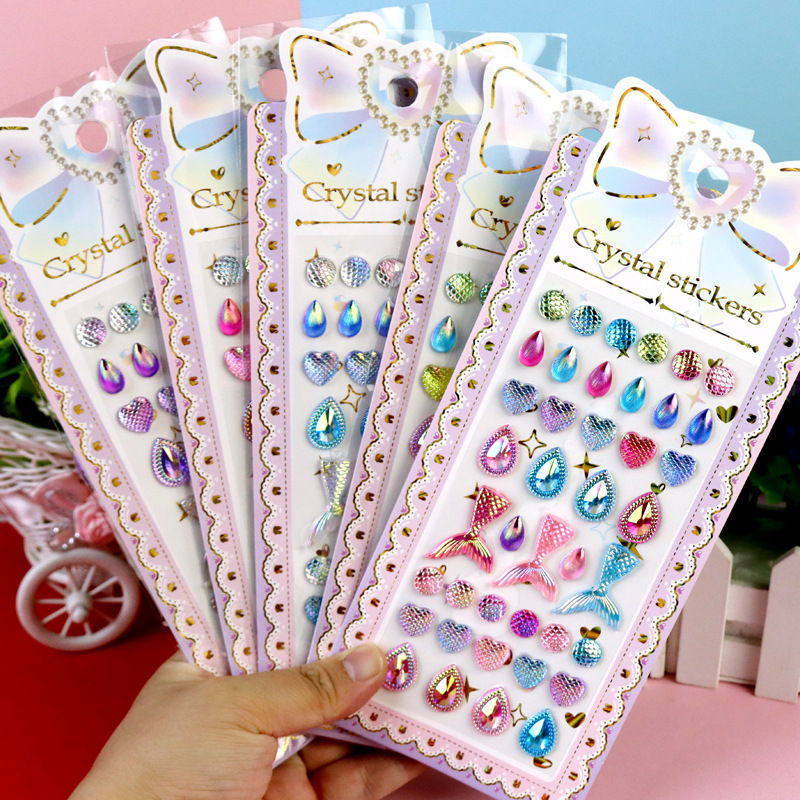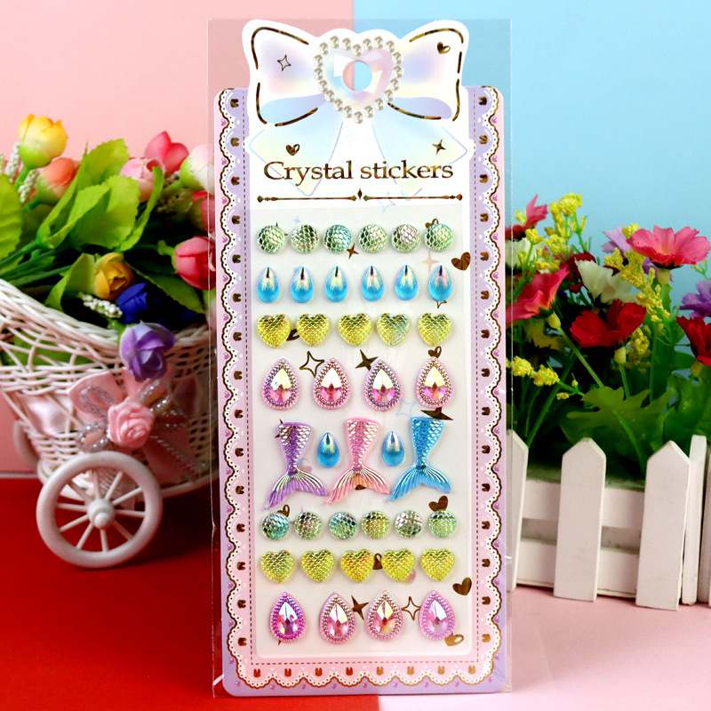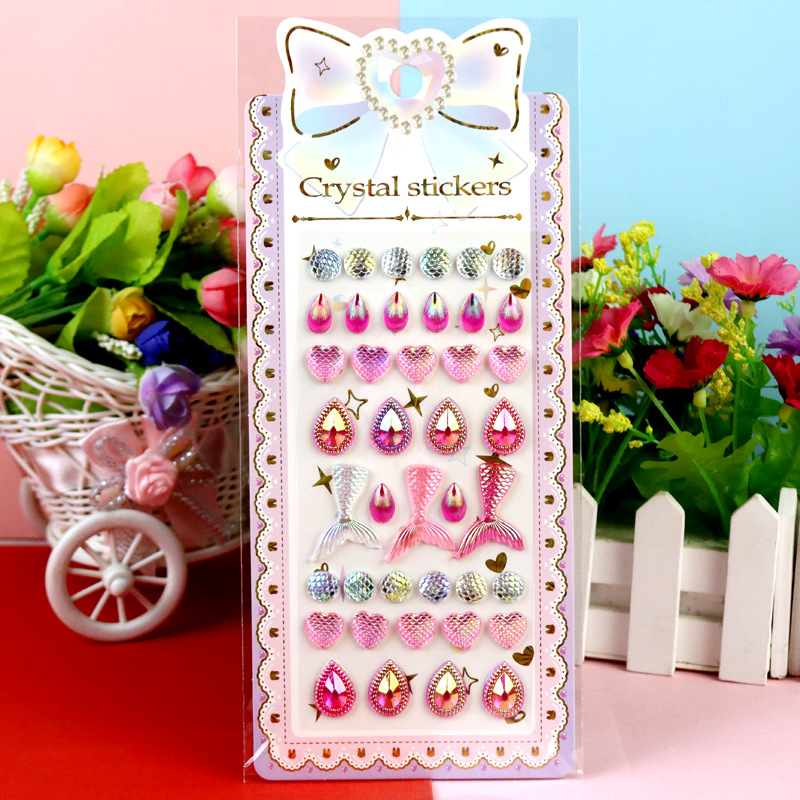어린이 DIY 보석 스티커 모양의 크리스탈 다이아몬드 스티커 국경 사랑 물고기 꼬리 혼합 색상 접착 아크릴 다이아몬드 스티커