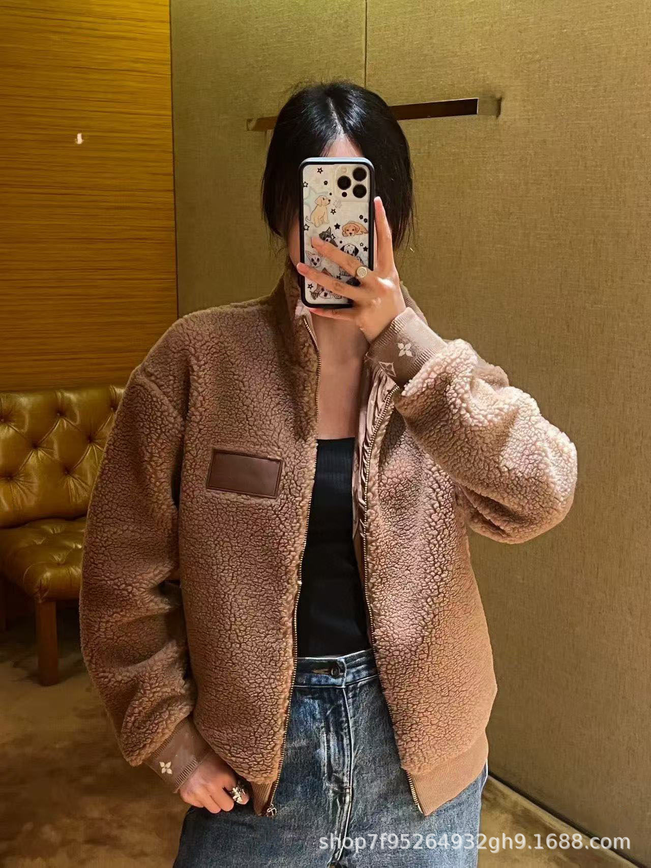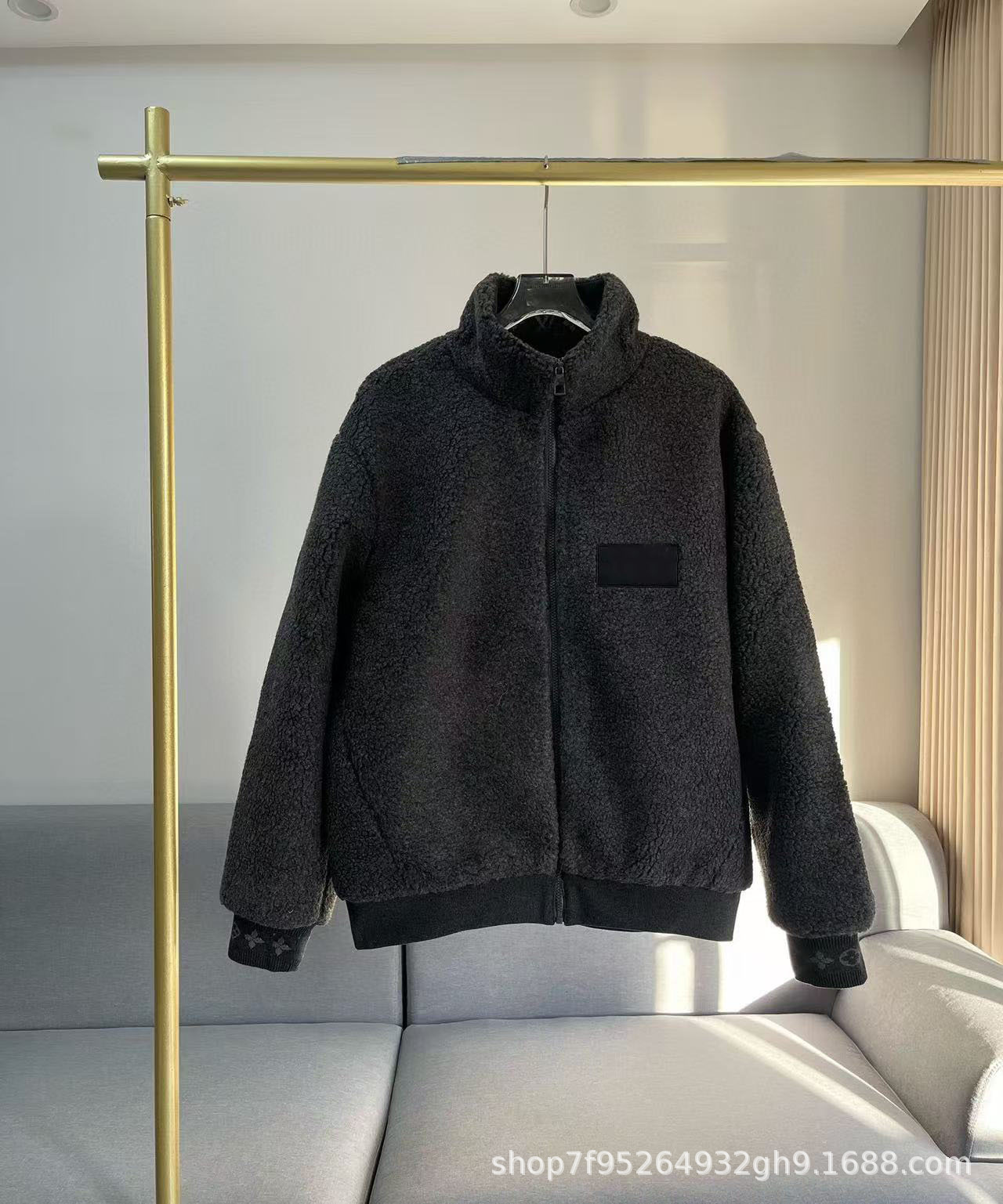 25 가을 겨울 신상 유럽 및 미국 트렌드 브랜드 자카드 자수 가죽 라벨 양털 재킷 패션 루즈핏 코트 남녀 공용스토어 가기