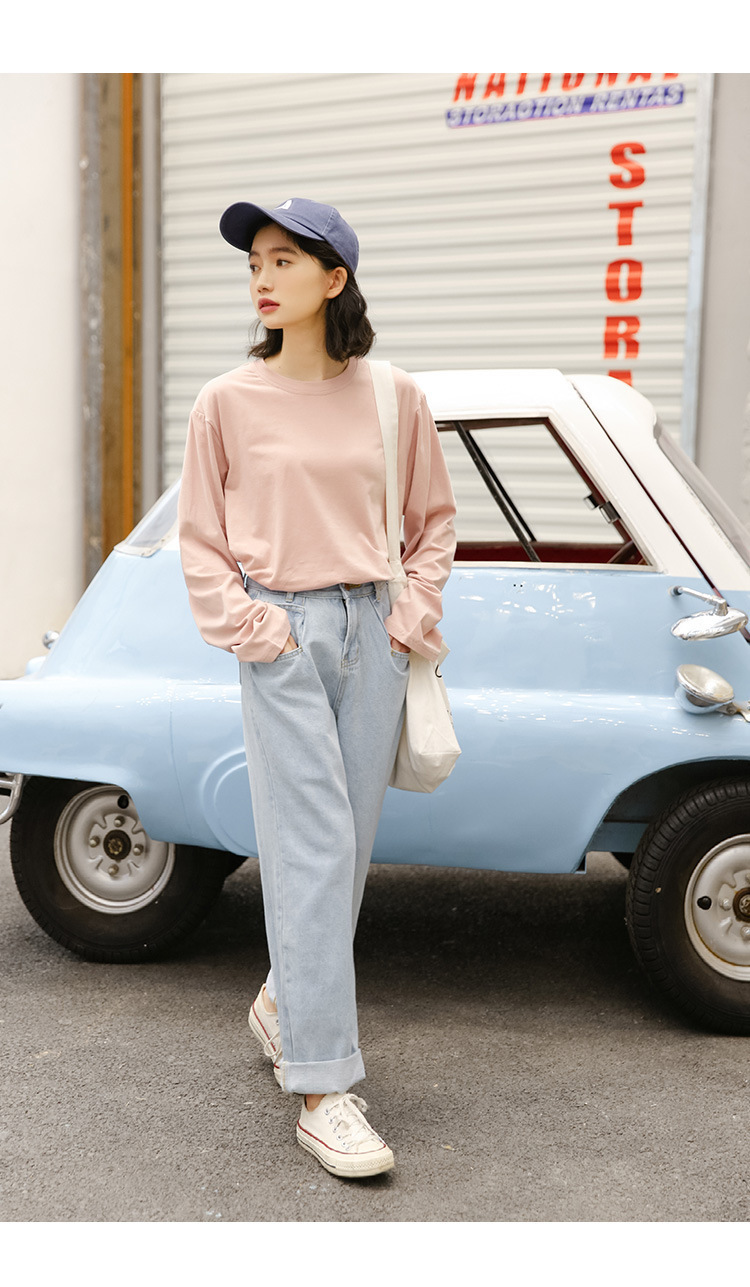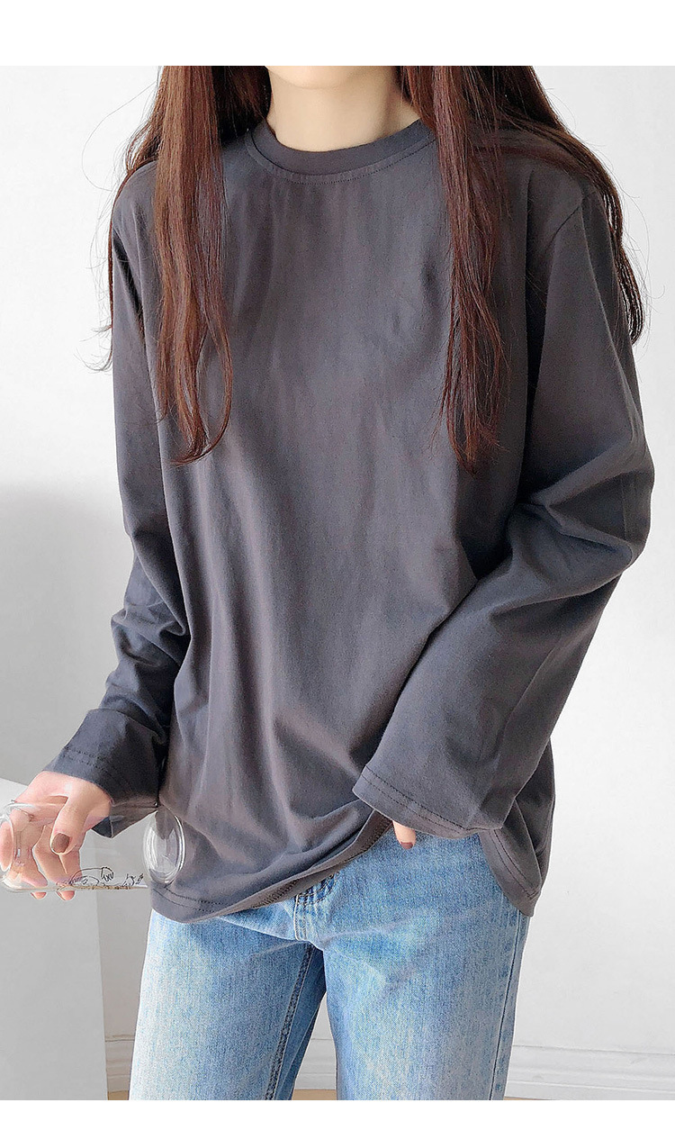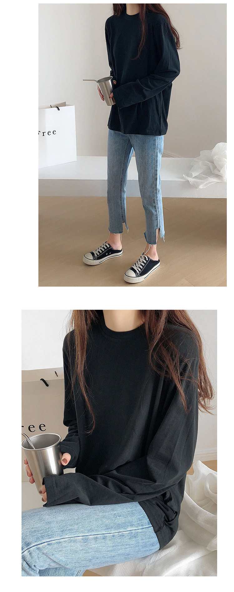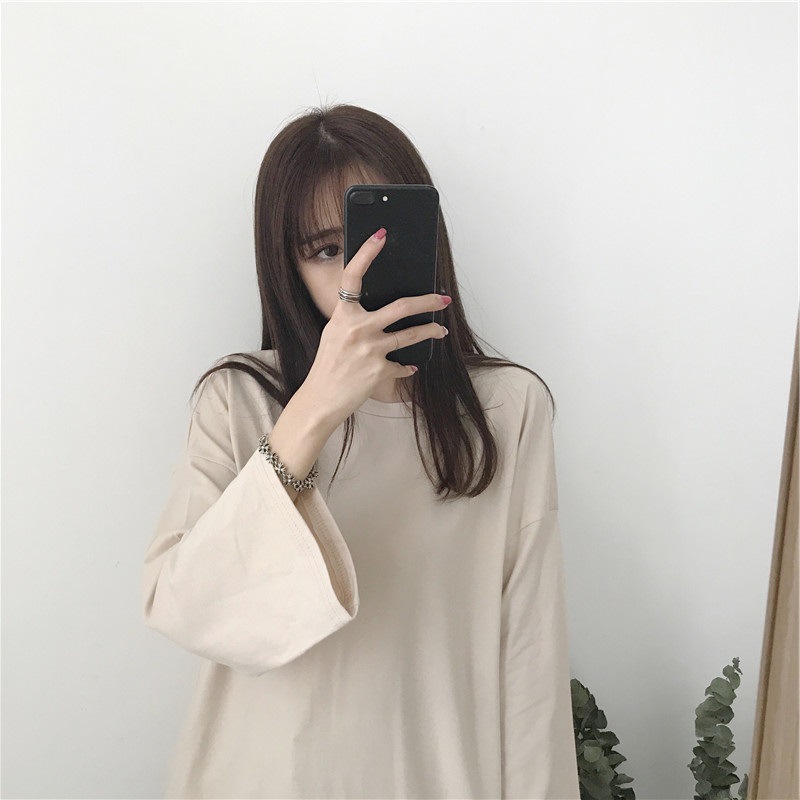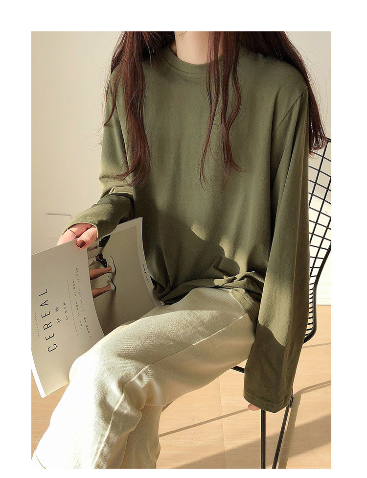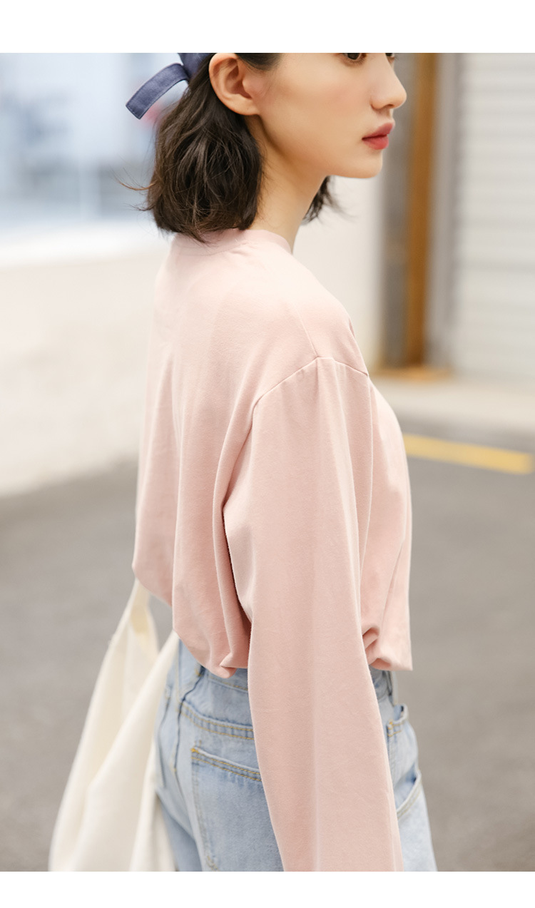 신유 한국식 멀티 컬러 칼리지 스타일 루즈 티셔츠 여성 봄과 가을 새 긴 소매 내부 둥근 목 T베이스 셔츠 여성용 의류스토어 가기