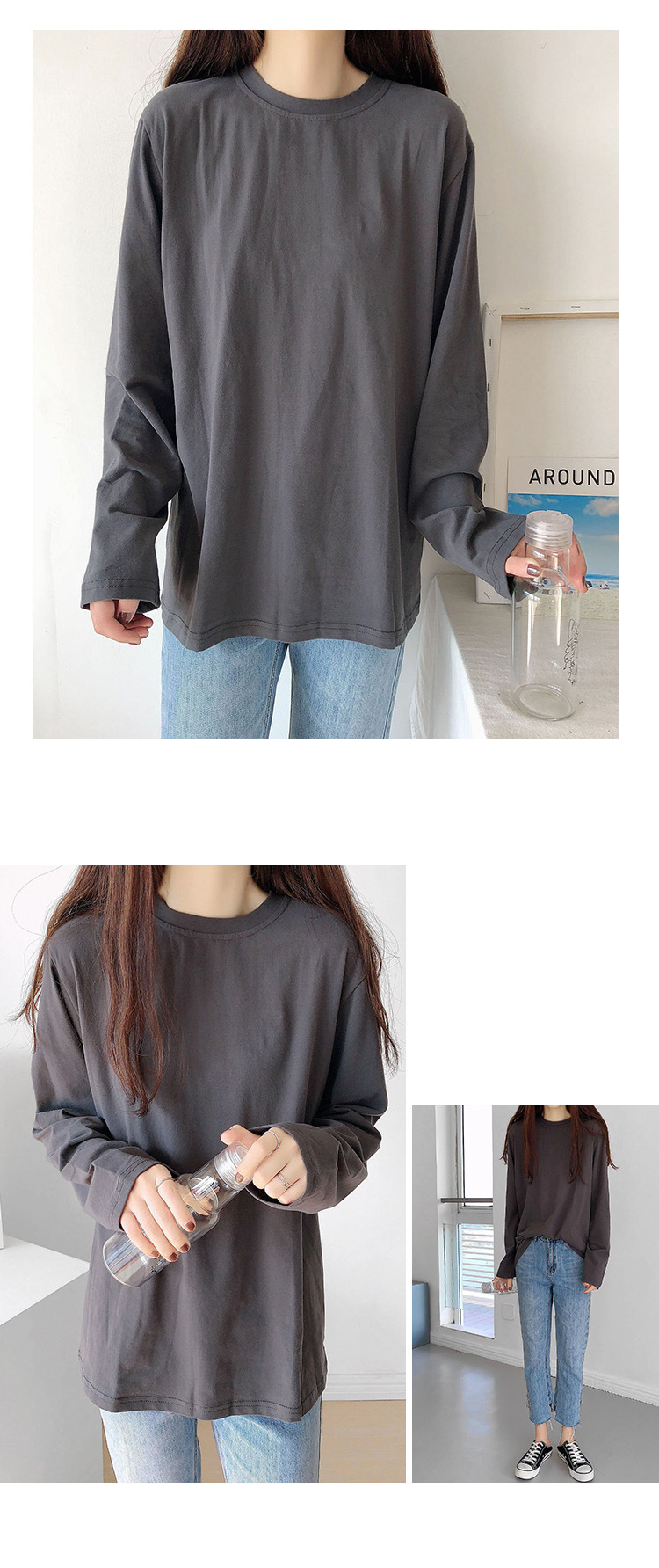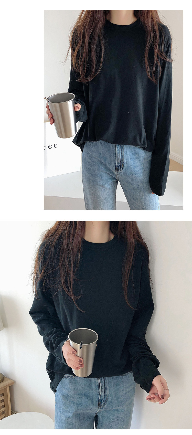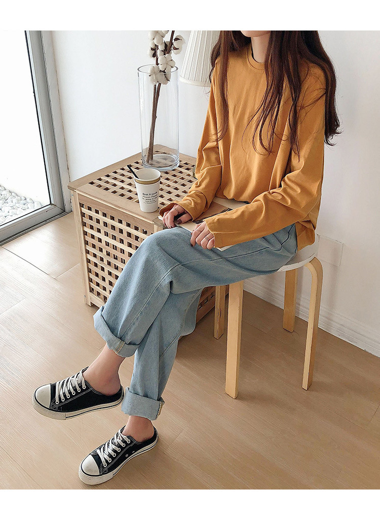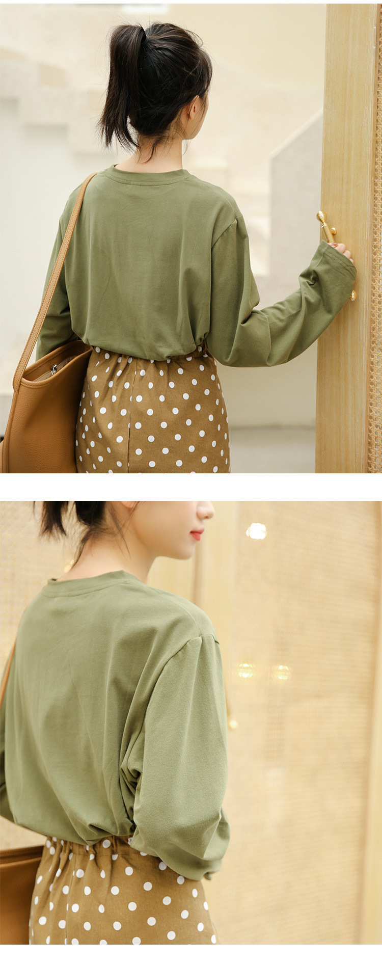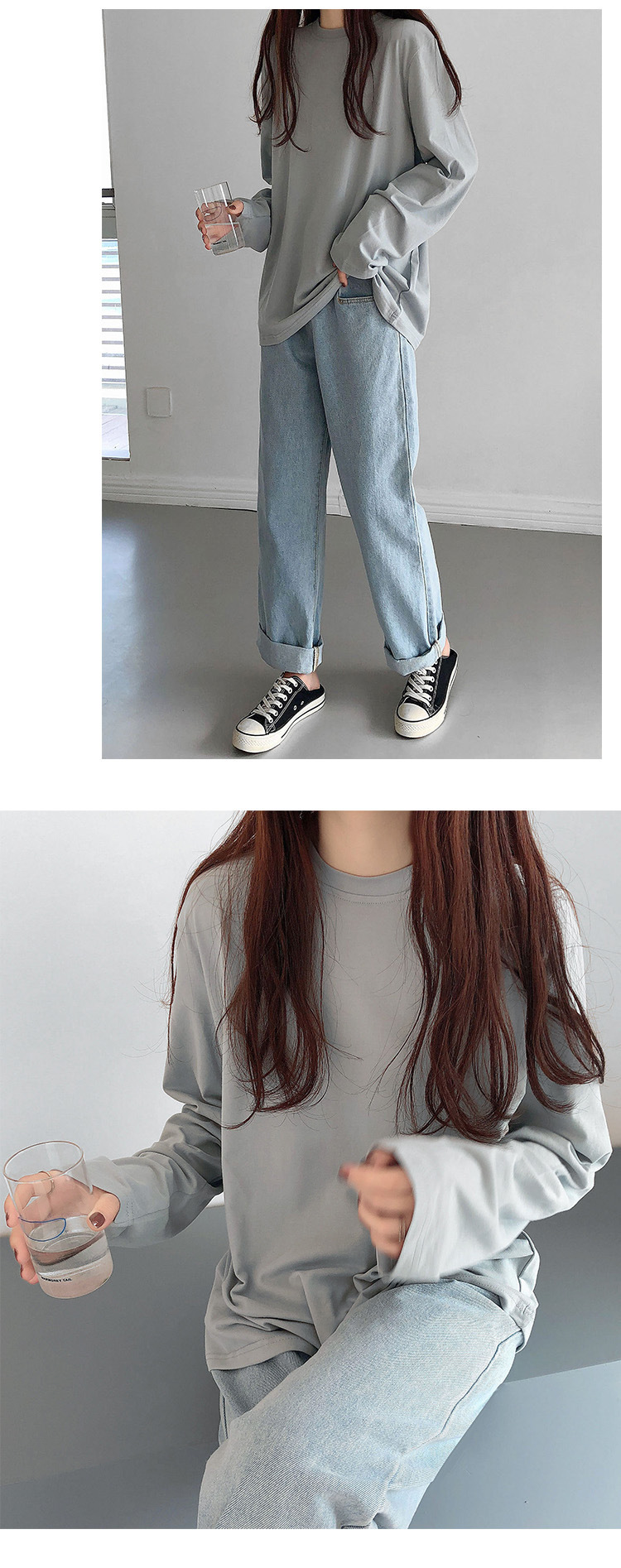 신유 한국식 멀티 컬러 칼리지 스타일 루즈 티셔츠 여성 봄과 가을 새 긴 소매 내부 둥근 목 T베이스 셔츠 여성용 의류스토어 가기