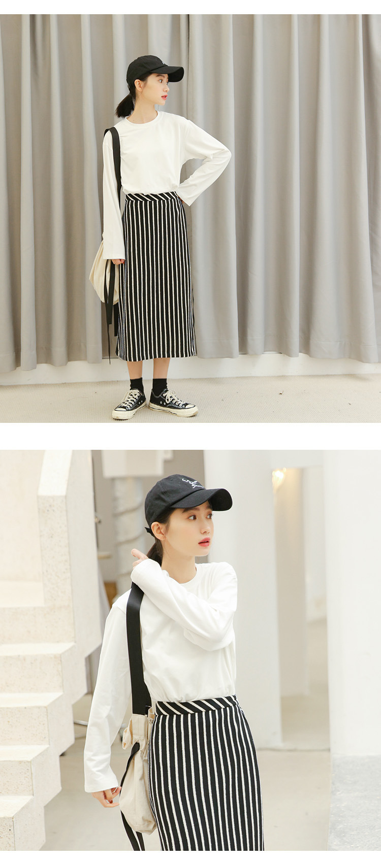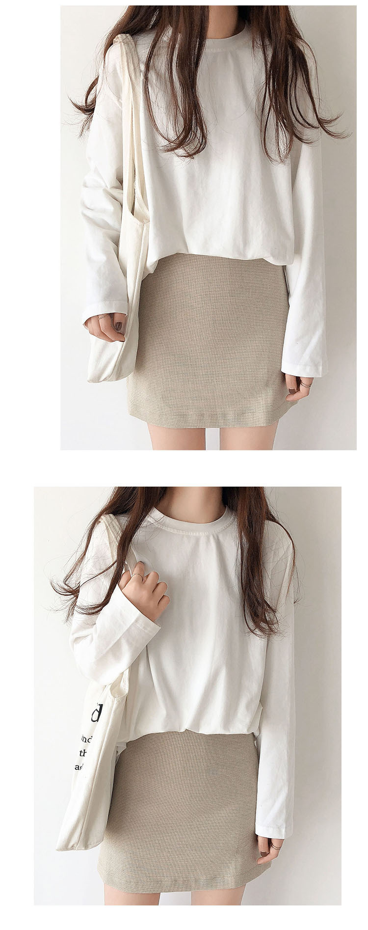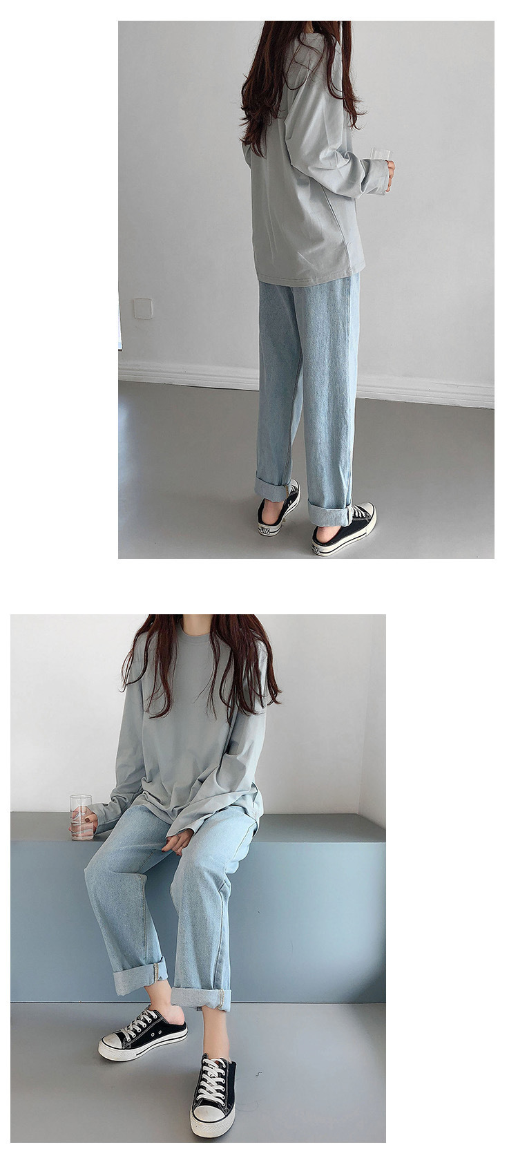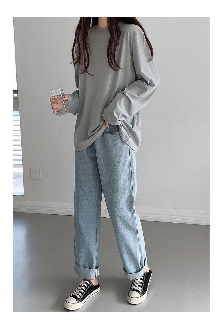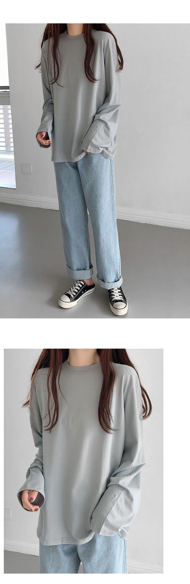 신유 한국식 멀티 컬러 칼리지 스타일 루즈 티셔츠 여성 봄과 가을 새 긴 소매 내부 둥근 목 T베이스 셔츠 여성용 의류스토어 가기