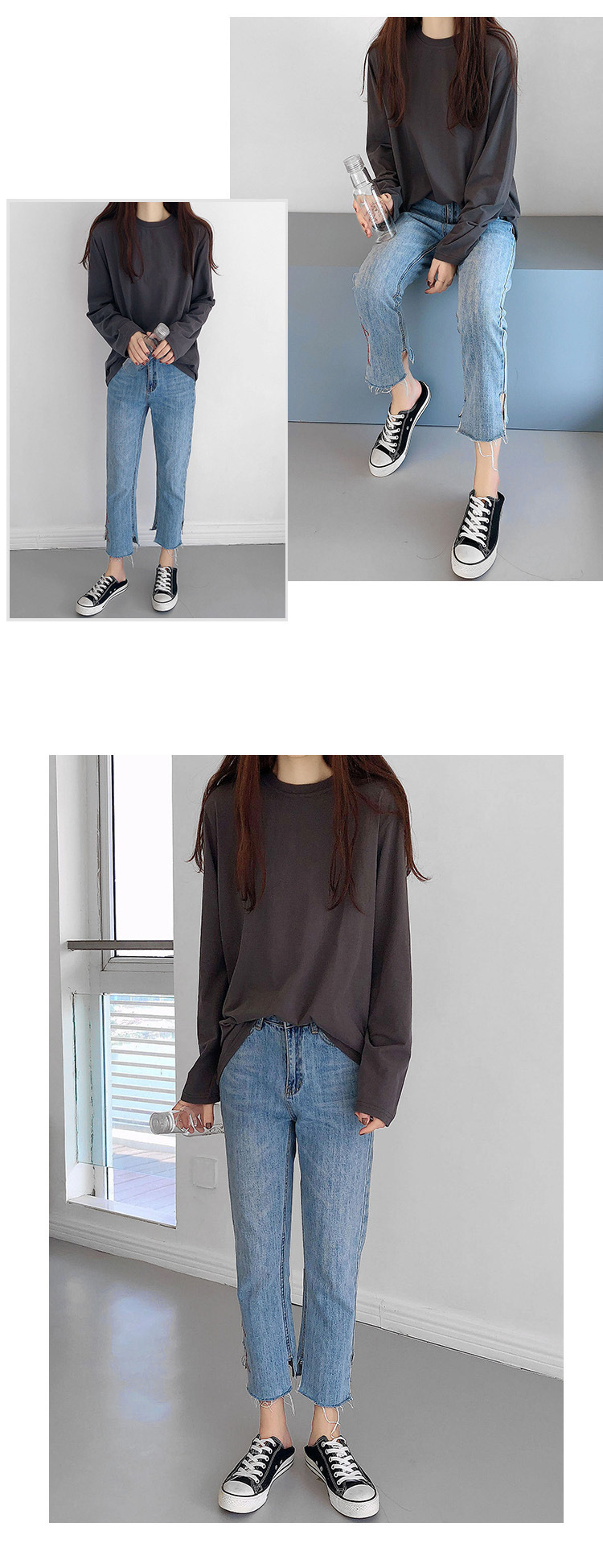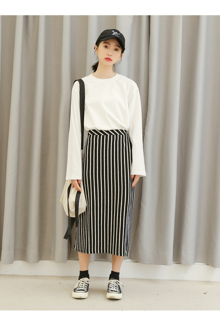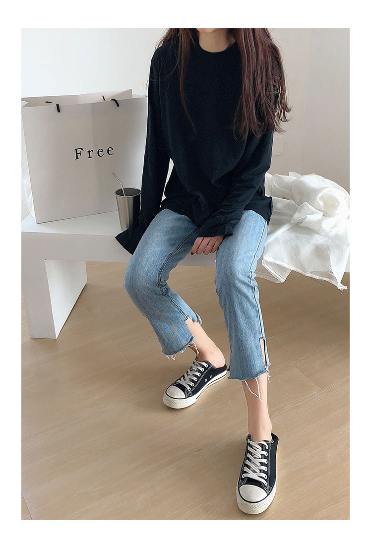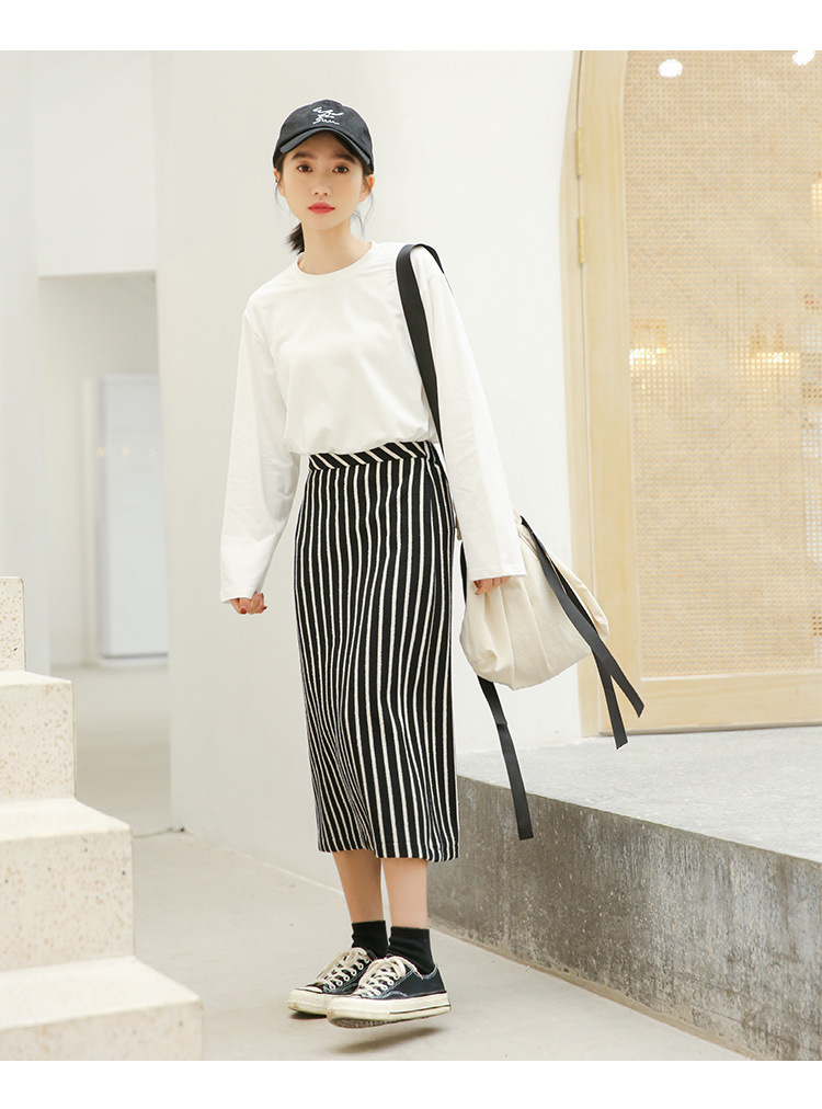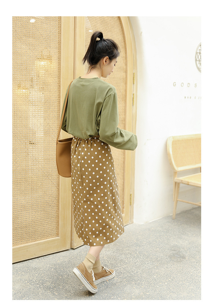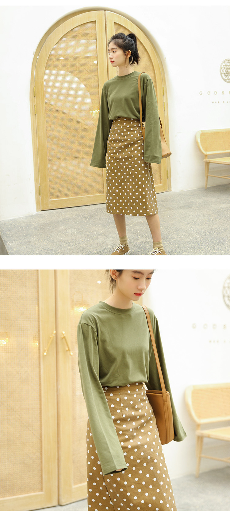 신유 한국식 멀티 컬러 칼리지 스타일 루즈 티셔츠 여성 봄과 가을 새 긴 소매 내부 둥근 목 T베이스 셔츠 여성용 의류스토어 가기