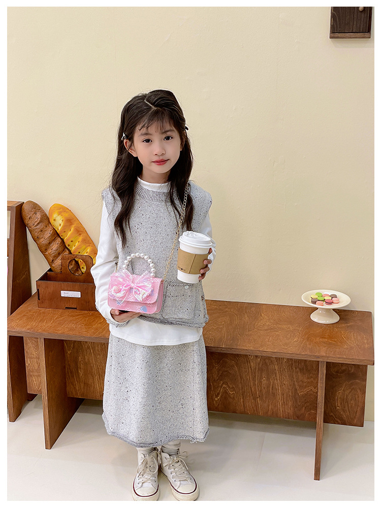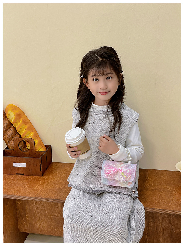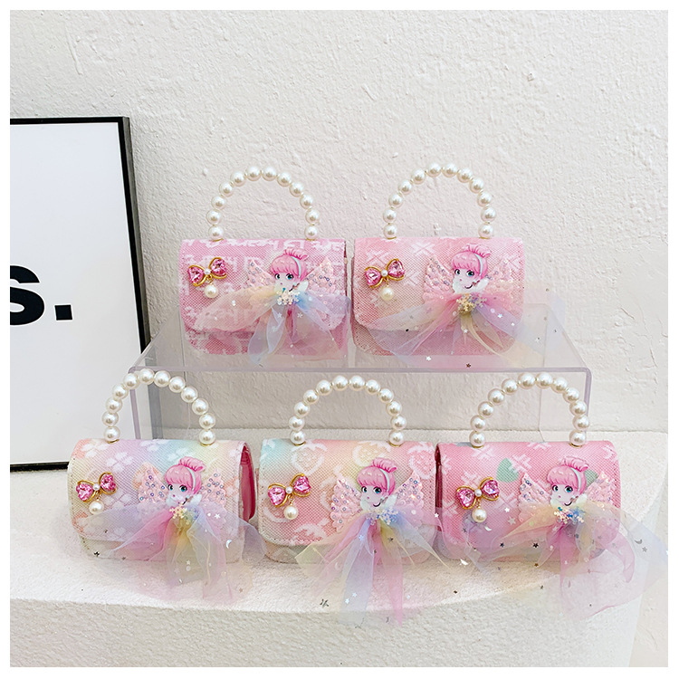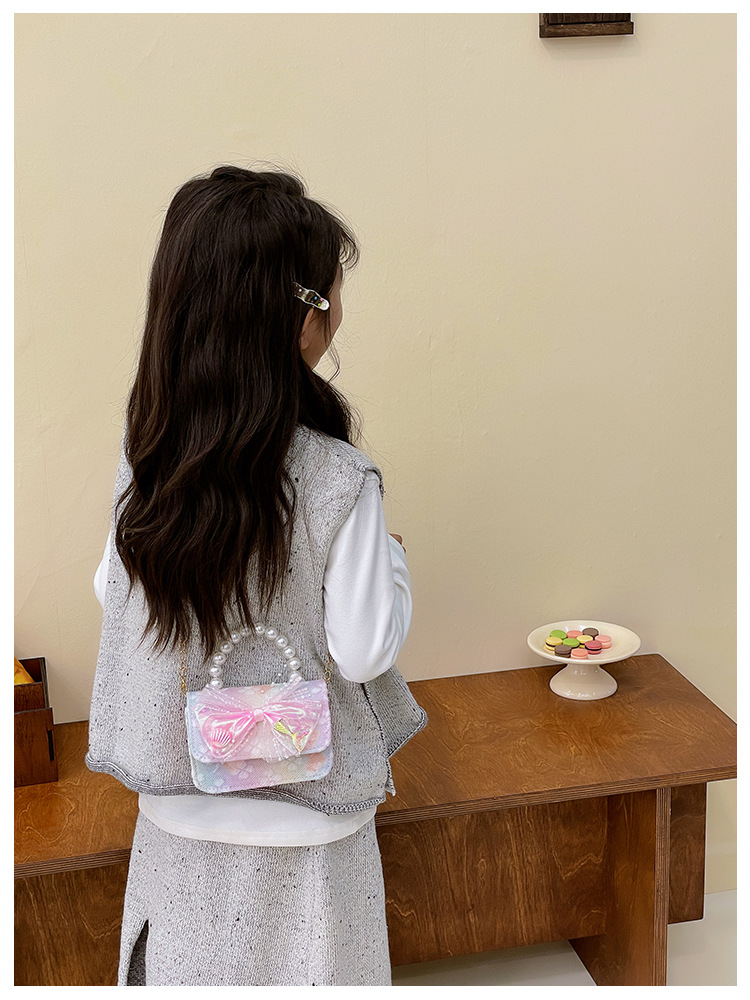새로운 어린이 가방 작은 소녀의 활 진주 핸드백 세련된 공주 어깨 가방 크로스 바디 가방 동전 지갑