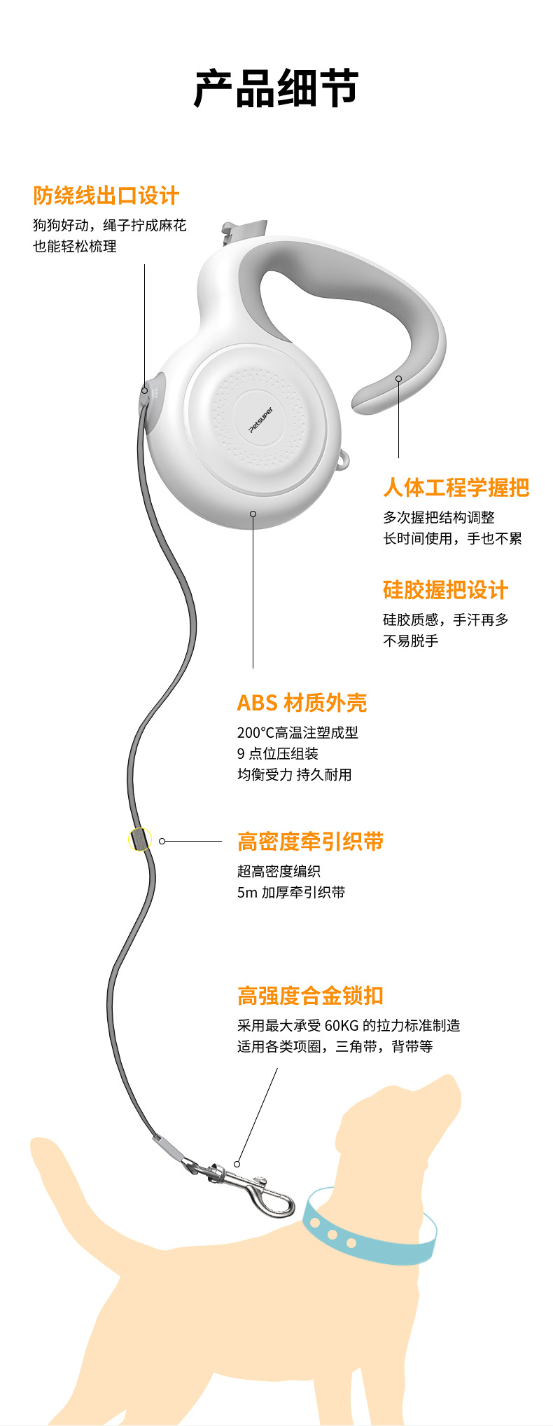 애완 동물 용 자동 망원경 가죽 끈 야외 개 걷기를위한 휴대용 자동 가죽 끈 폭발 방지 국경 가죽 끈