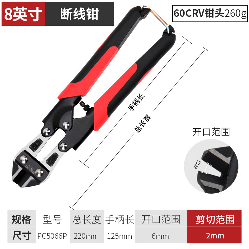 Cafweil 8 인치 노동 절약 유압 펜치 산업 등급 와이어 커터 와이어 강화 전단 와이어 가위 와이어 브레이킹 펜치 전단 잠금 전단 철제 펜치