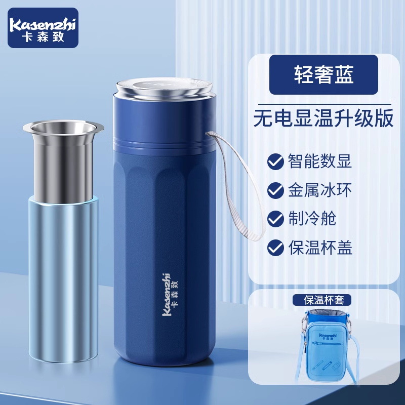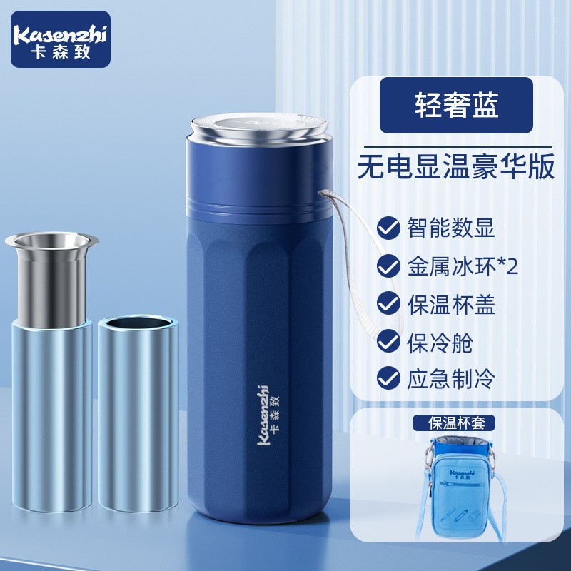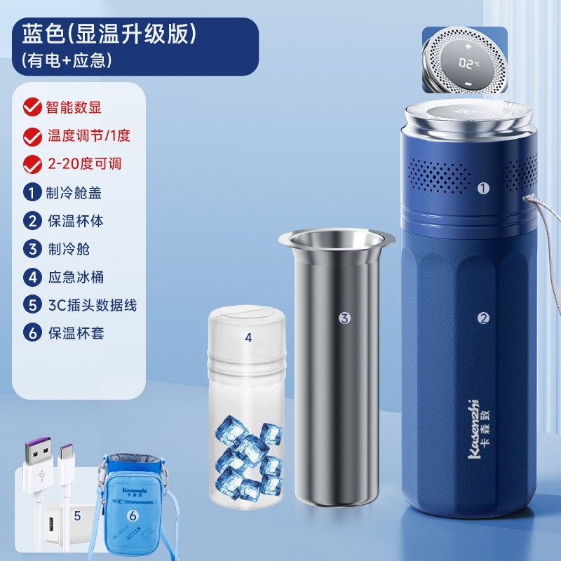 • [라이트 럭셔리 블루 온도 표시 사계절 럭셔리 에디션★온도 조절】냉장실 + 금속 아이스 링 + 컵 슬리브 + 보조 배터리