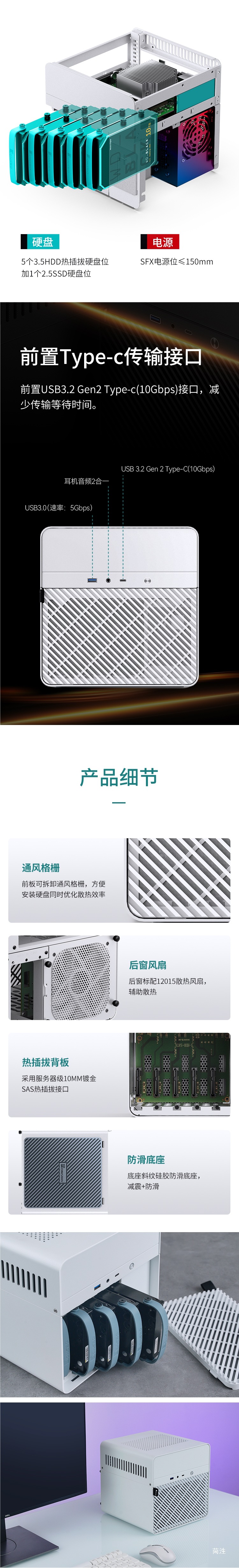 N2 소형 NAS 스토리지 클라우드 섀시 올인원 호스트 서버 멀티미디어 5디스크 핫스왑 가능