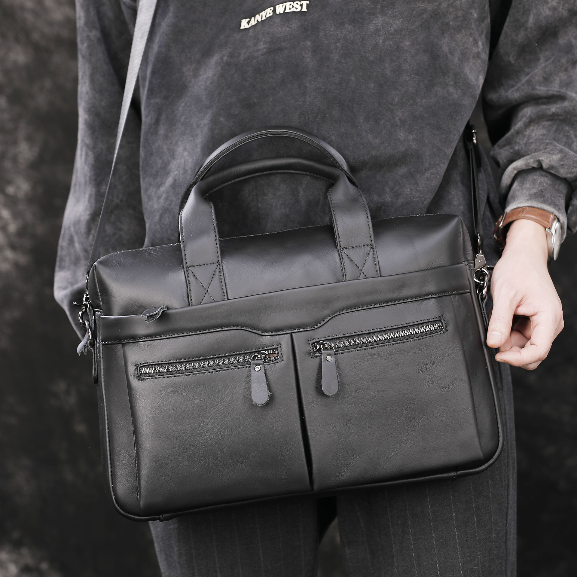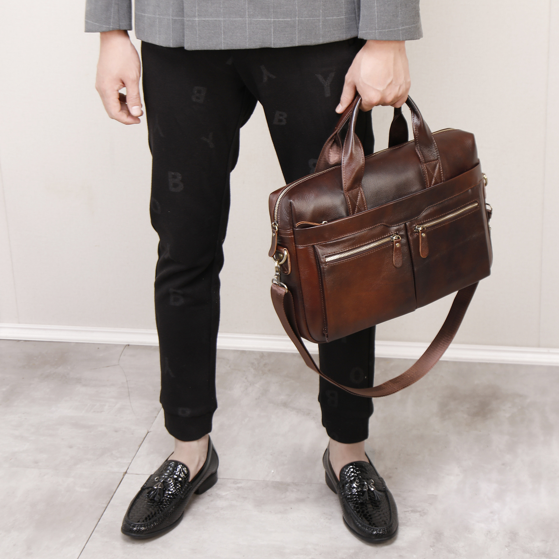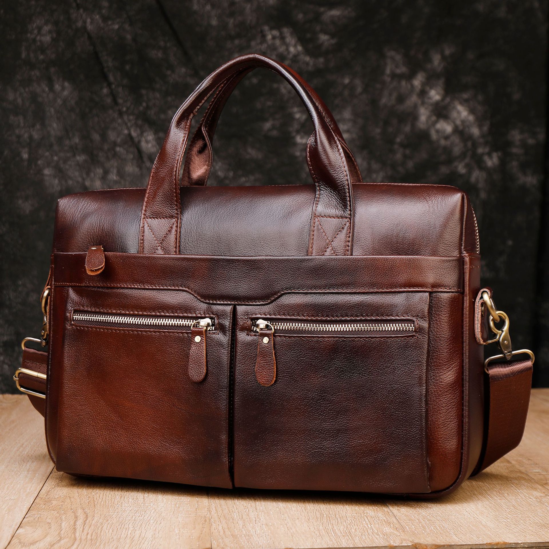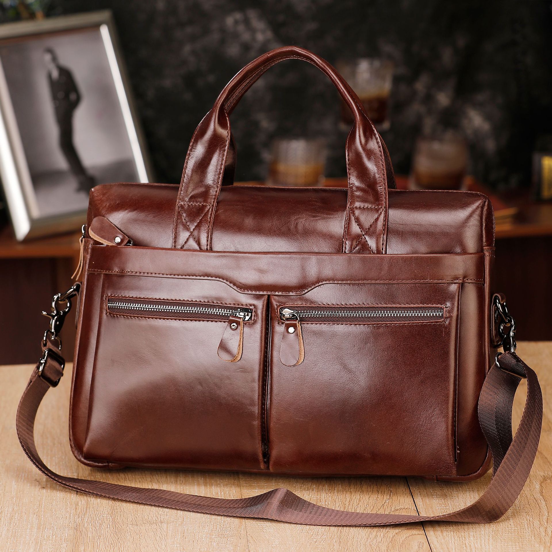 탑 레이어 Cowhide 비즈니스 서류 가방 어깨 크로스 바디 남성 가방 유행 캐주얼 노트북 15.6 인치 컴퓨터 핸드백스토어 가기