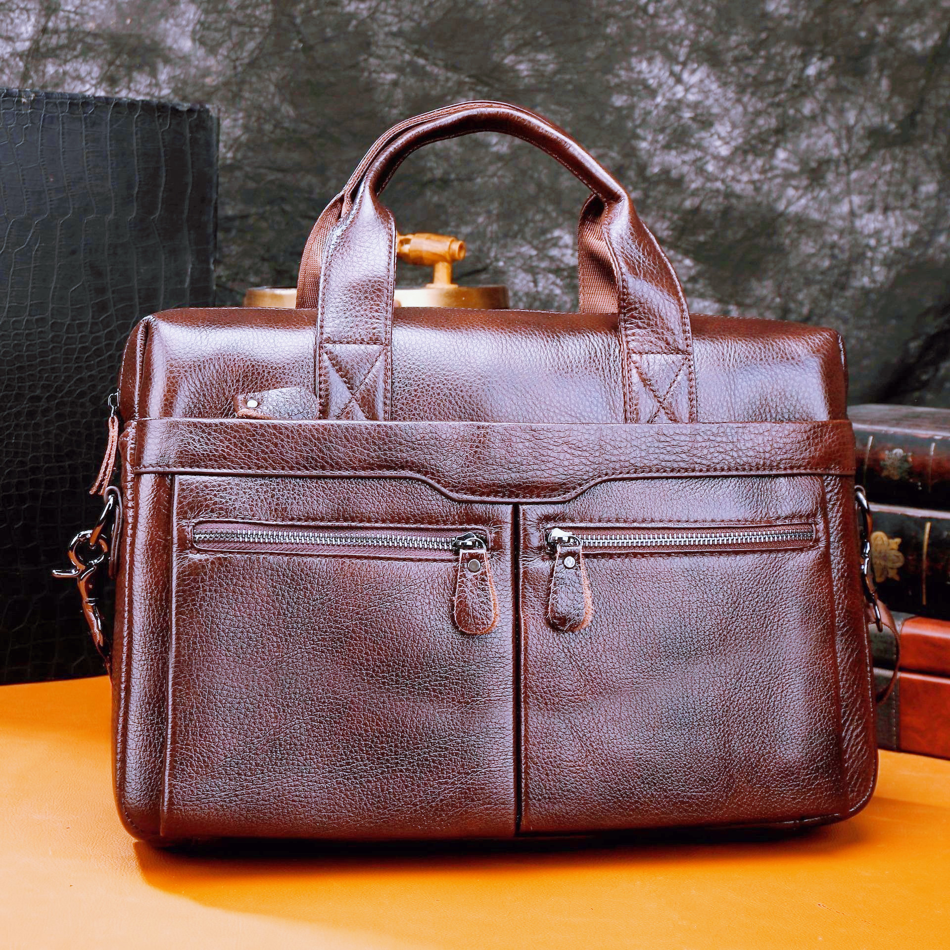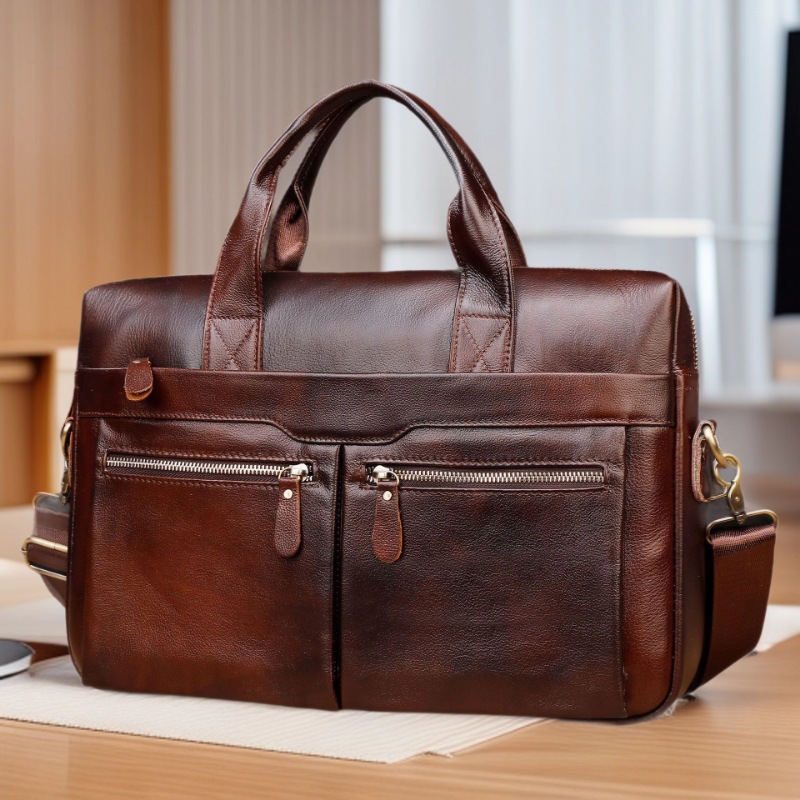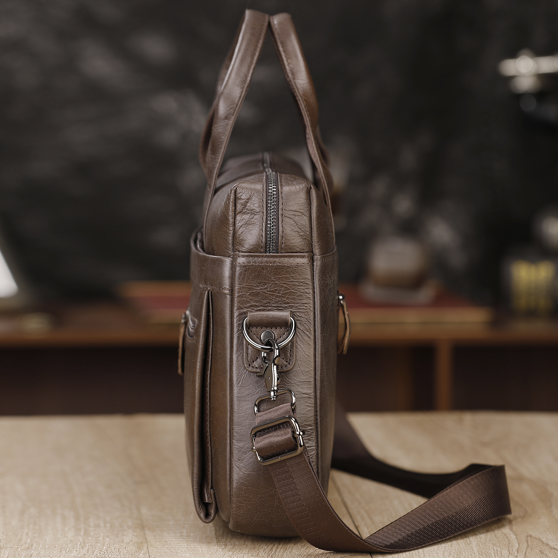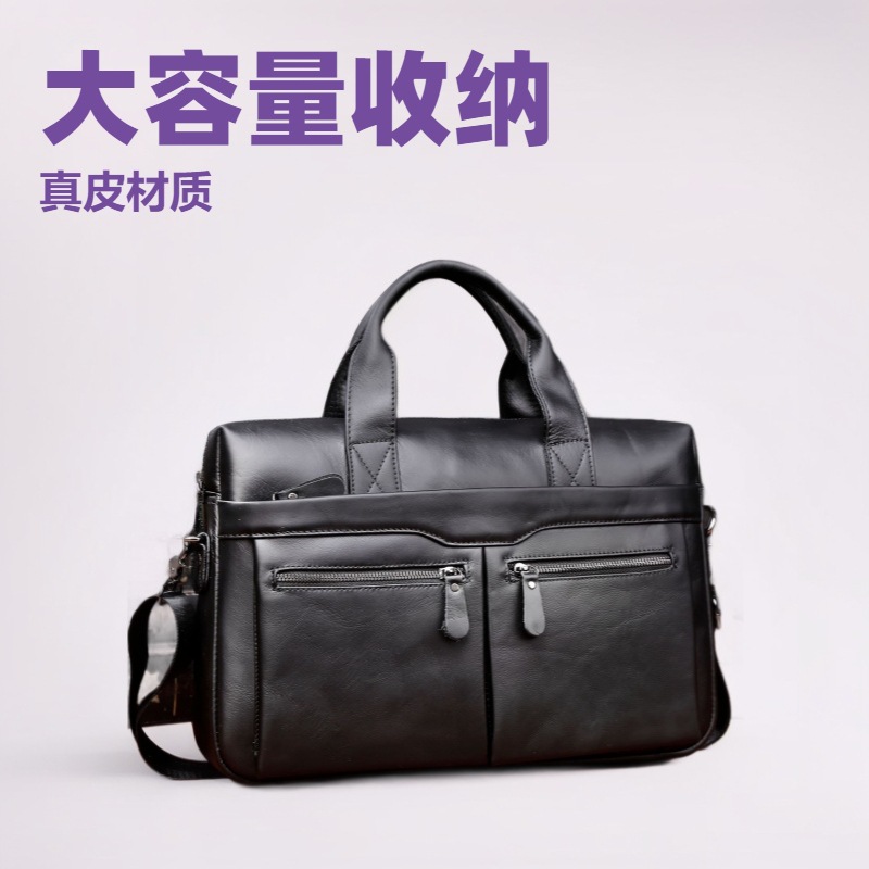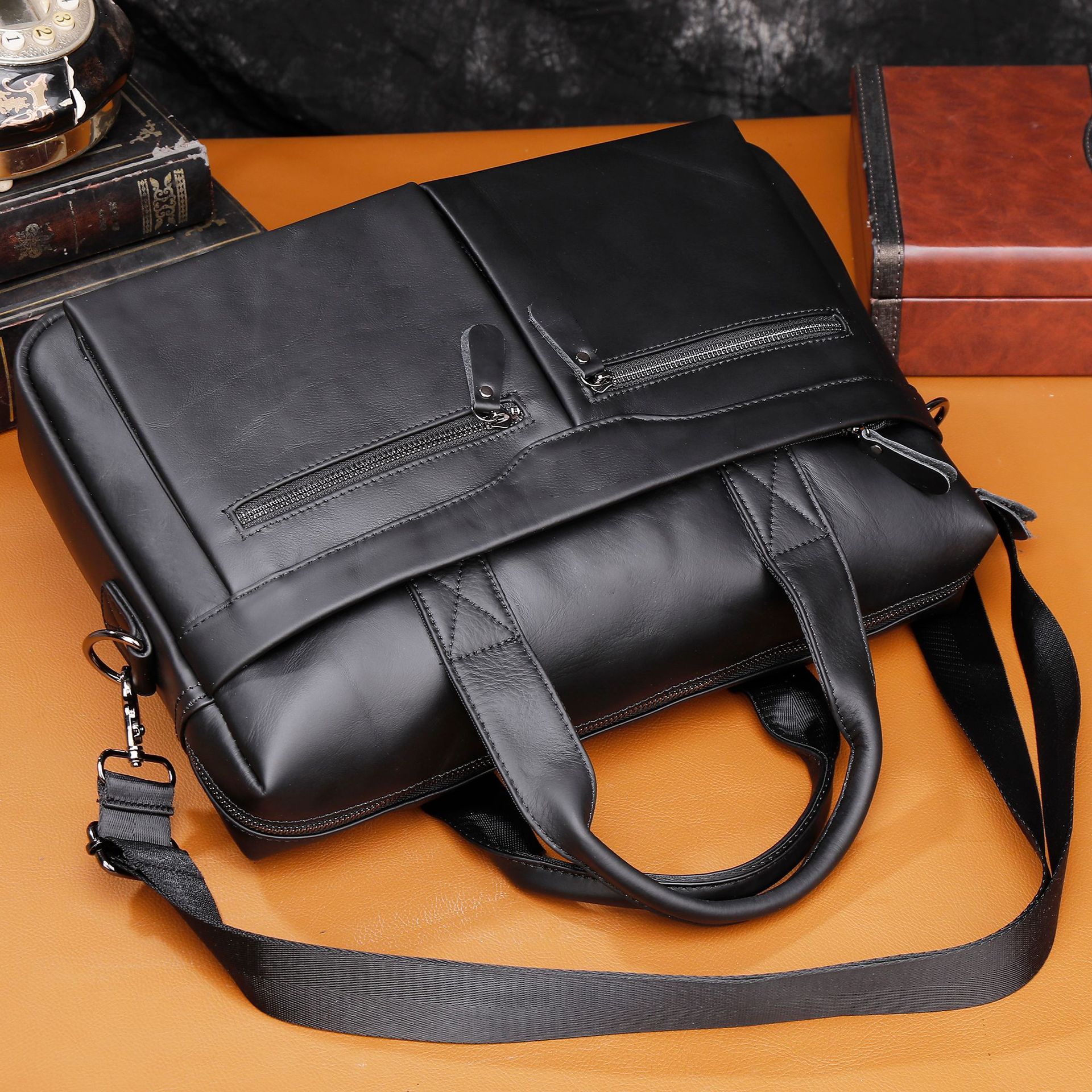 탑 레이어 Cowhide 비즈니스 서류 가방 어깨 크로스 바디 남성 가방 유행 캐주얼 노트북 15.6 인치 컴퓨터 핸드백스토어 가기