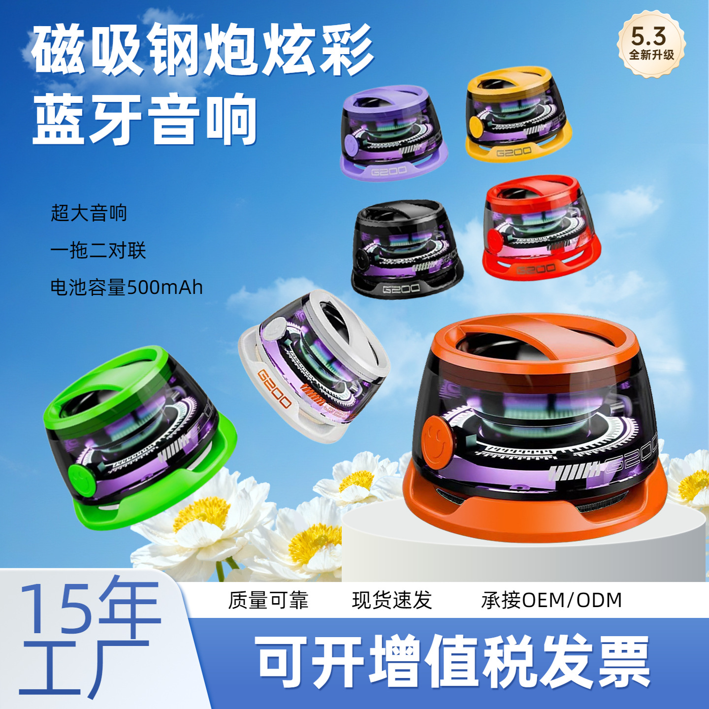 G200 마그네틱 블루투스 스피커 소형 파워풀 무선 아웃도어 스피커 분위기 조명 휴대용 휴대폰 거치대 서브우퍼