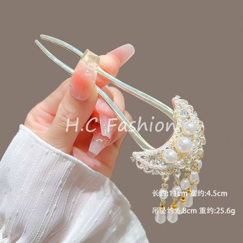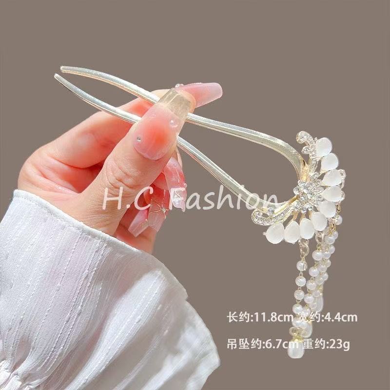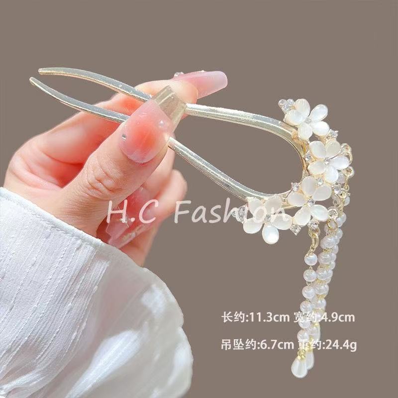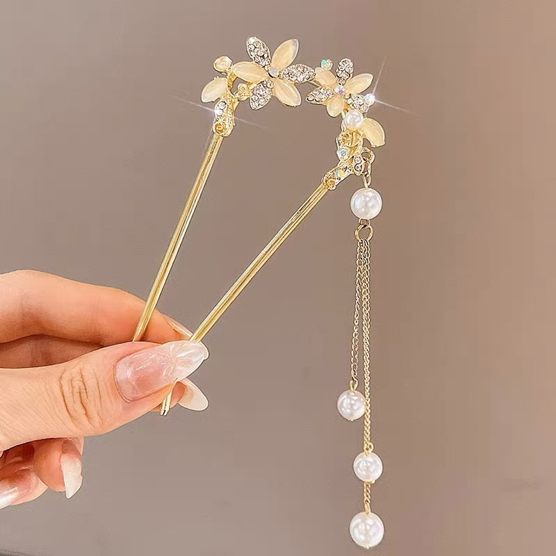 고급 진주 오팔 꽃 U 자형 머리 머리핀 새로운 중국 스타일 머리 디스크 머리 머리 머리 머리 머리 머리 머리 장식 우아한 머리 액세서리