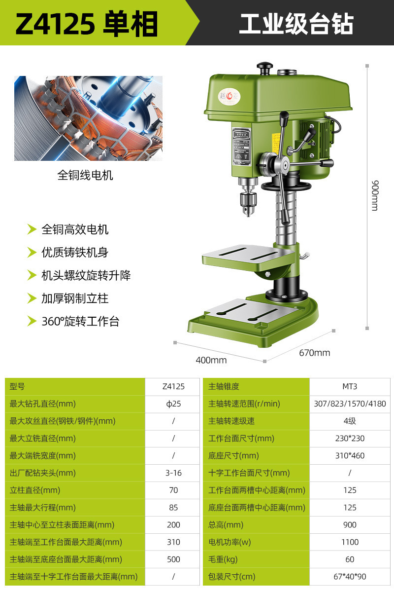 • Z4125 벤치 드릴 [단상 220V] 1100W 전체 구리선