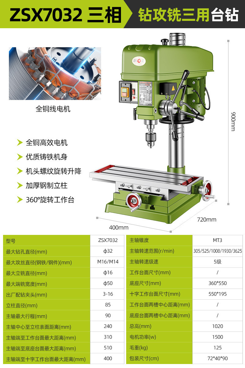 • ZSX7032 드릴링, 태핑 및 밀링 삼용 [3상 380V] 1500W 전체 구리선