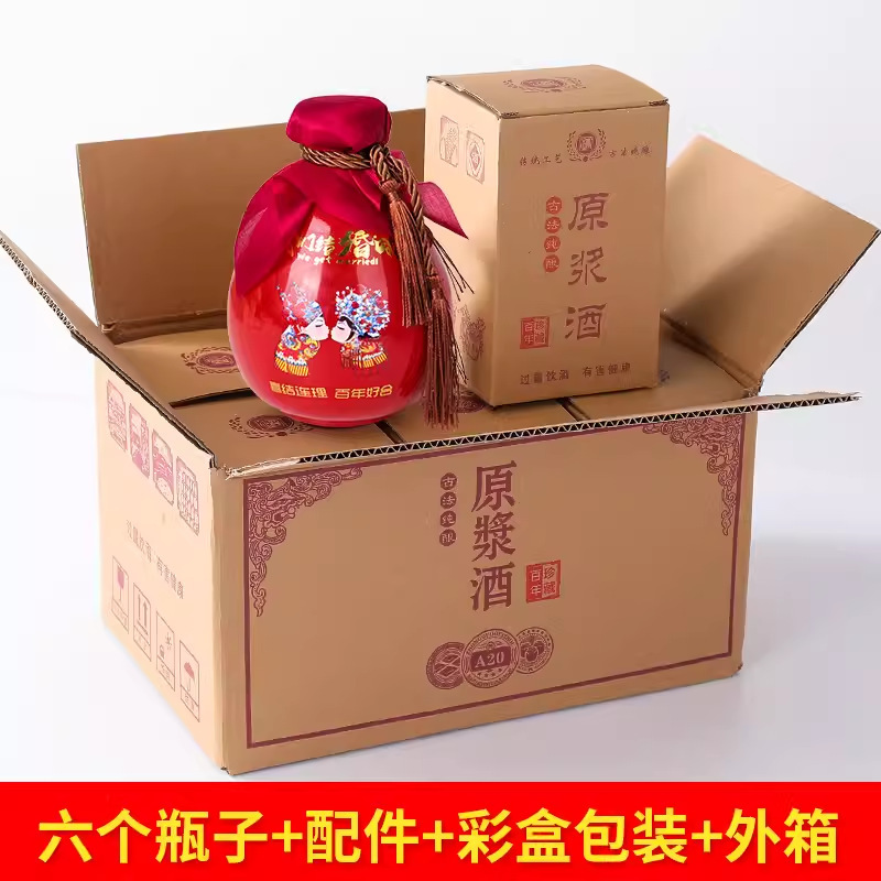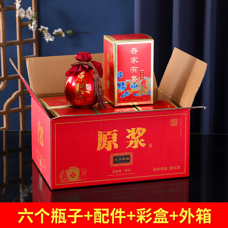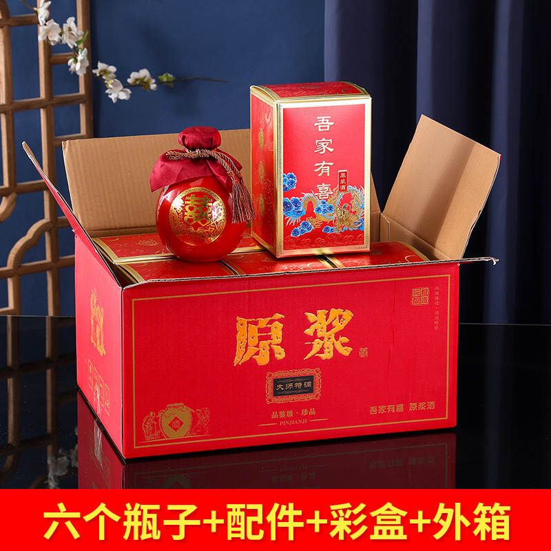 • 빨간색 퓨레 유리 와인병 6개 + 액세서리 + 내부 상자 + 크래프트 종이 외부 상자