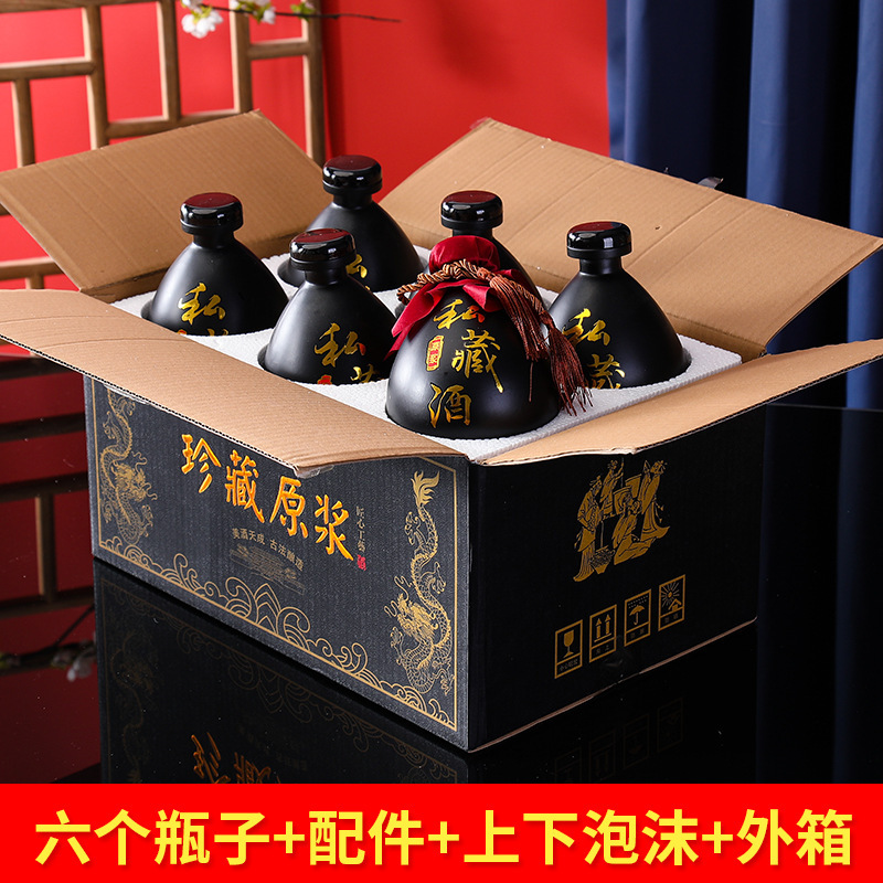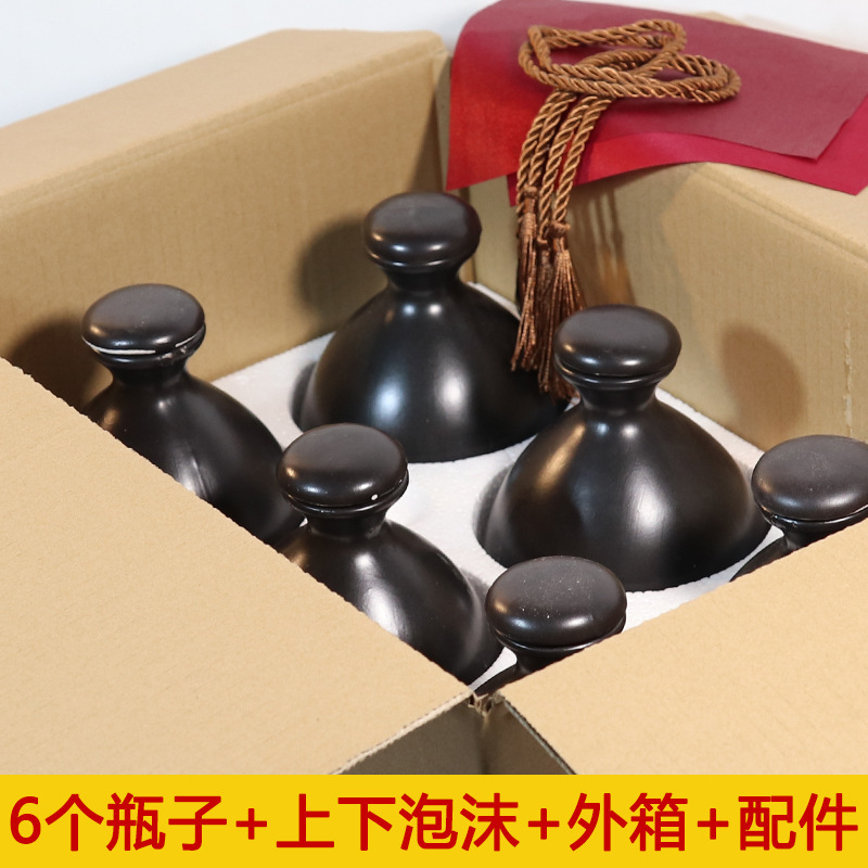 • 검은색 개인 유리 와인병 6개 + 액세서리 + 내부 상자 + 크라프트지 외부 상자