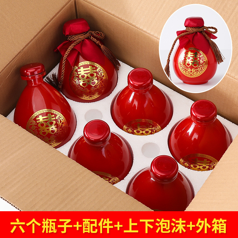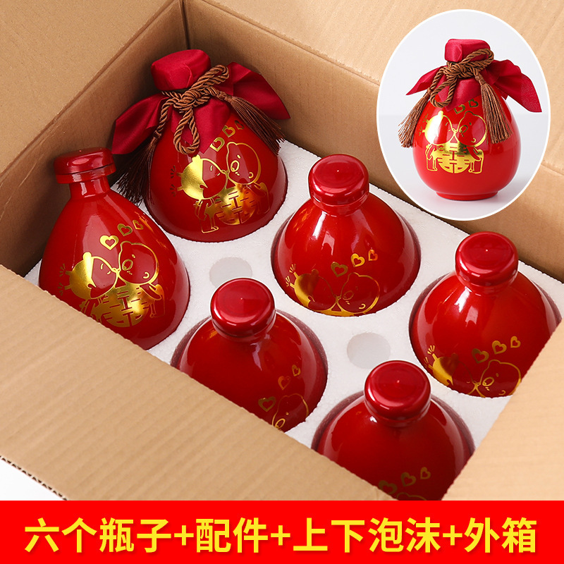 • 결혼식 유리 와인병 6개 + 액세서리 + 빨간색 내부 상자 + 빨간색 색상 상자