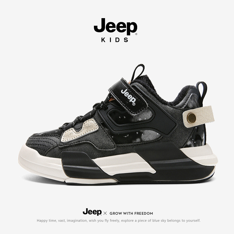 지프 아동화 남아 운동화 겨울 2025 신상품 플러스 벨벳 두꺼운 면화 동북 남아 야외 아동화